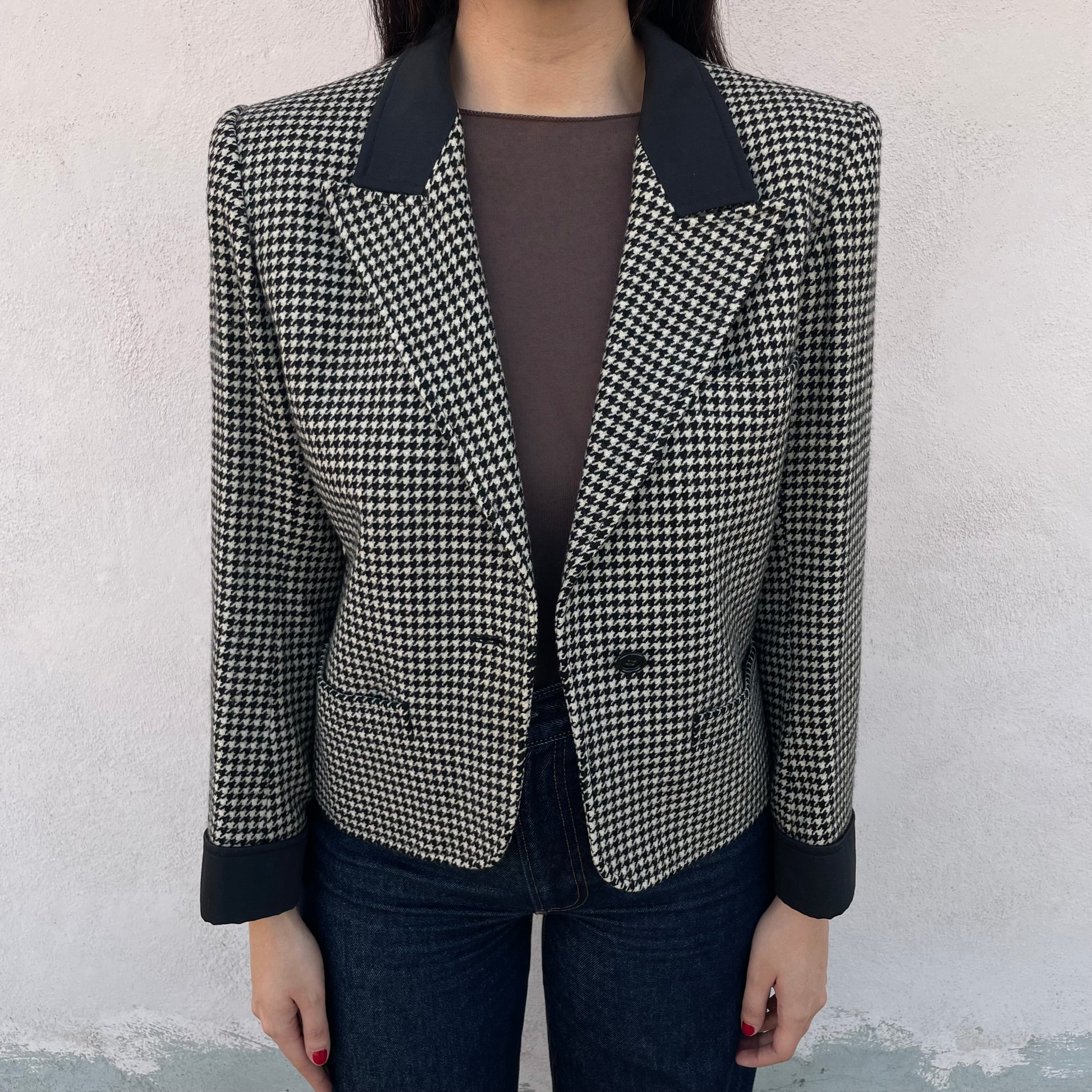 Blazer pied-de-poule Saint Laurent. Manca il merceologico ma è sicuramente lana.