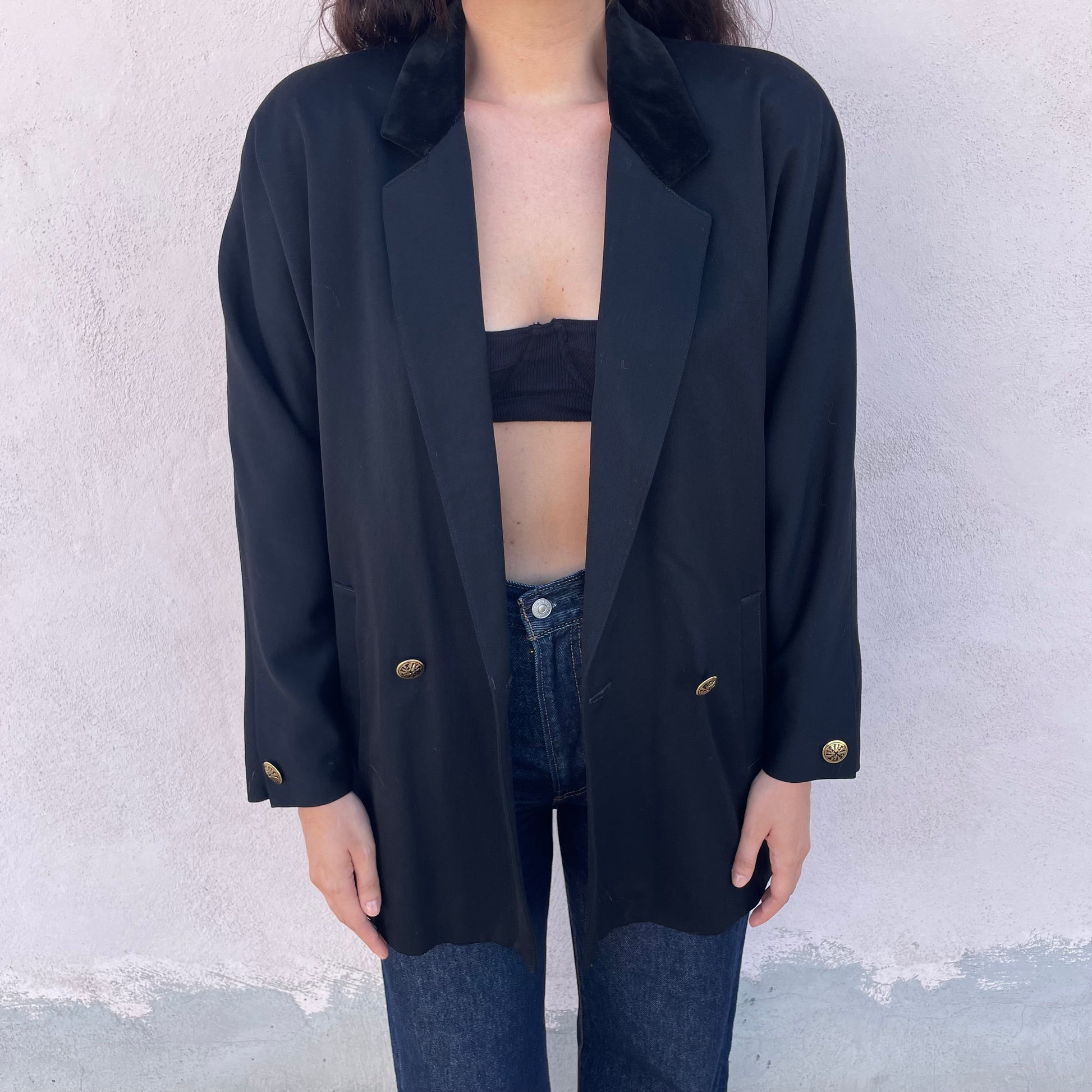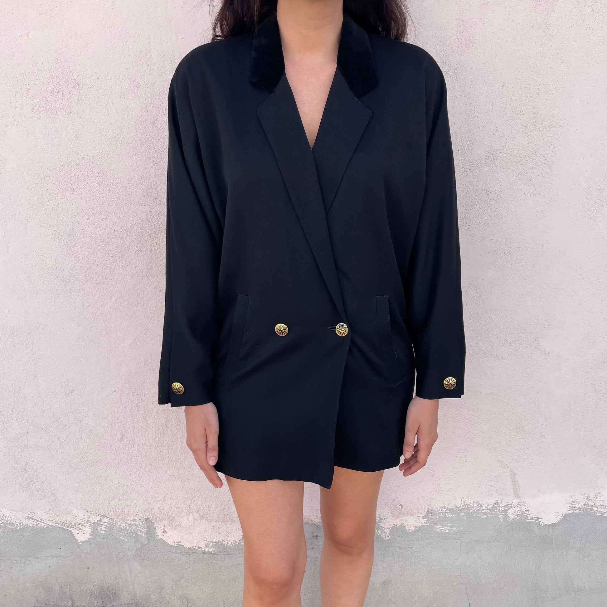 Blazer lungo/spolverino/mini abito nero Byblos. 100% lana vergine. Revers in velluto.
