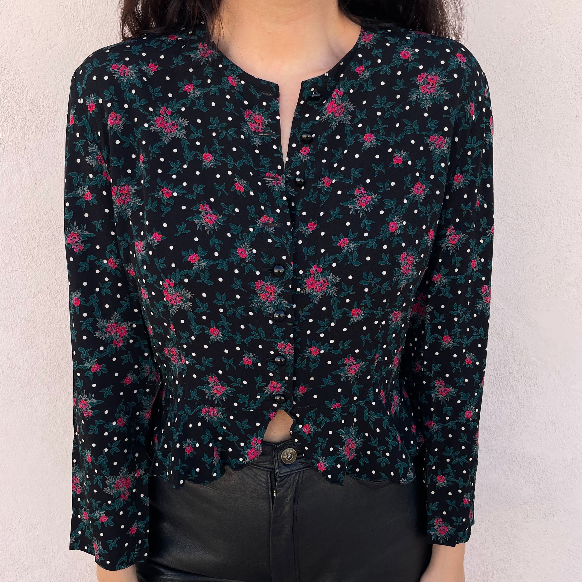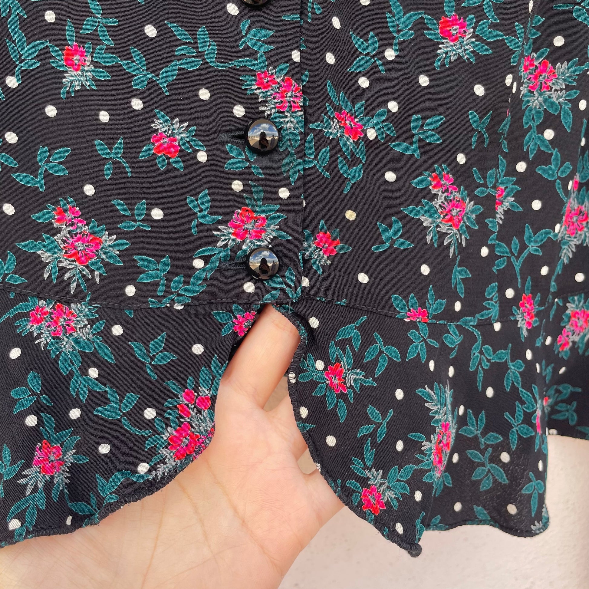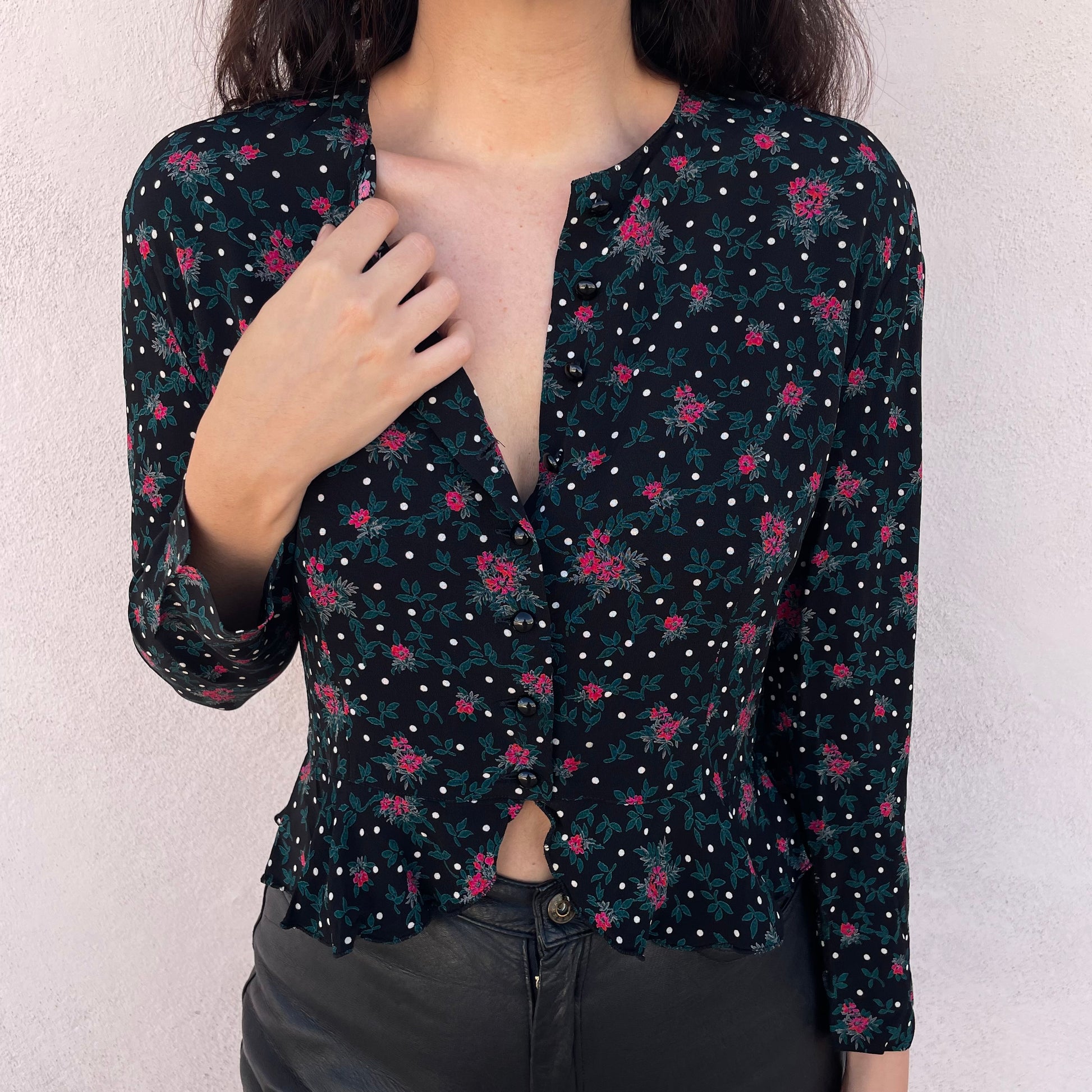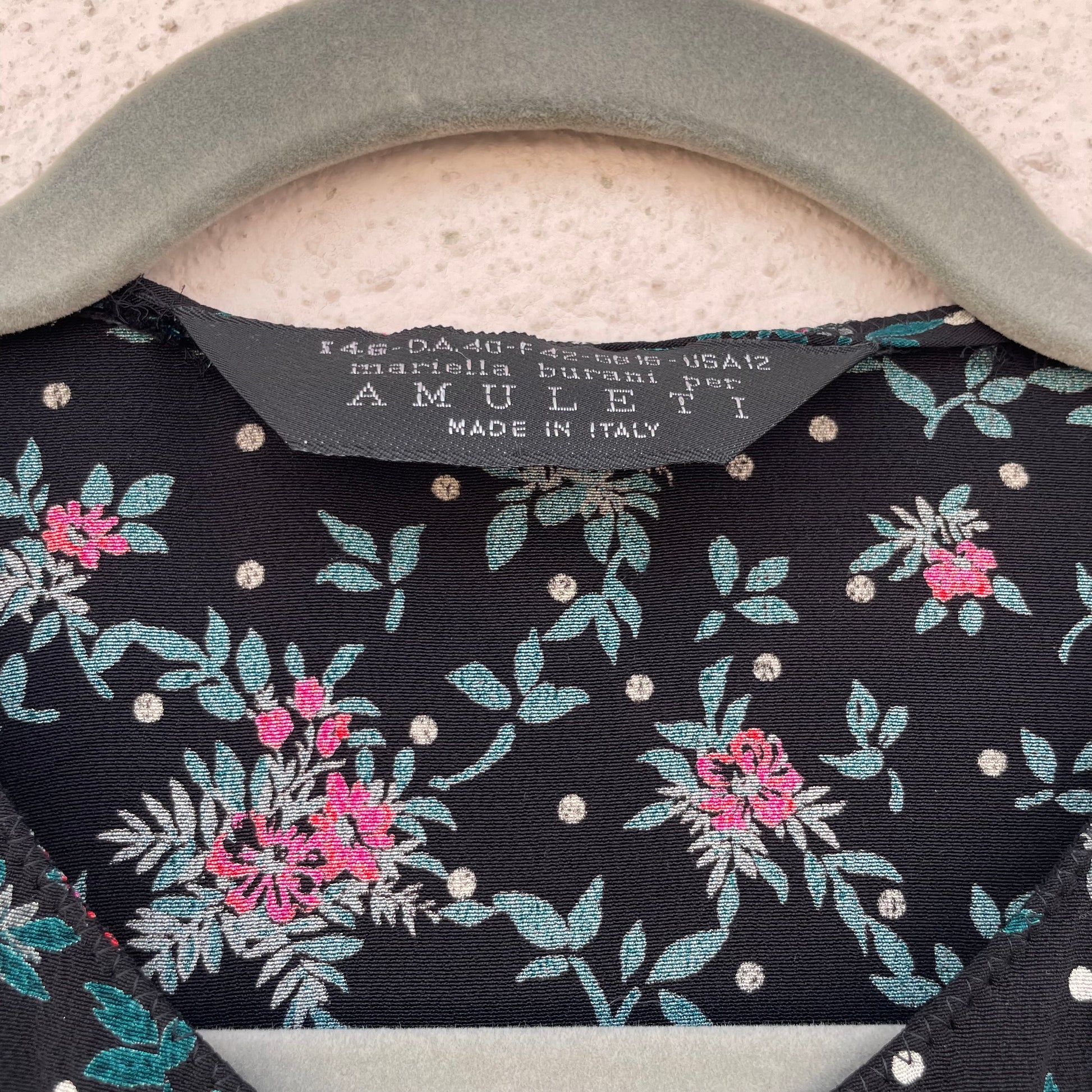 Blu dona Amuleti by Mariella Burani 100% viscosa. Base nera con stampa floreale.