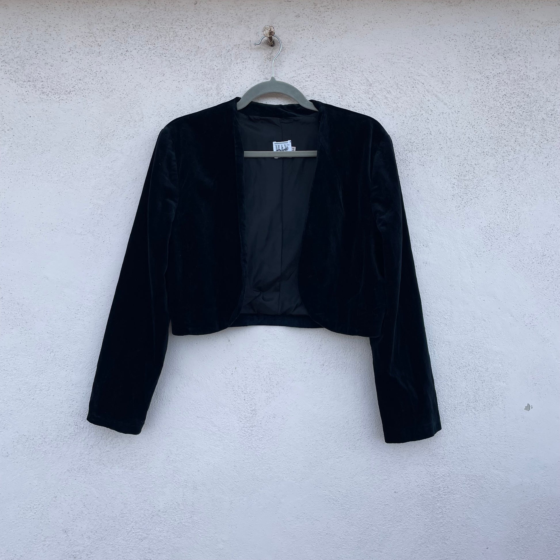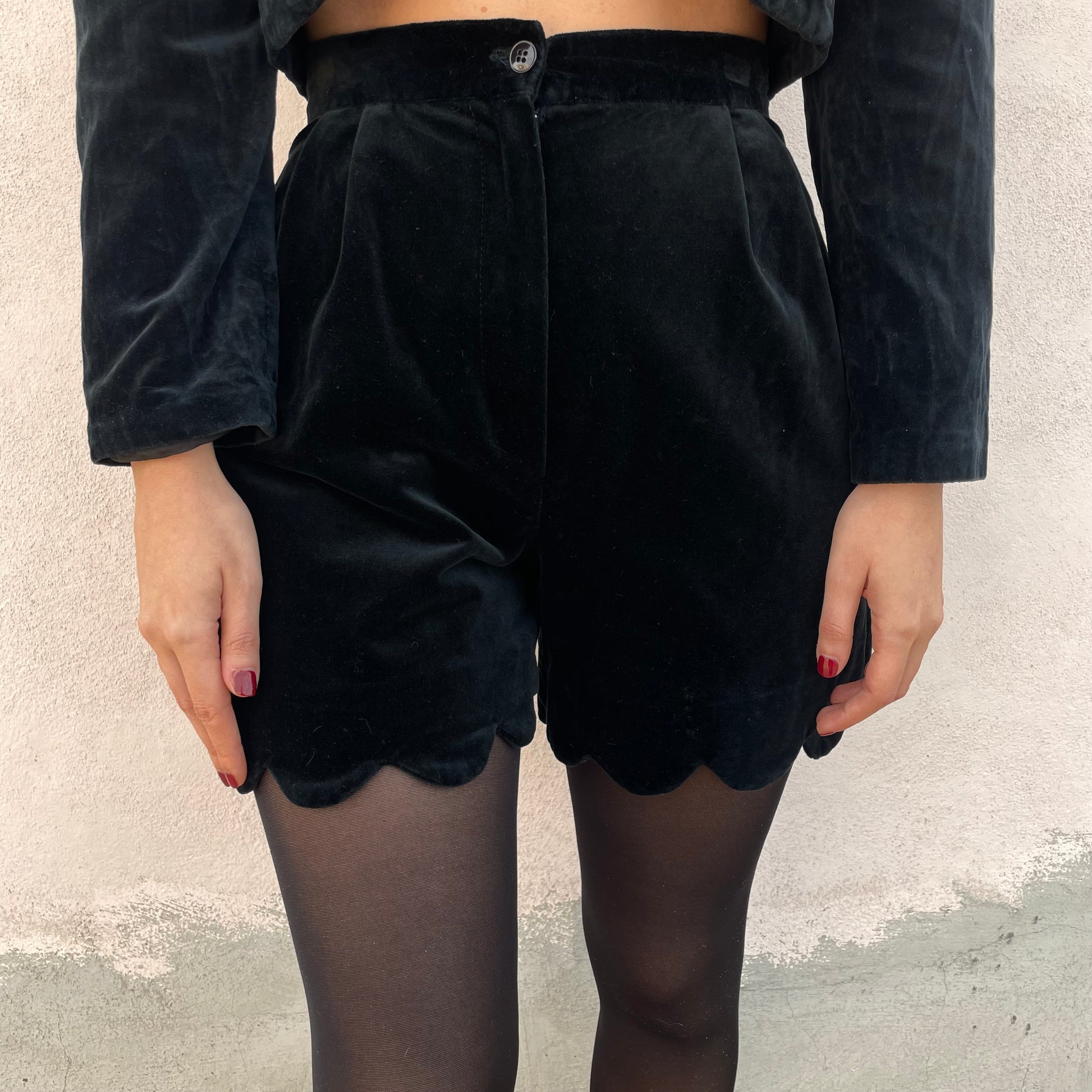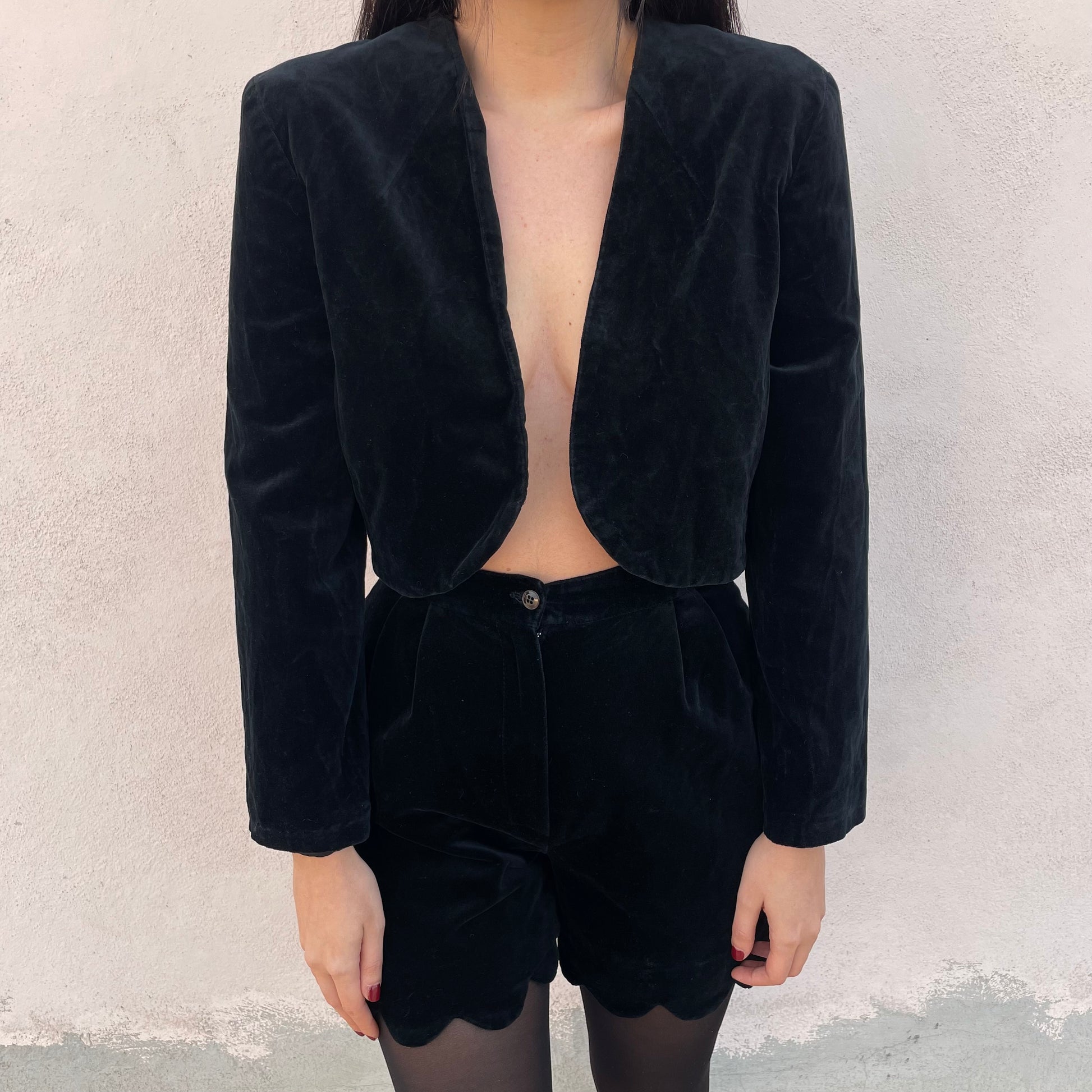 Co-ord set composto da bolerino e shorts in velluto liscio nero 100% cotone.