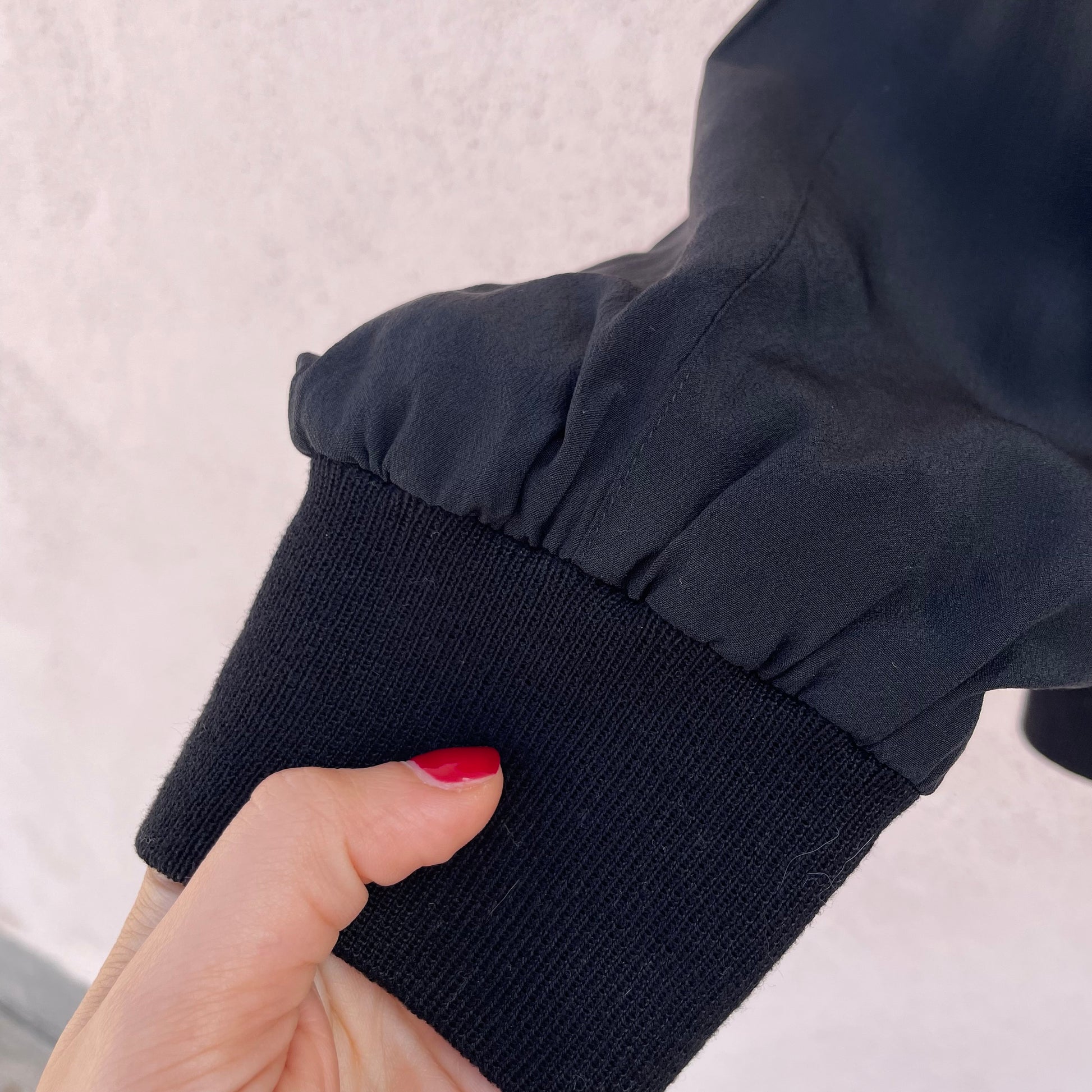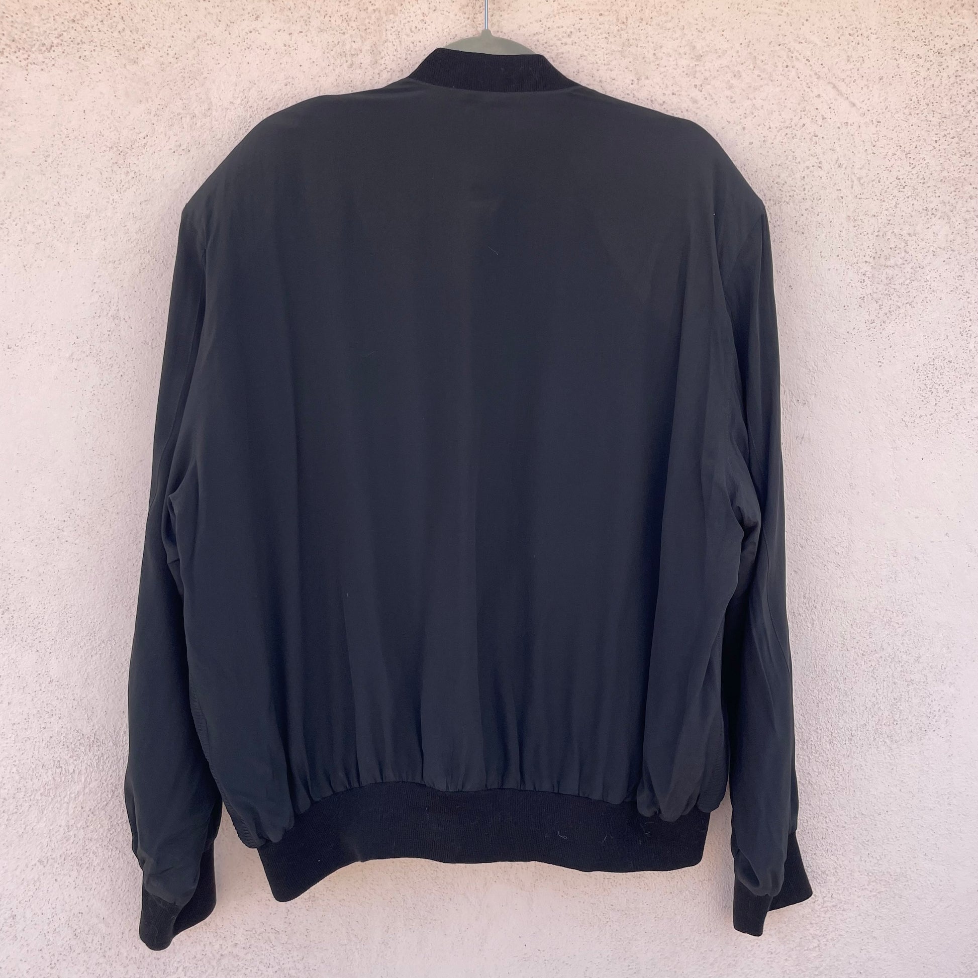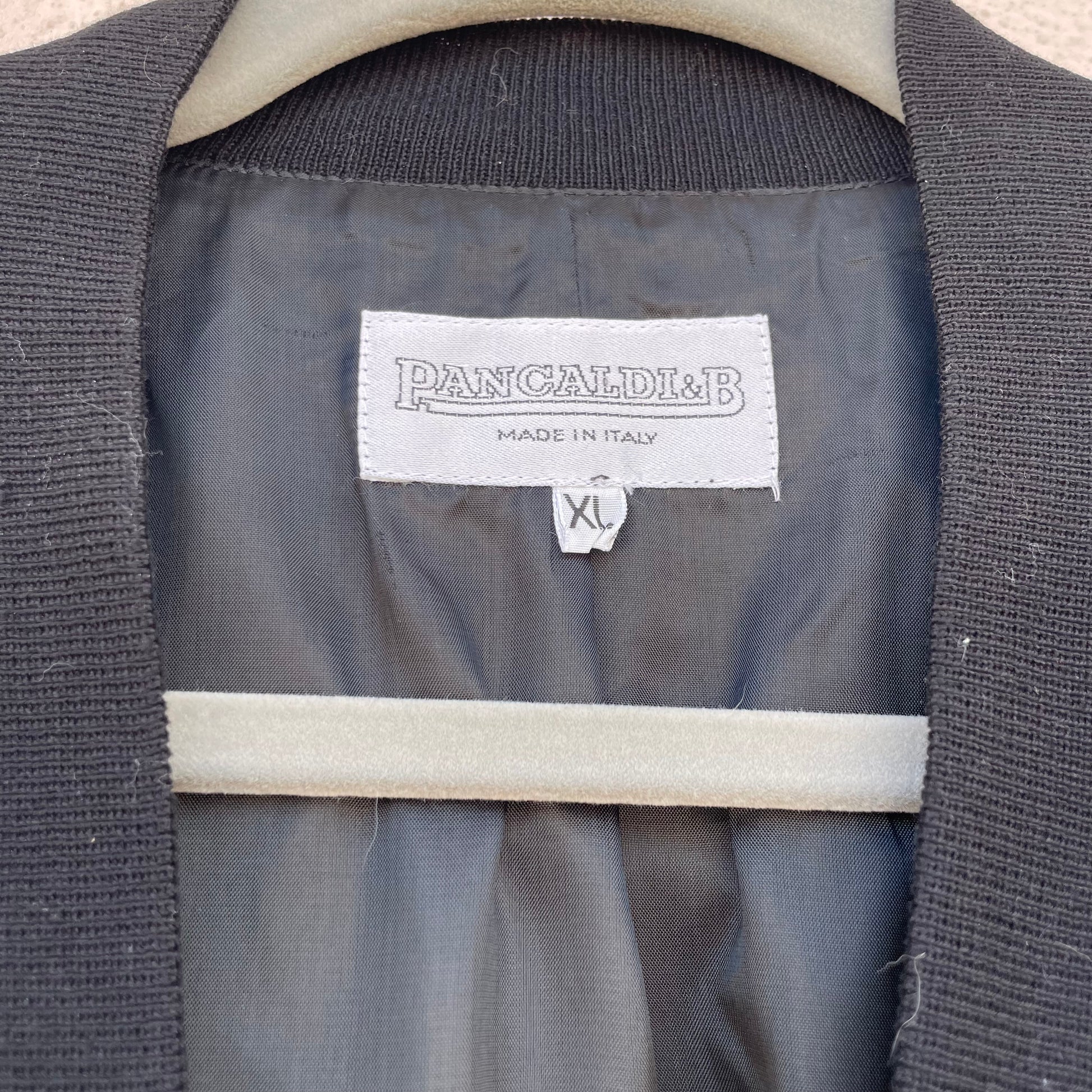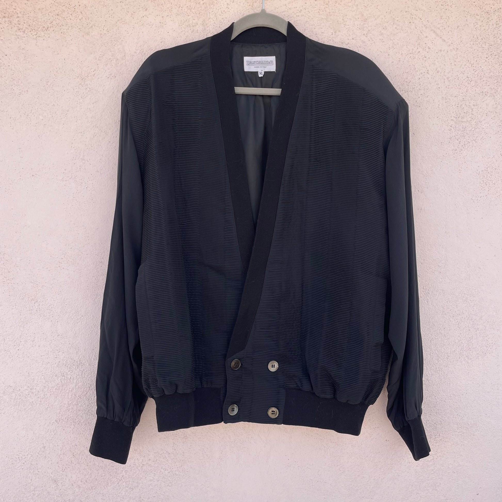 Bomber Pancaldi 100% seta. Chiusura su fondo a doppiopetto. Trama plissettata. Bottoni in madreperla.