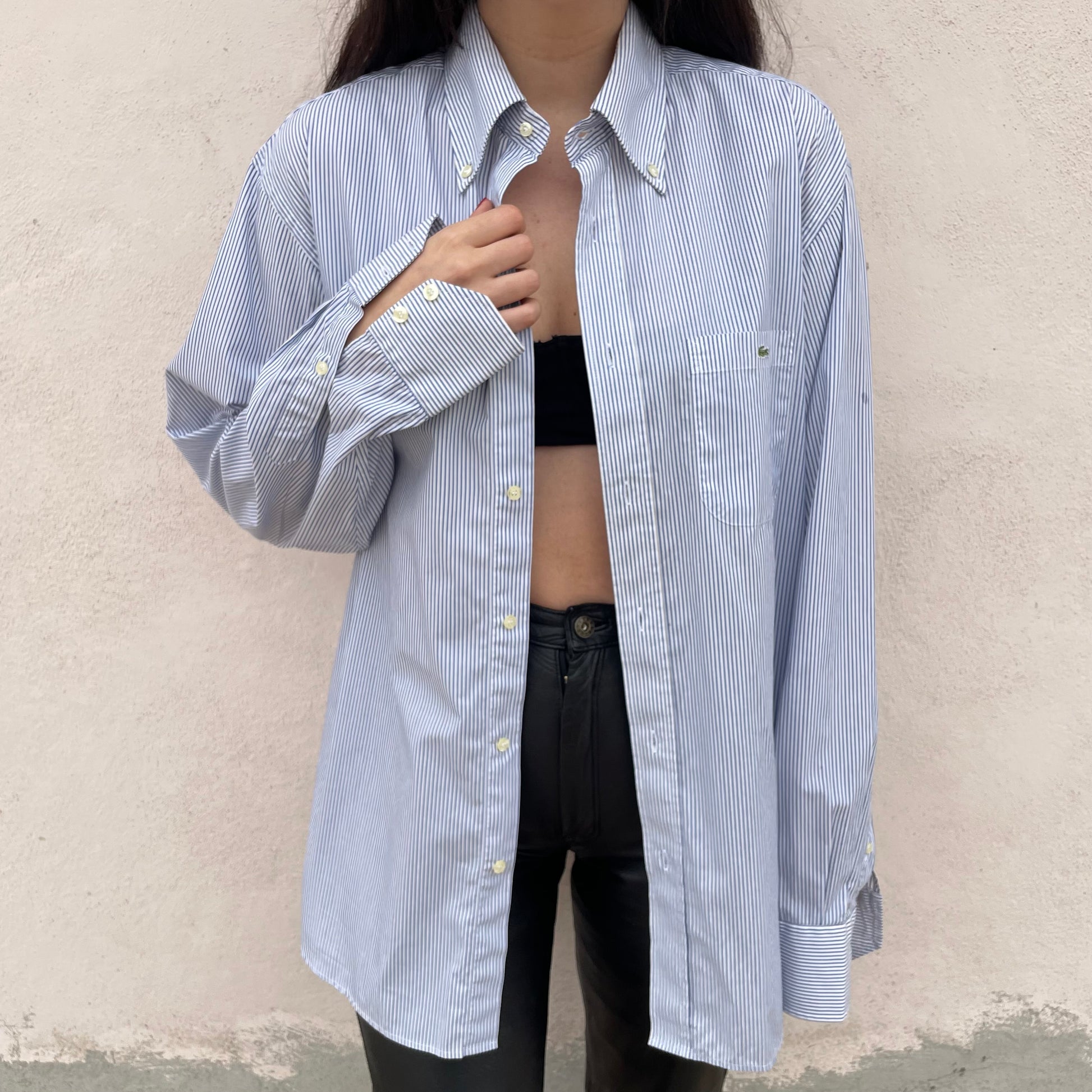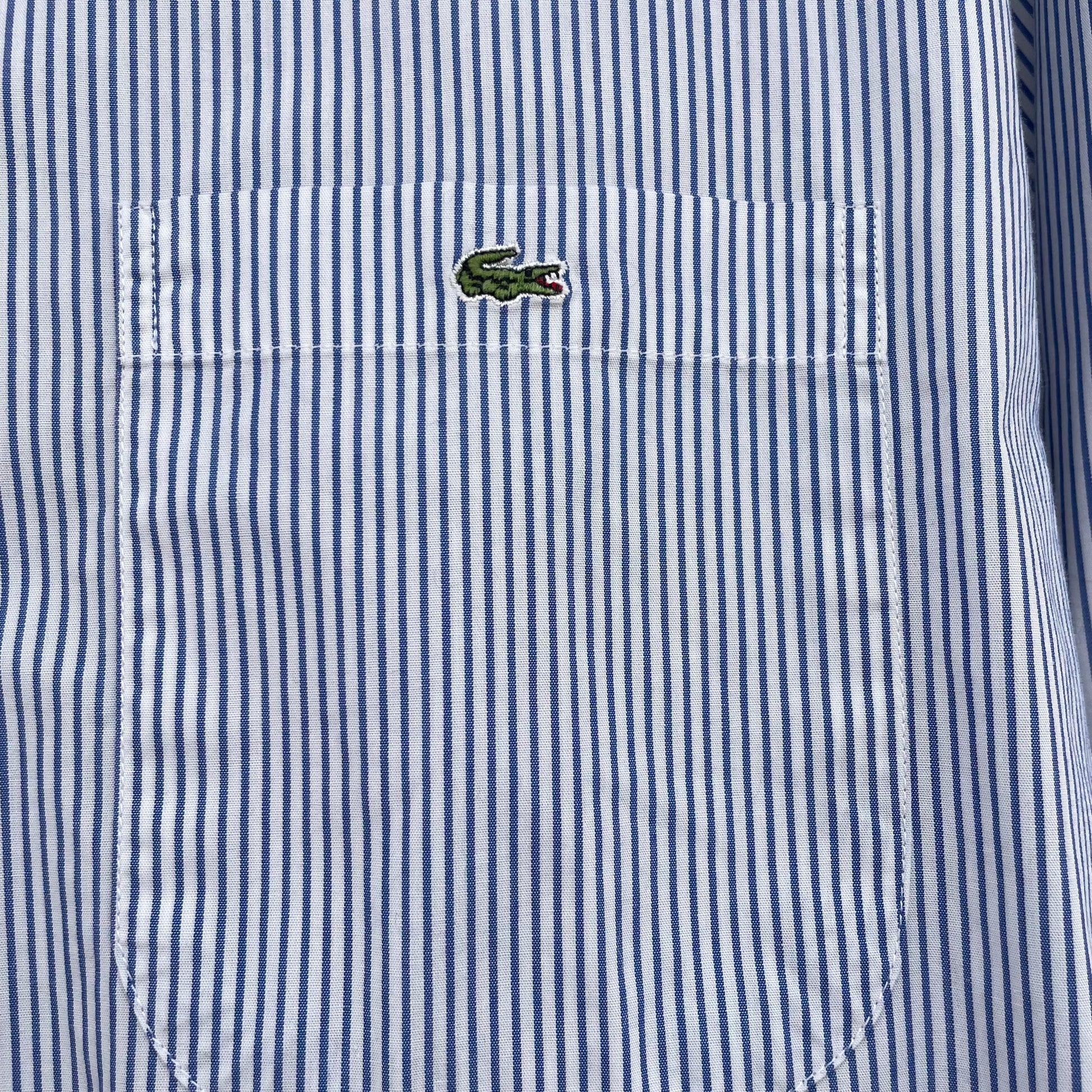 Camicia Lacoste 100% cotone a righe verticali bianche e celesti.Misure: