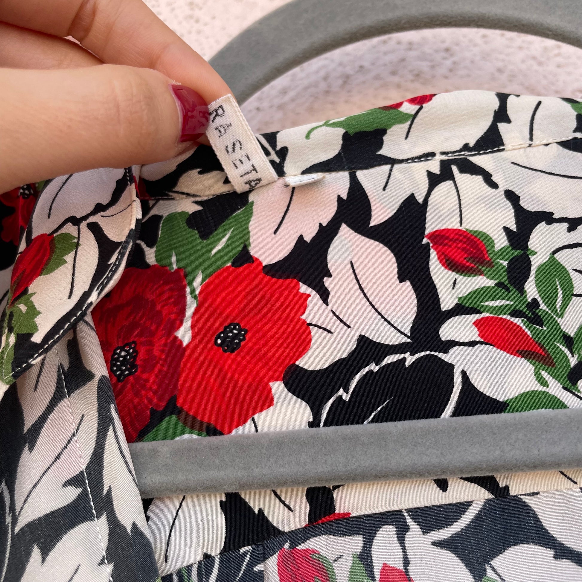 Camicia 100% pura seta con stampa floreale con papaveri rossi.
