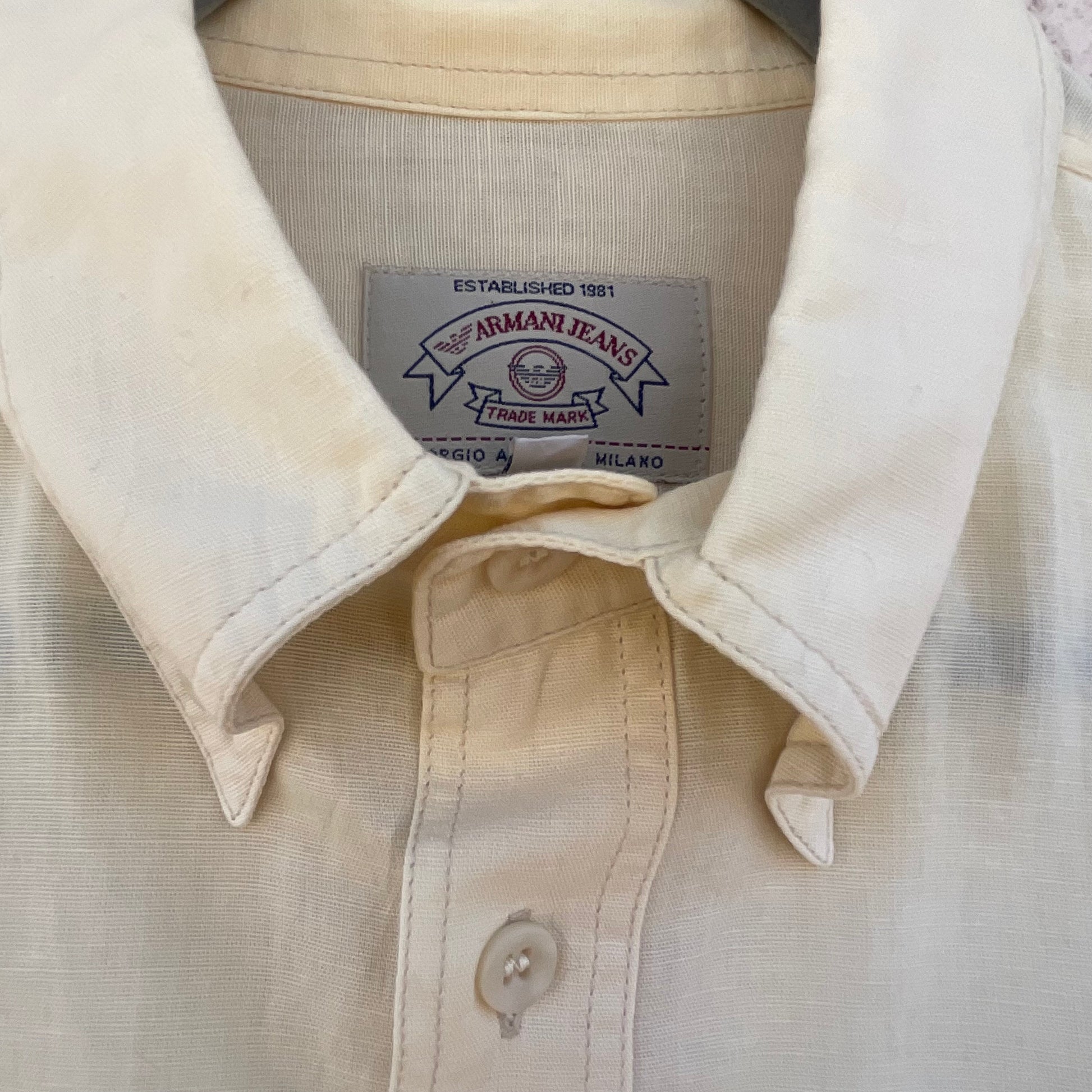 Camicia giallo pastello Armani 80% cotone 20% lino.