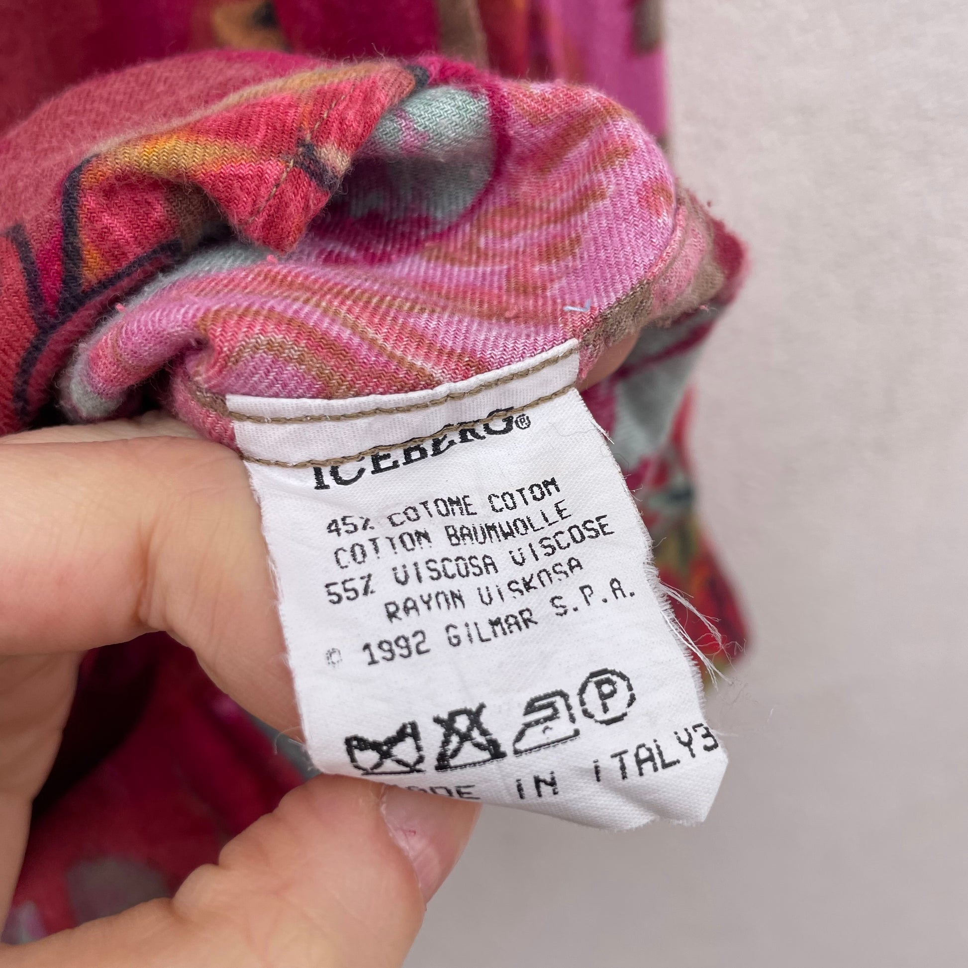 Camicia Iceberg del 1992 raffigurante scoiattoli scozzesi. 45% cotone 55% viscosa.