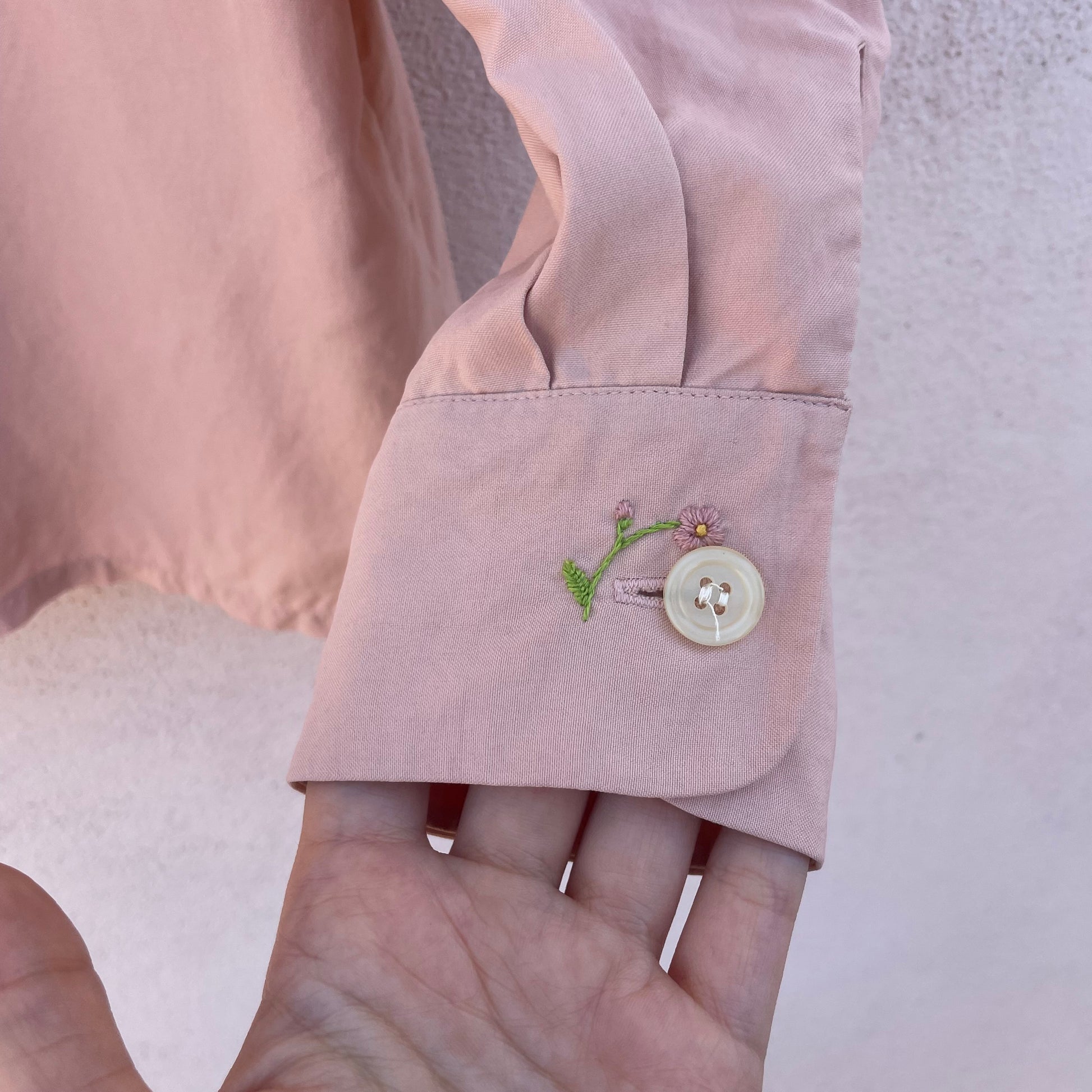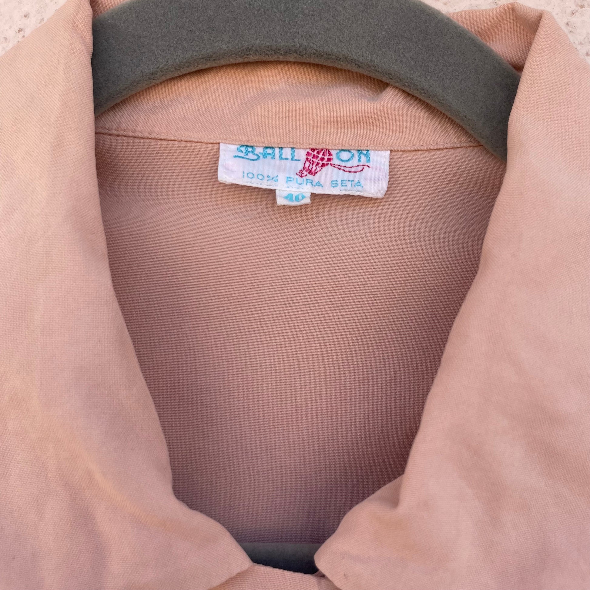 Camicia Balloon 100% seta rosa. Ricami fatti a mano sui polsini (reworked).