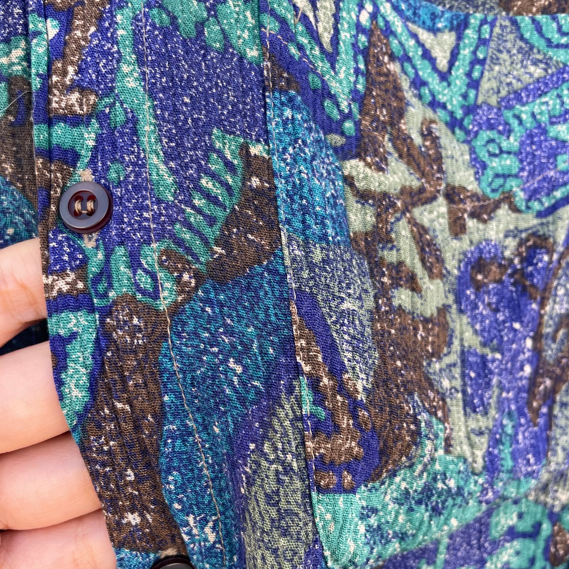 Camicia Yashi Yamamuri fantasia blu e verde pavone. Manca il merceologico ma è viscosa.