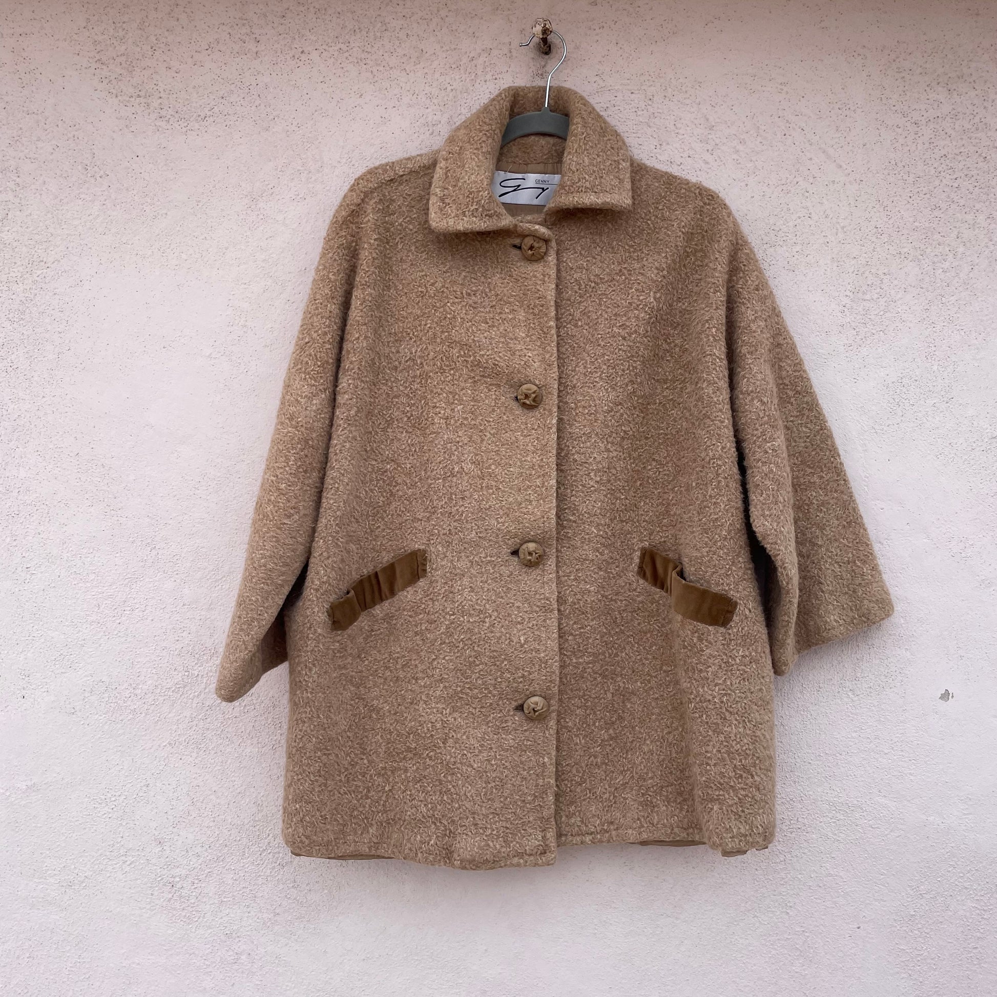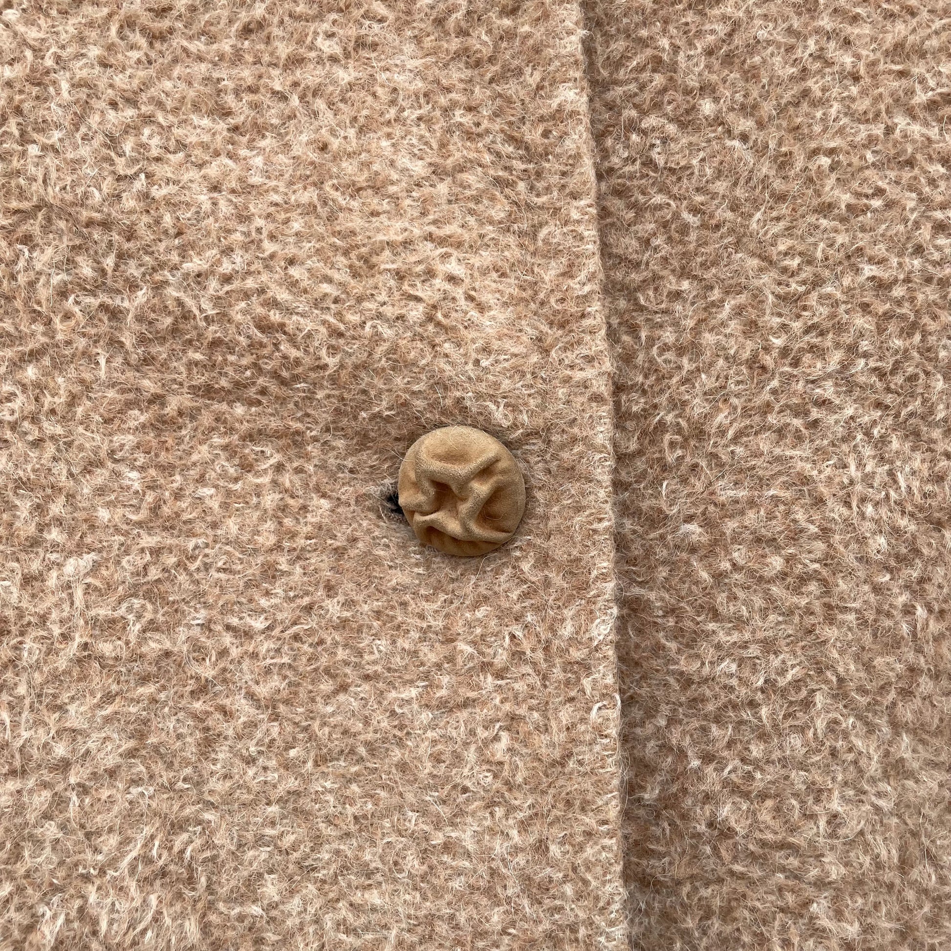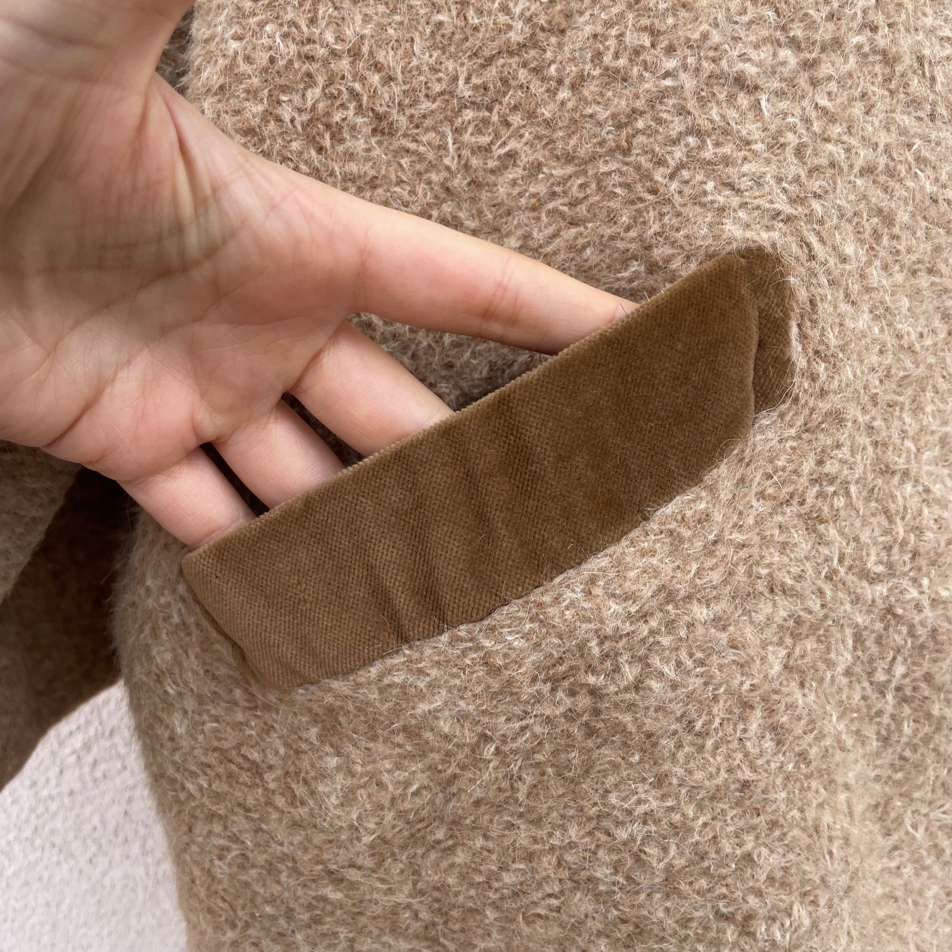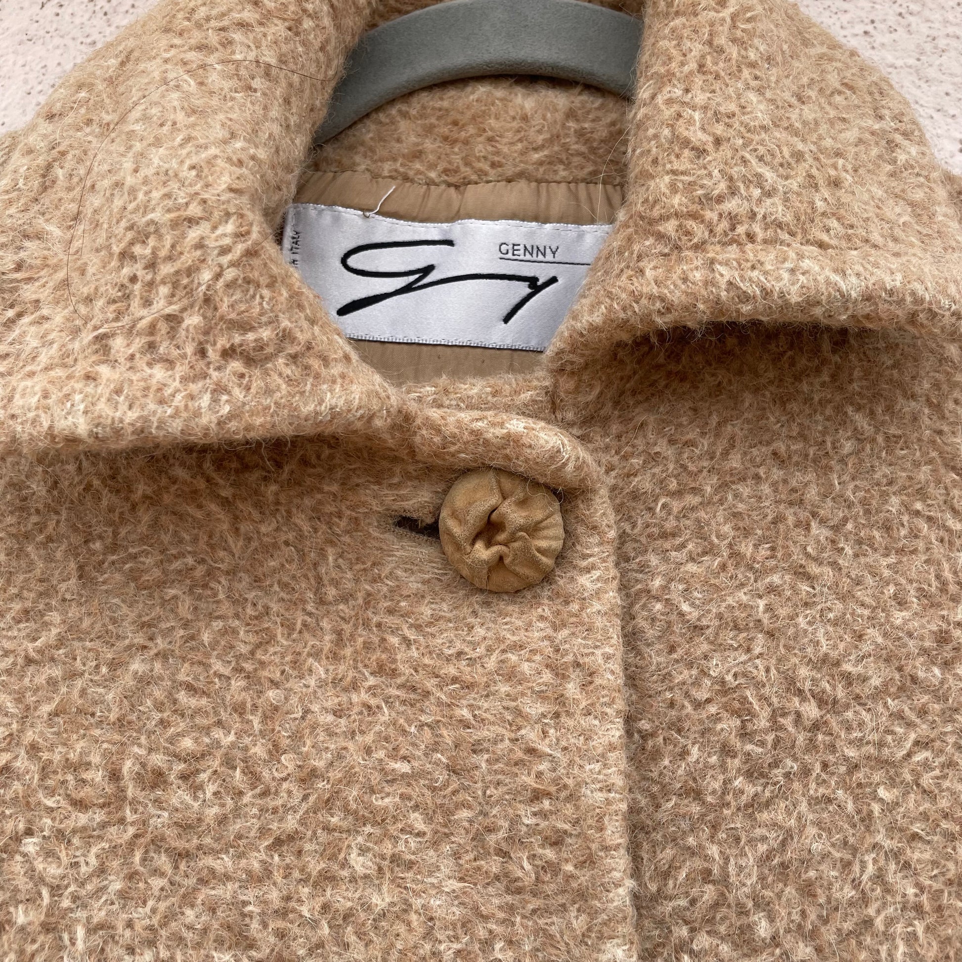 Cappotto bouclé tipo “teddy” Genny 56% alpaca 44% lana. Profili delle tasche in velluto.