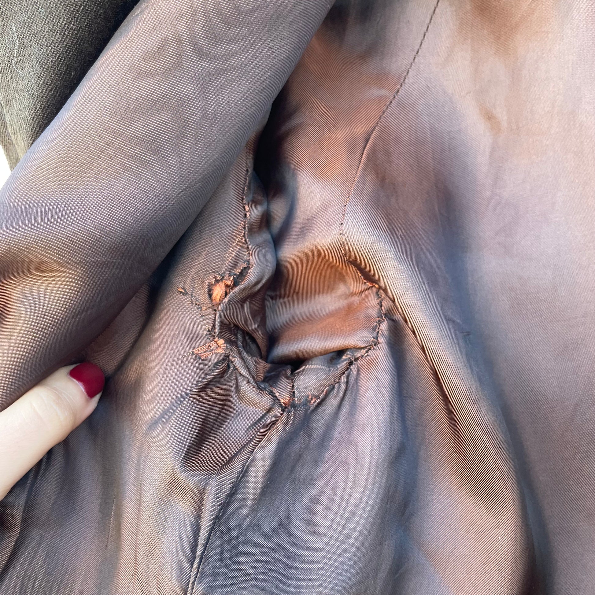 Il capo presenta qualche difetto nella fodera interna (vedi foto), esternamente è perfetto. Si tiene conto dei difetti nel prezzo.
