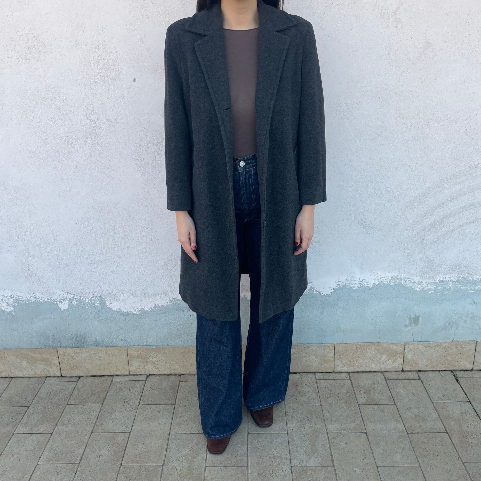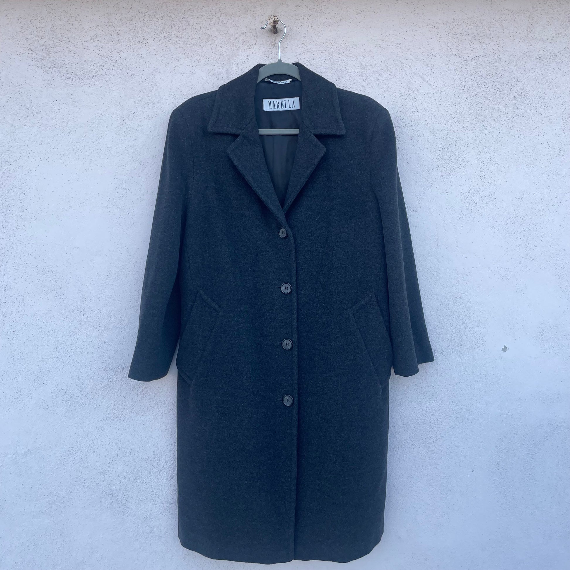Cappotto monopetto grigio Marella. 60% lana vergine 25% angora 15% poli.