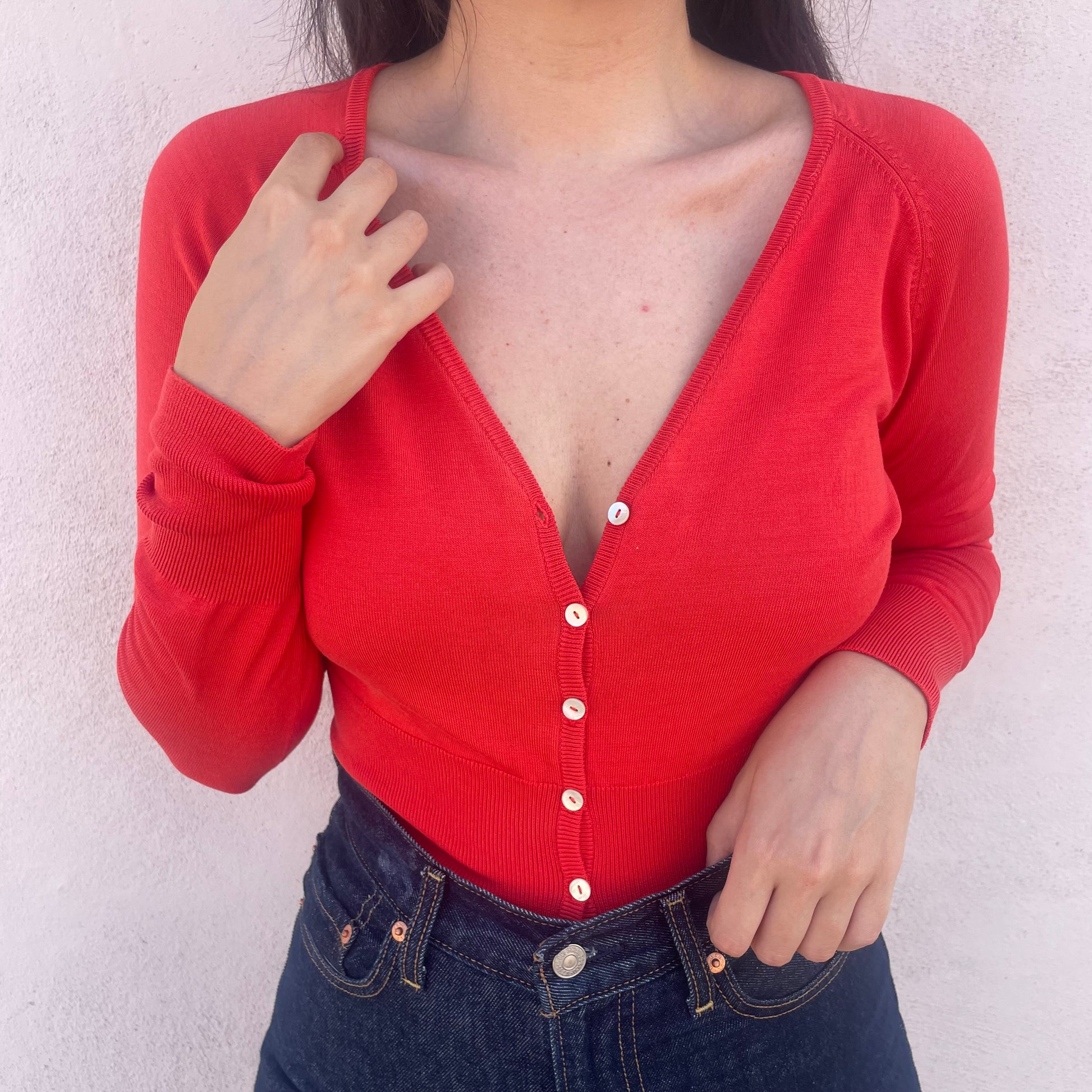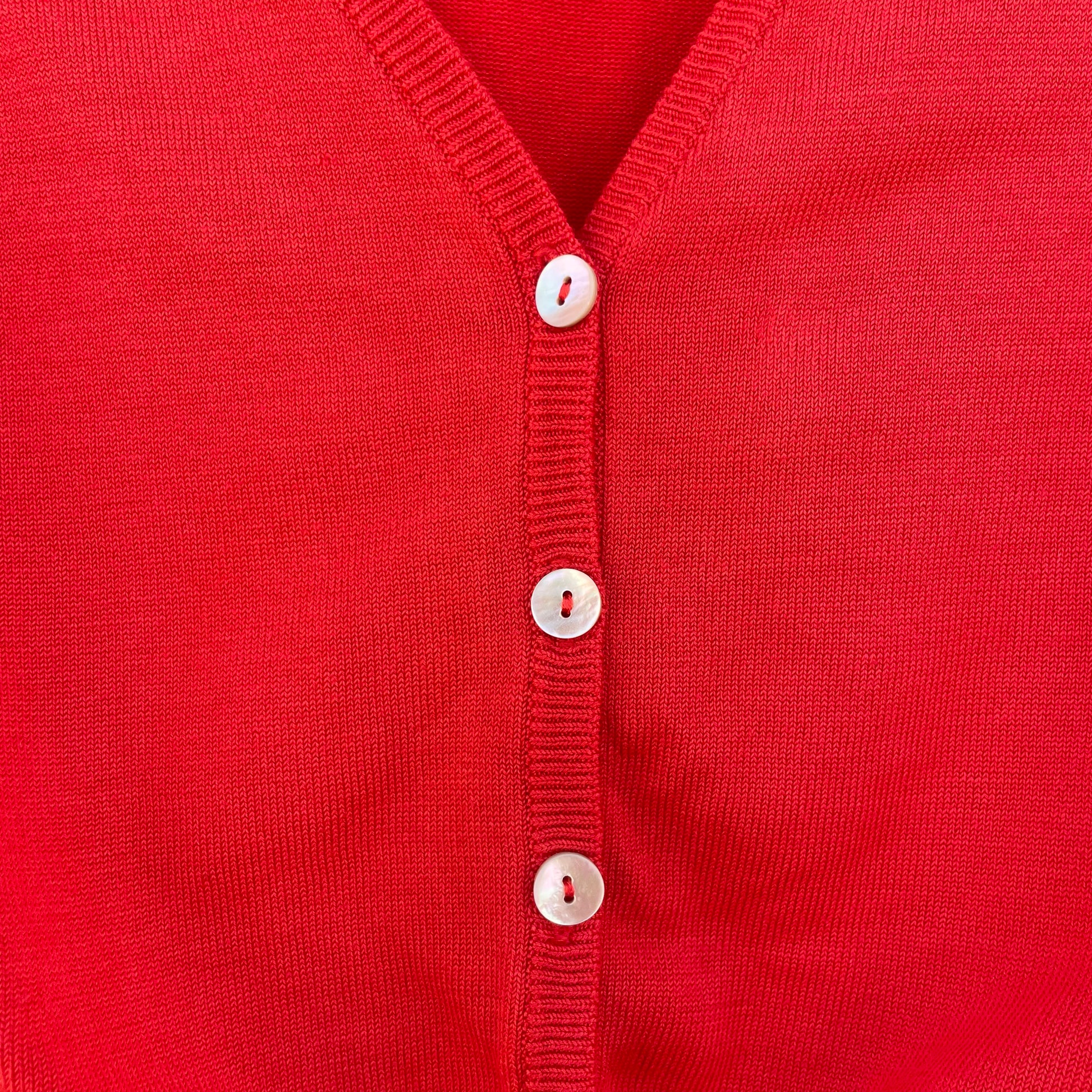 Cardigan in filato di seta con percentuale di elastan (seta 85% elastan 15%) Blunauta. Bottoni in madreperla.