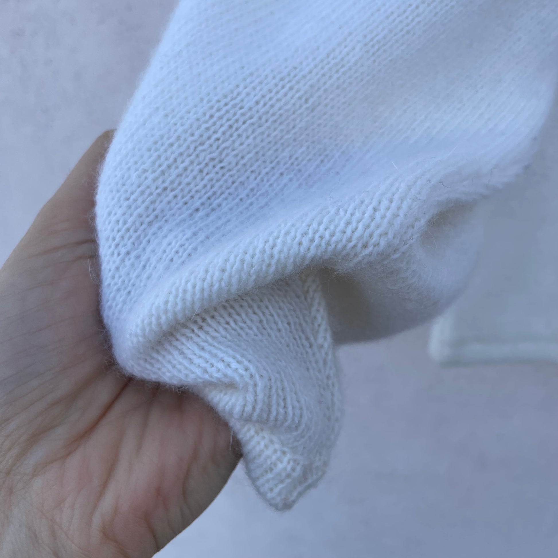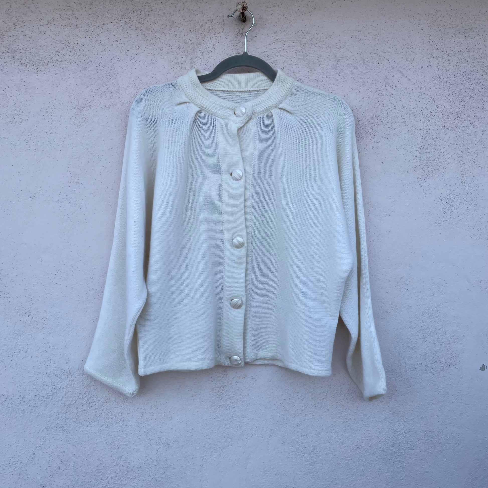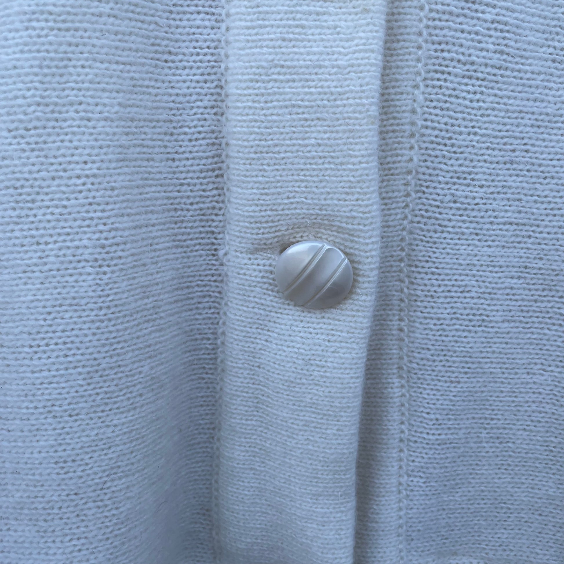Cardigan bianco latte 55% lana 30% angora 15% poli. Bottoni perlati.