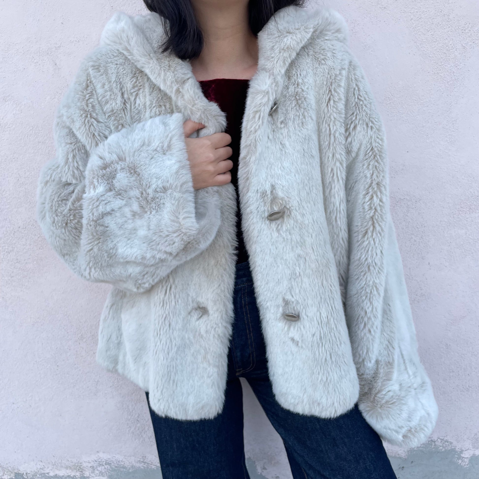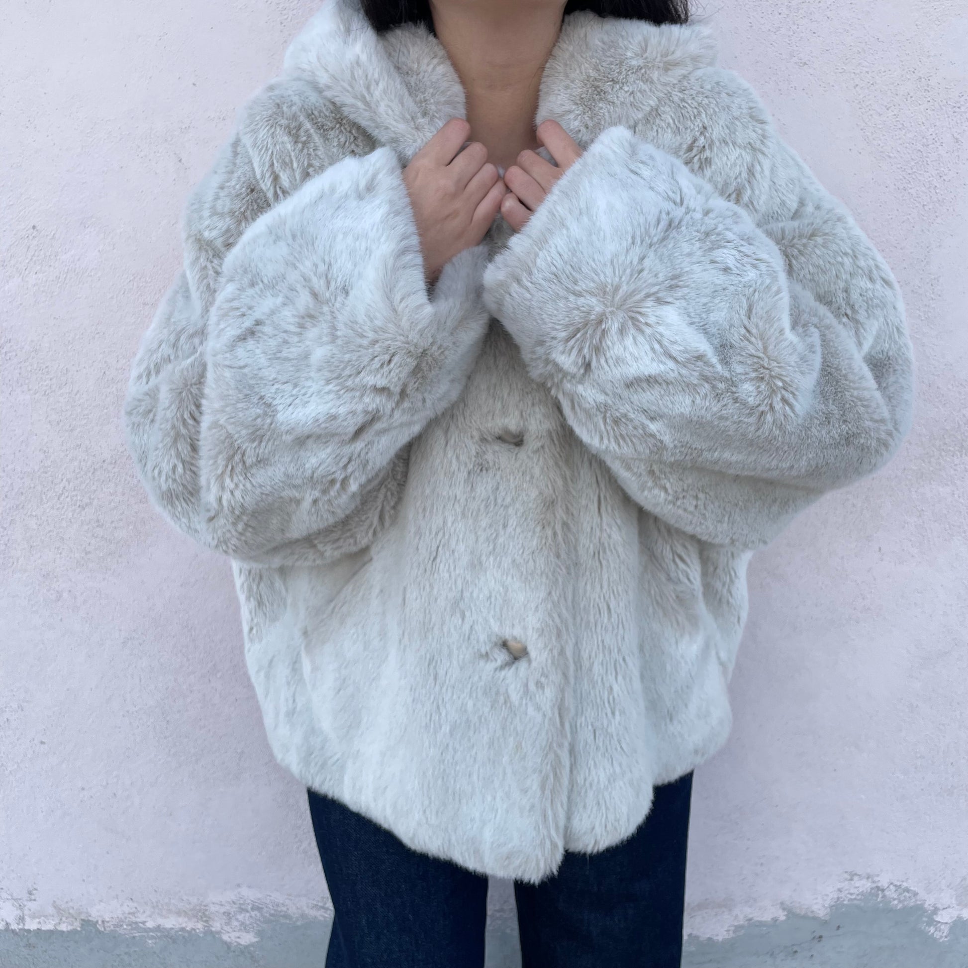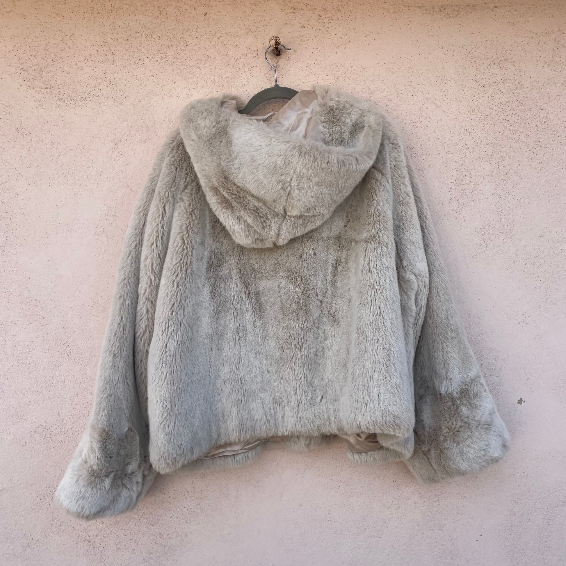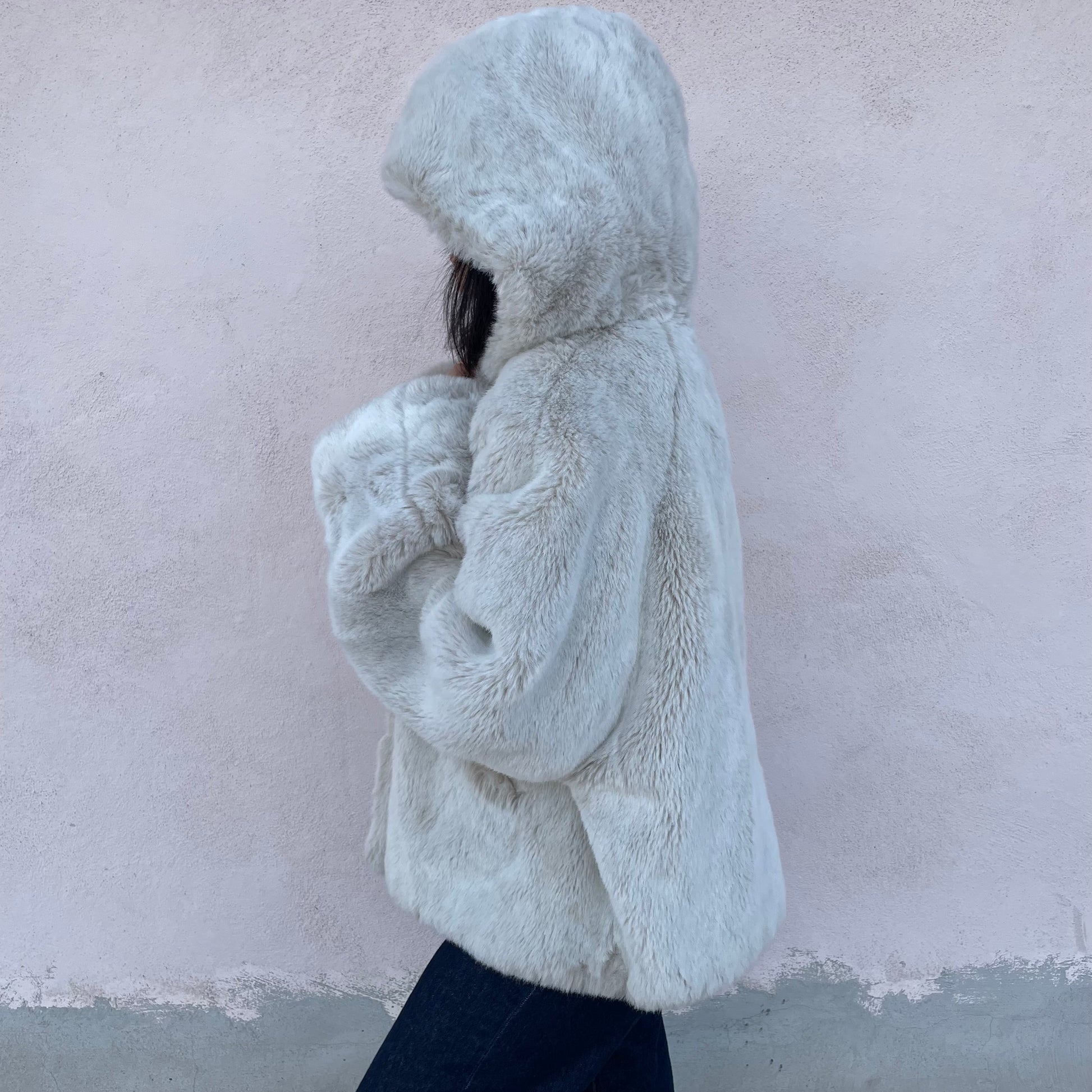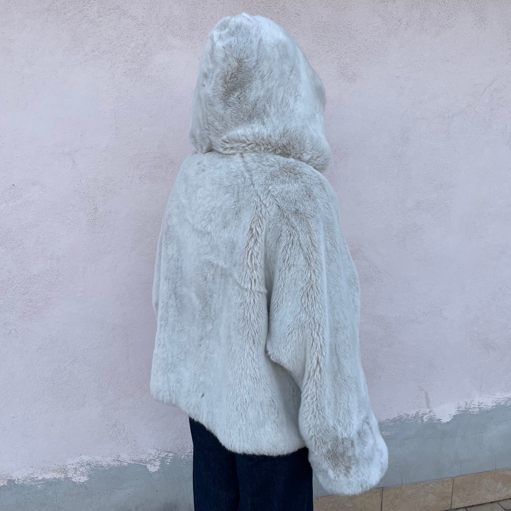 Ecopelliccia corta con cappuccio bianca/greige Sportmax (Max Mara).