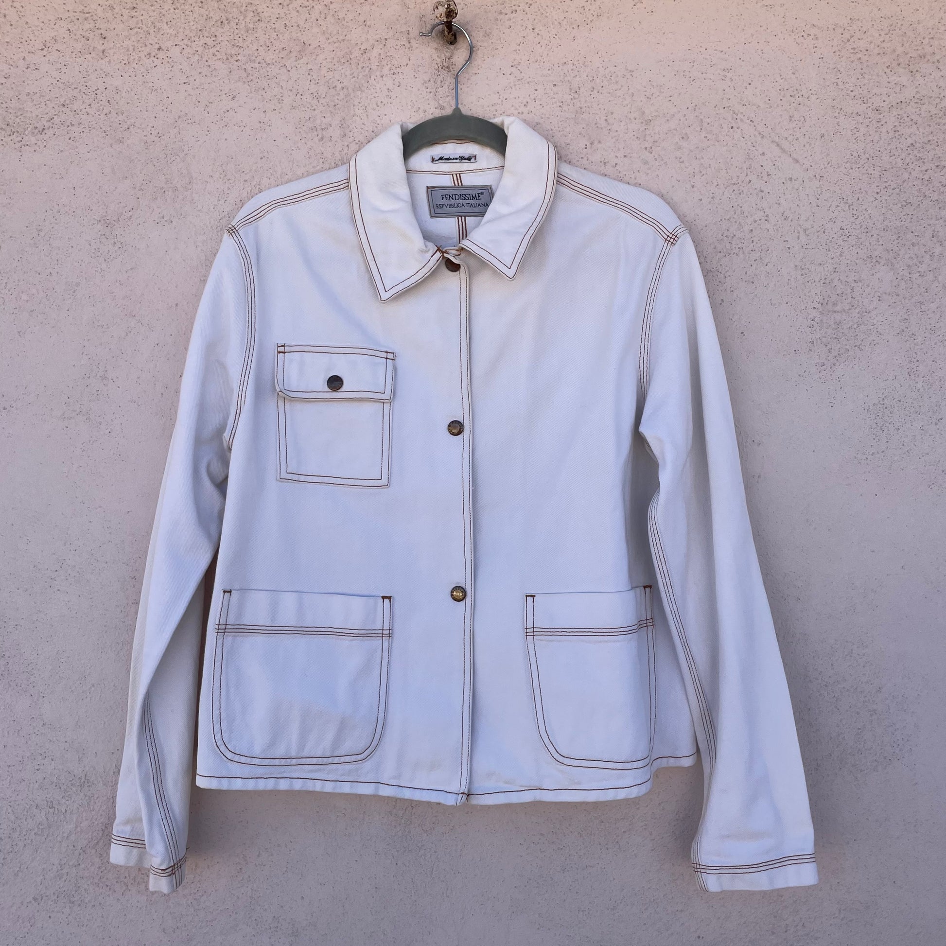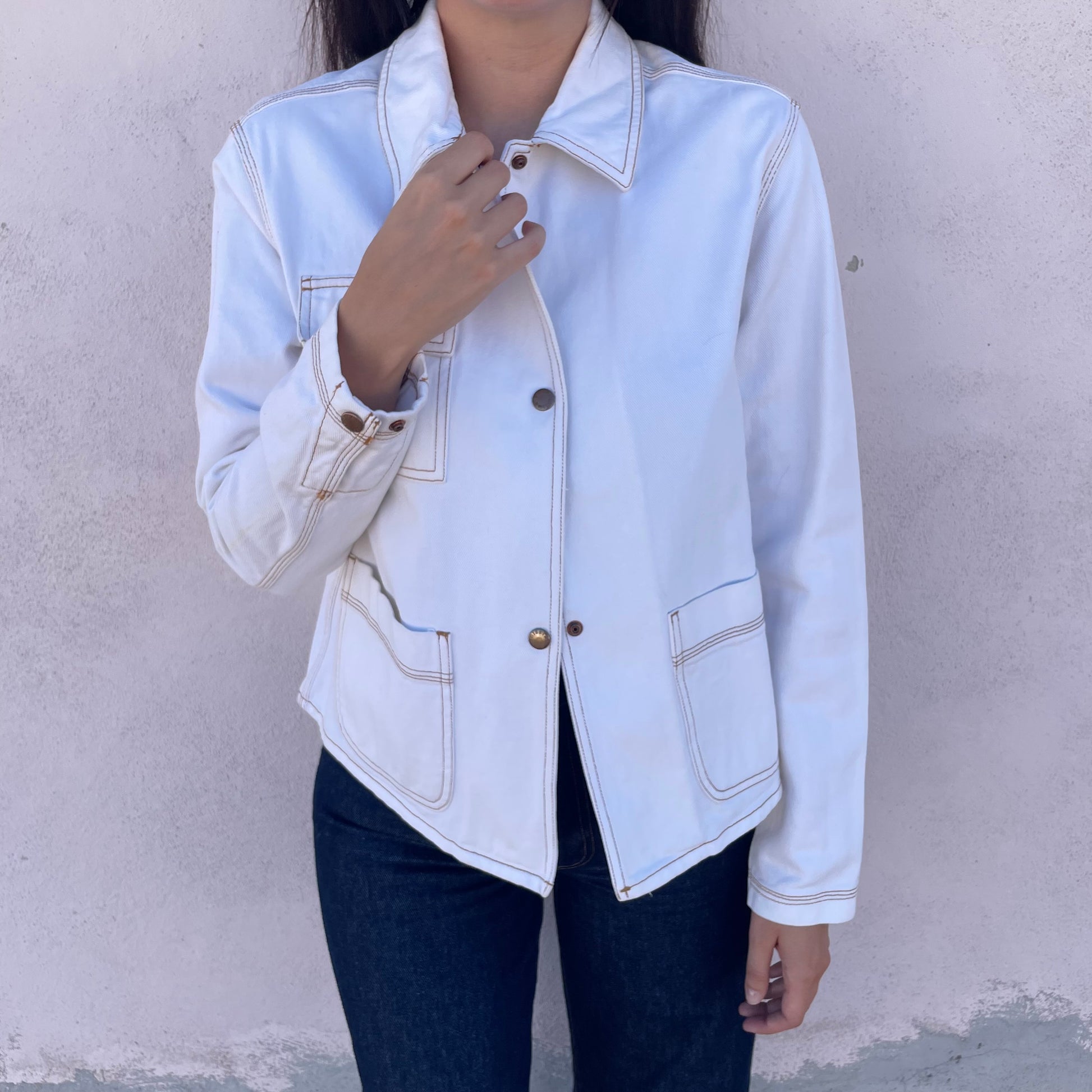 Work jacket in denim bianco Fendissime. 100% cotone.