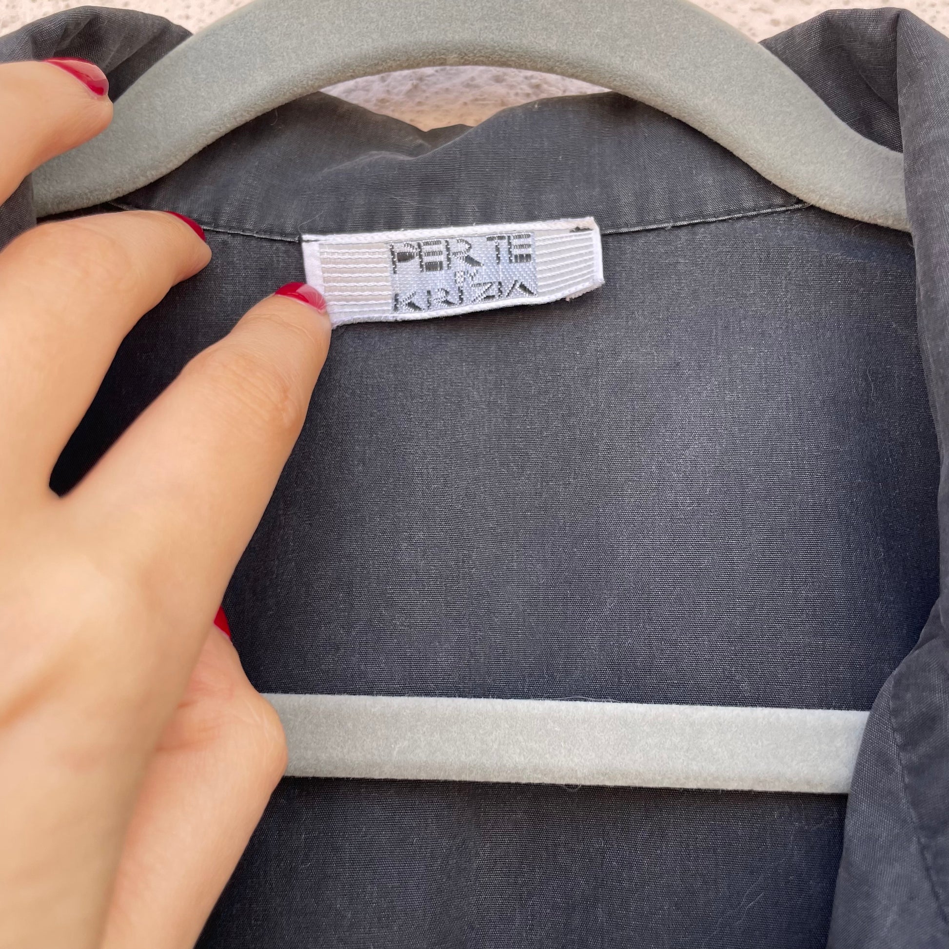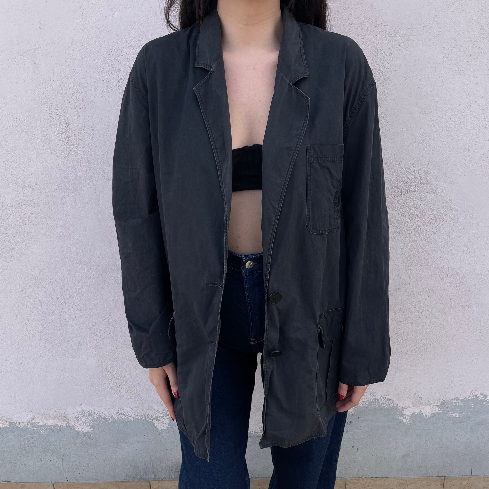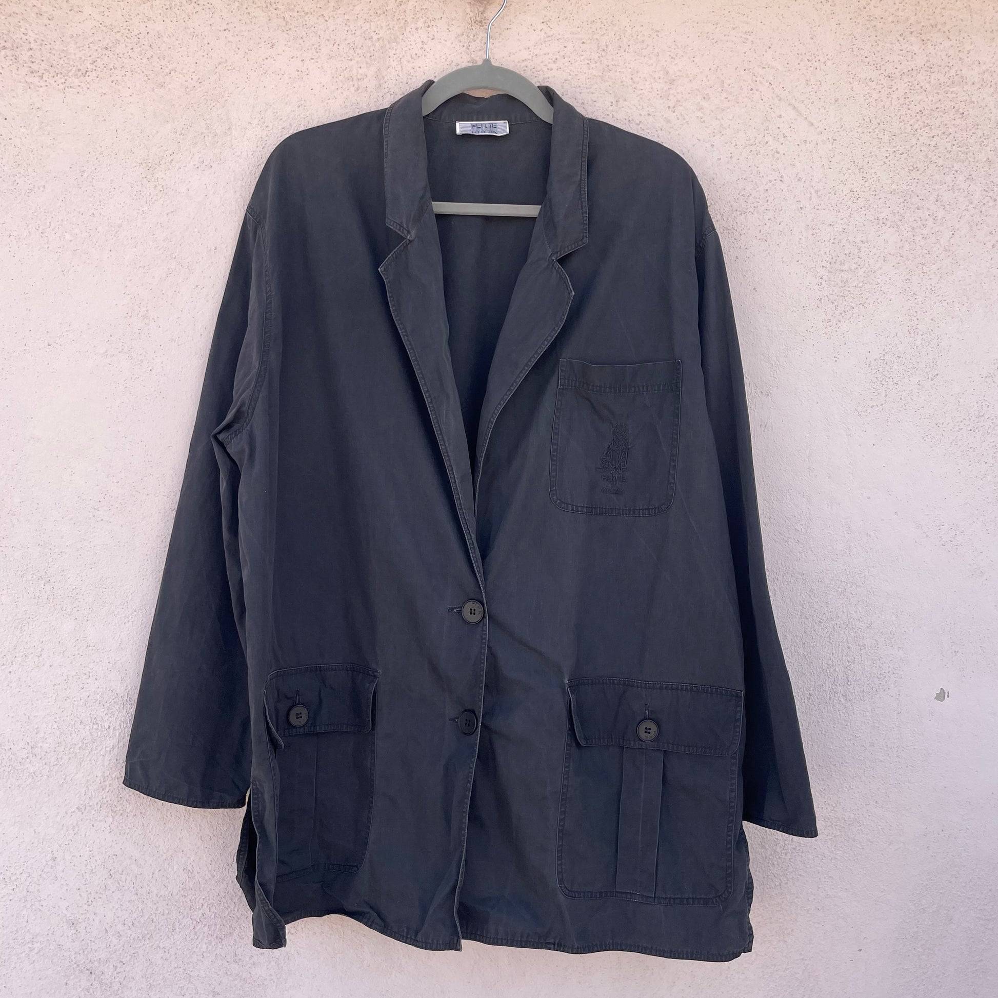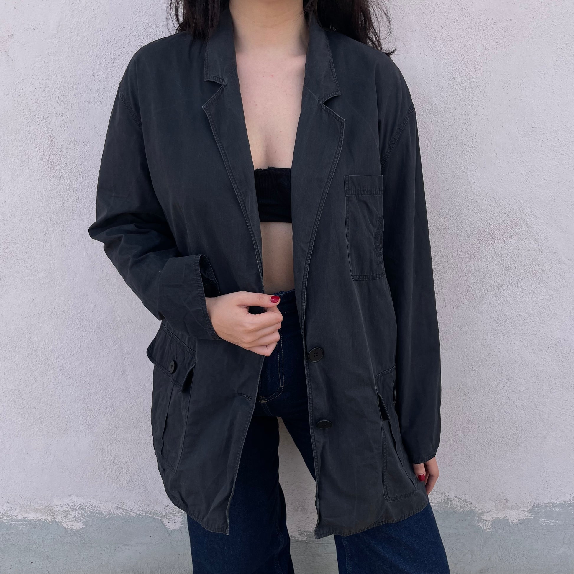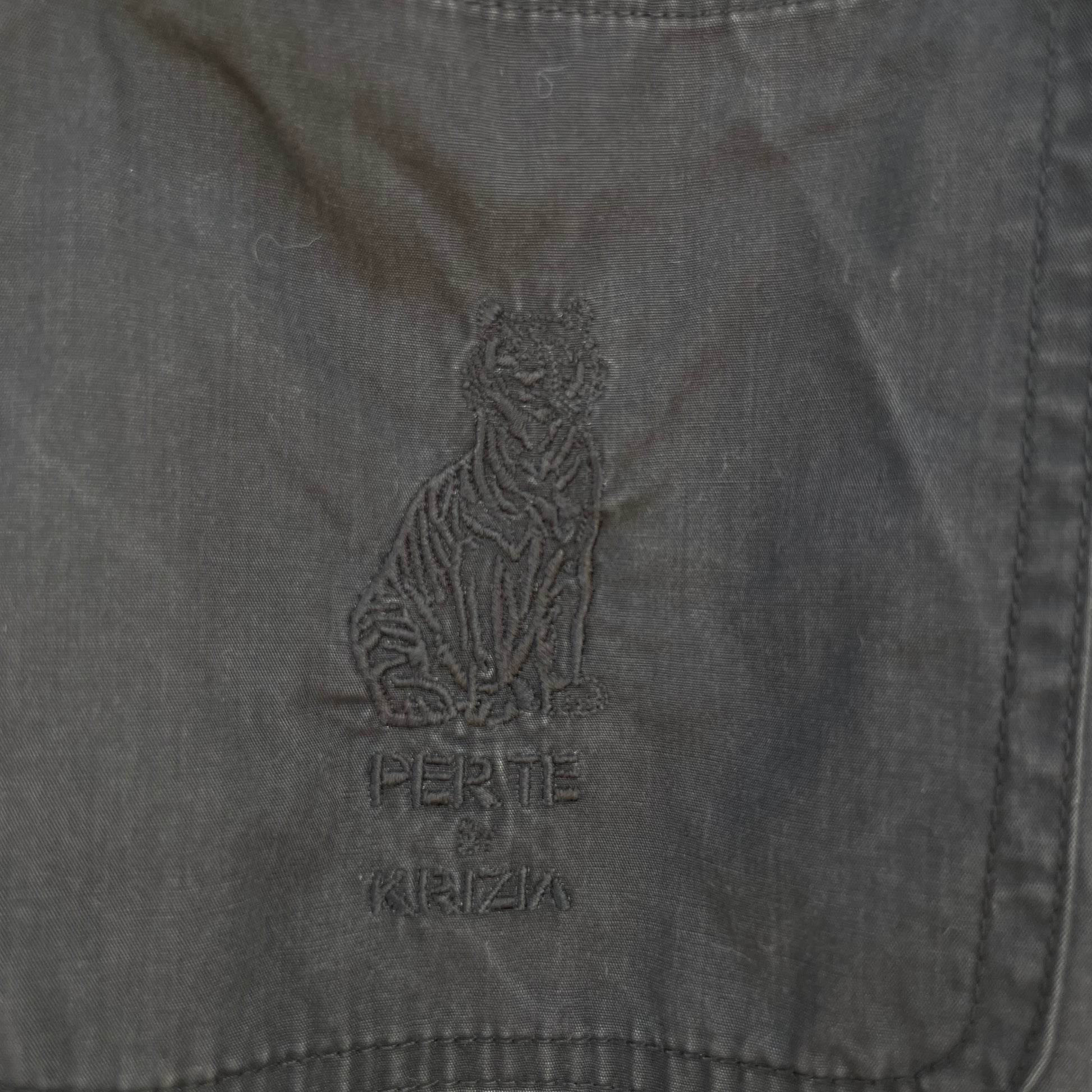 Giacca 100% cotone Krizia con ricamo tigre tono su tono sul taschino.