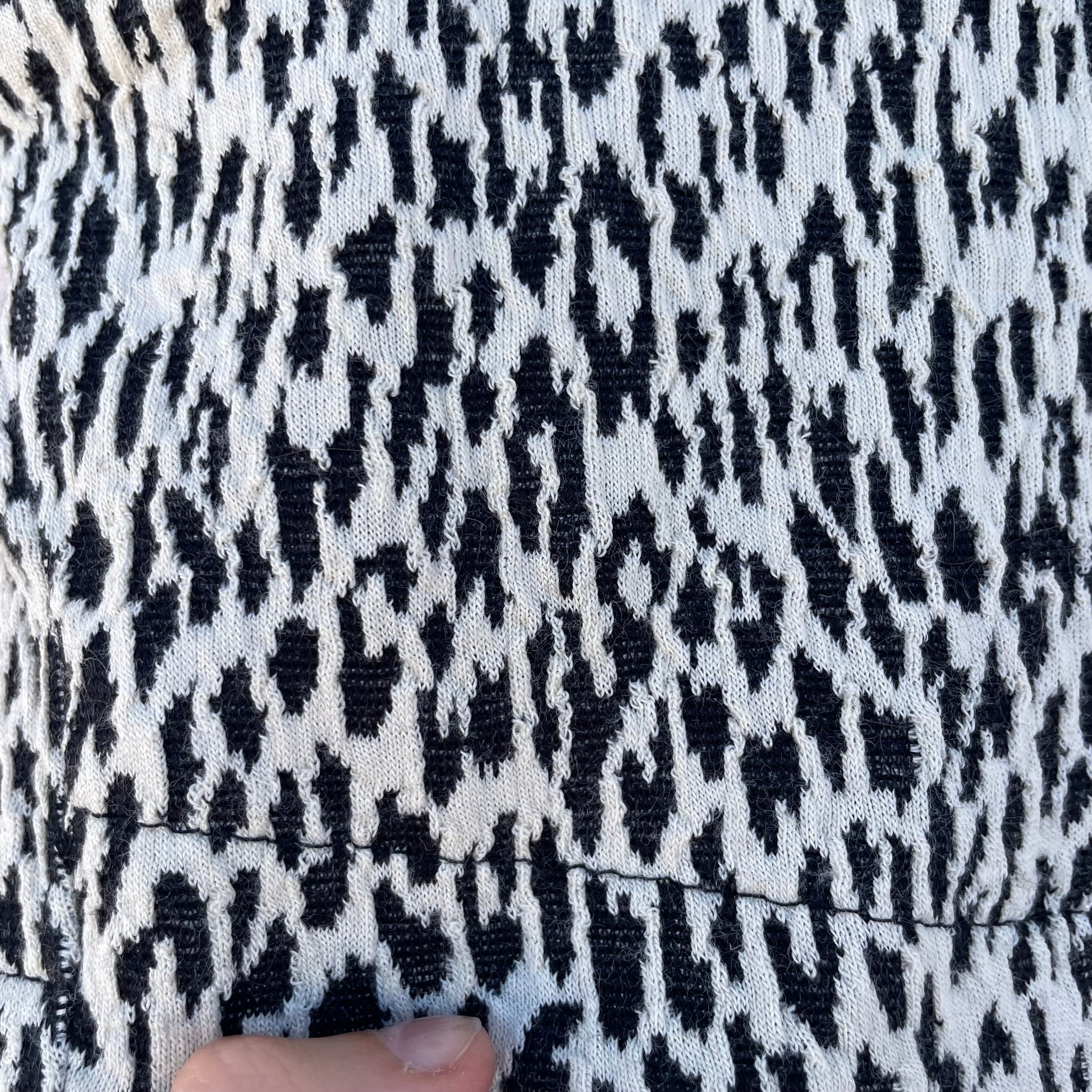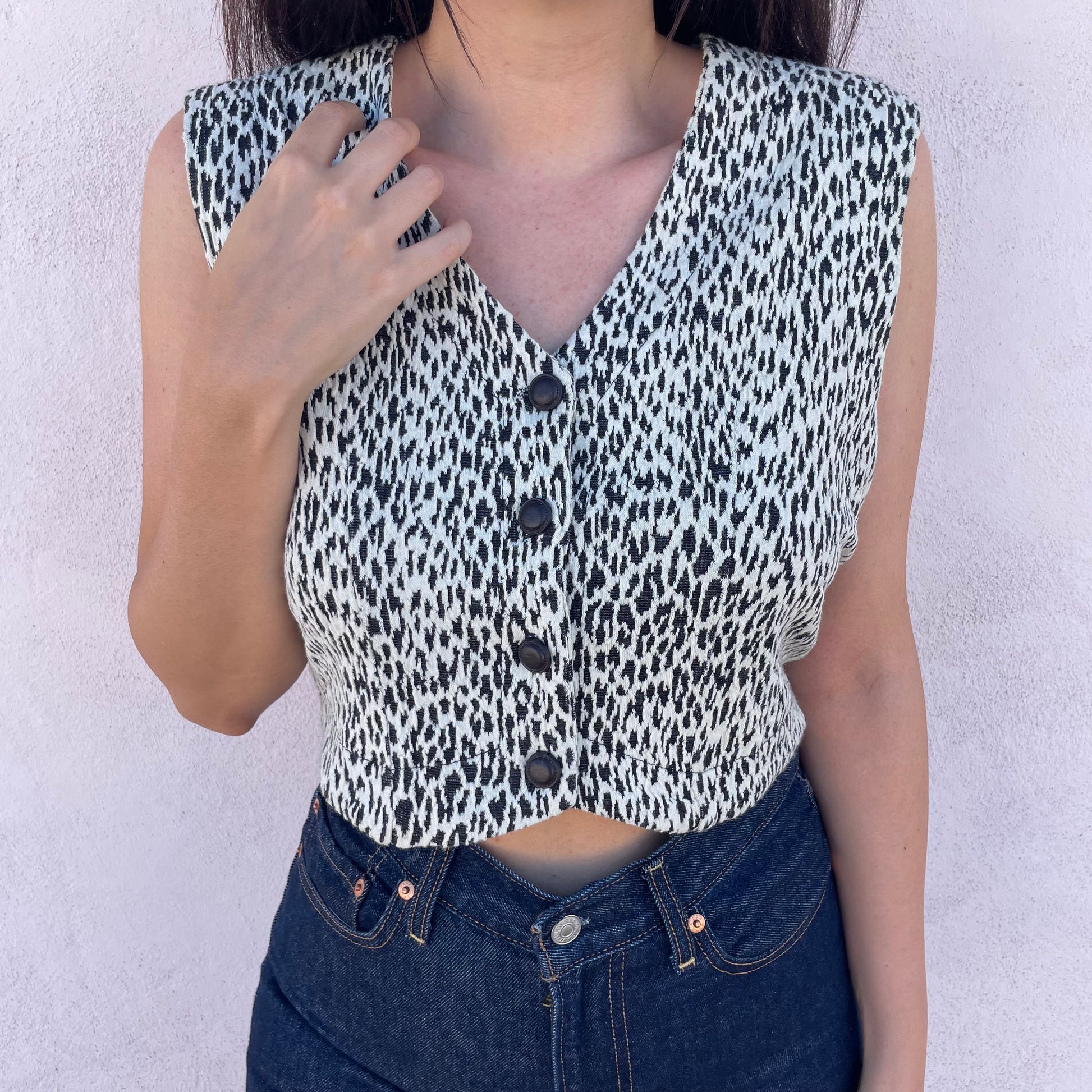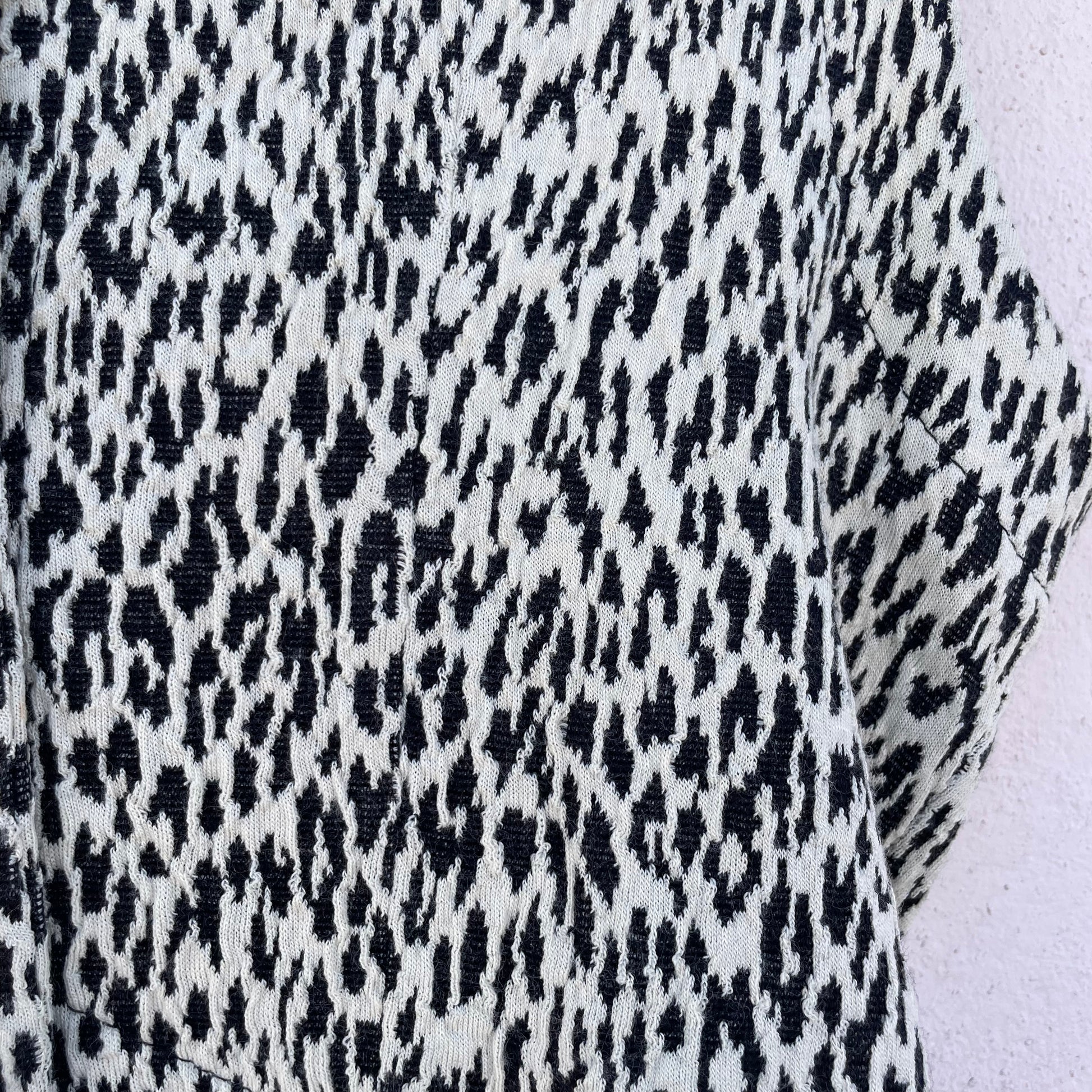 Gilet cropped stampa animalier in maglia. Manca il merceologico ma suppongo sia un misto cotone.