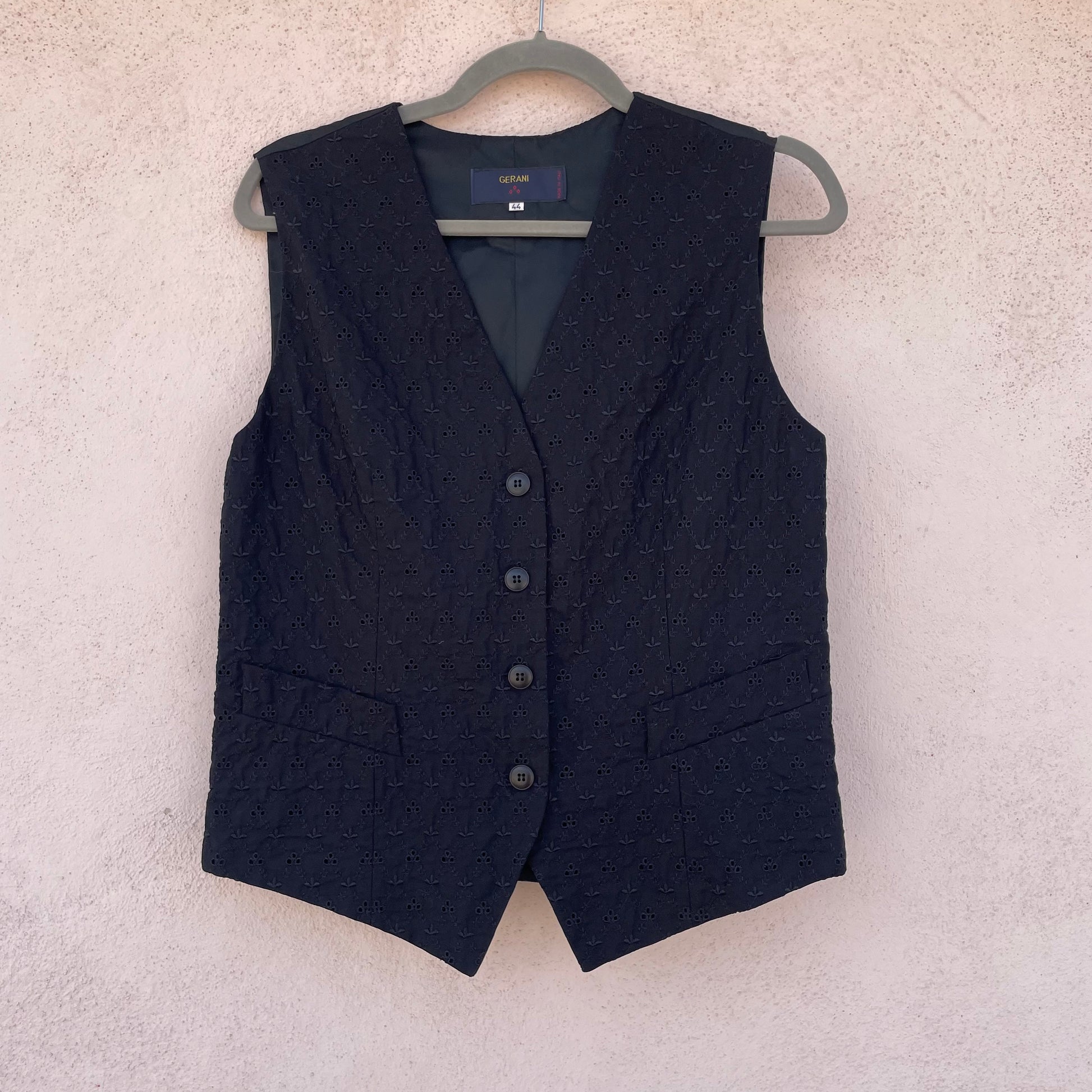 Gilet nero in sangallo 70% cotone 30% viscosa.