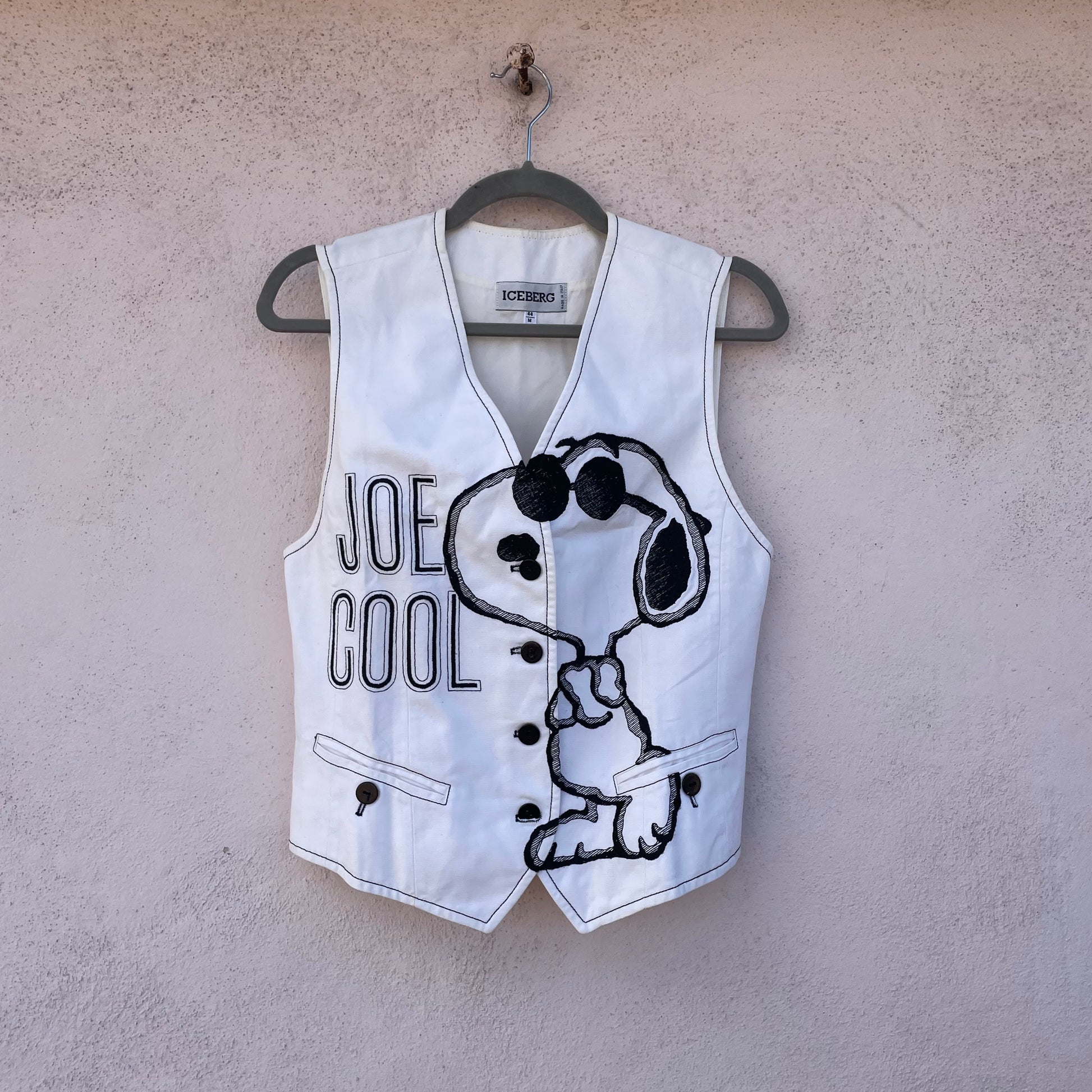 Gilet Snoopy by Iceberg. Pezzo da collezione. 100% cotone. Fibbietta sul retro per regolare l’ampiezza.