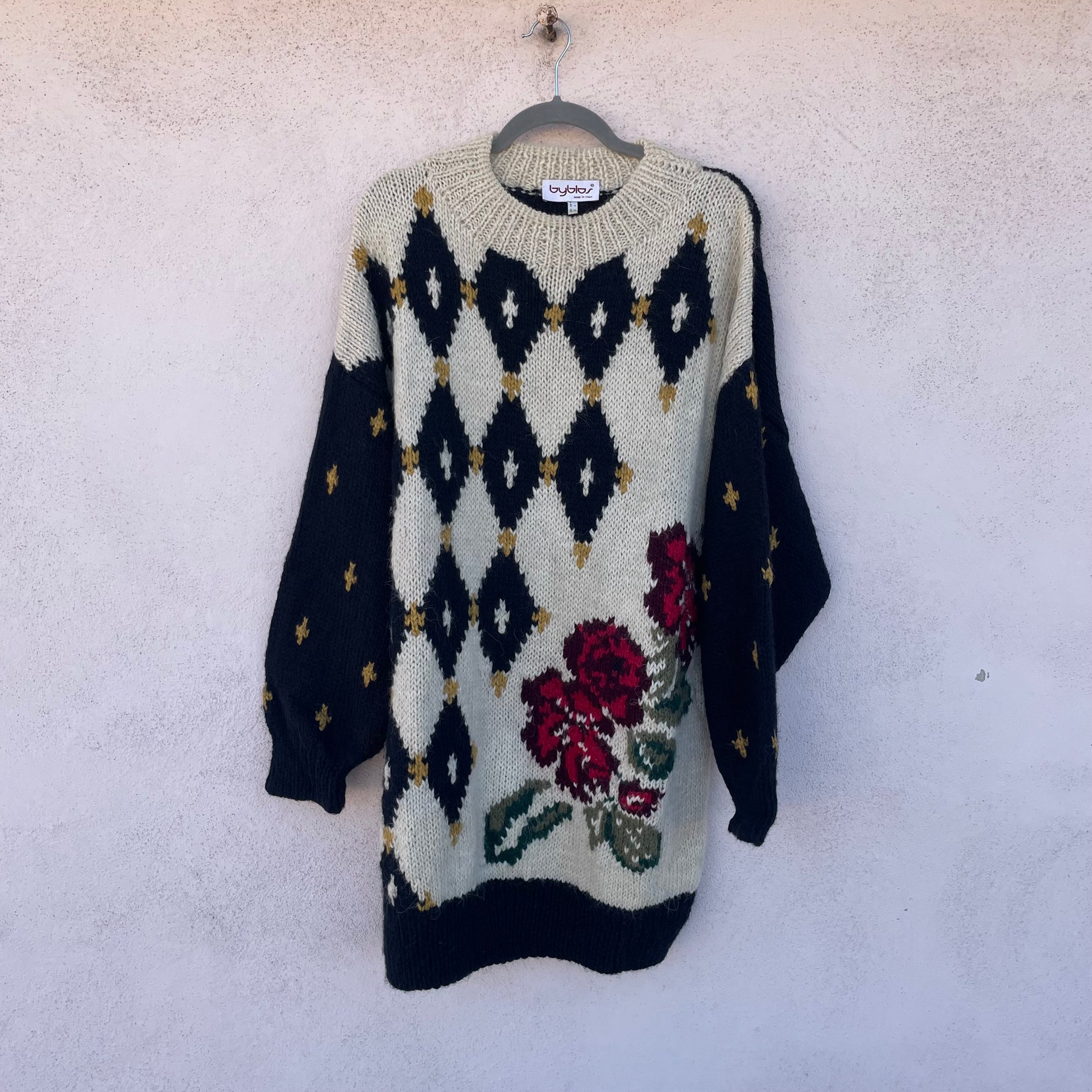 Maxi golf/abito Byblos della collezione fall winter 1991-1992. Manca il merceologico ma è lana.