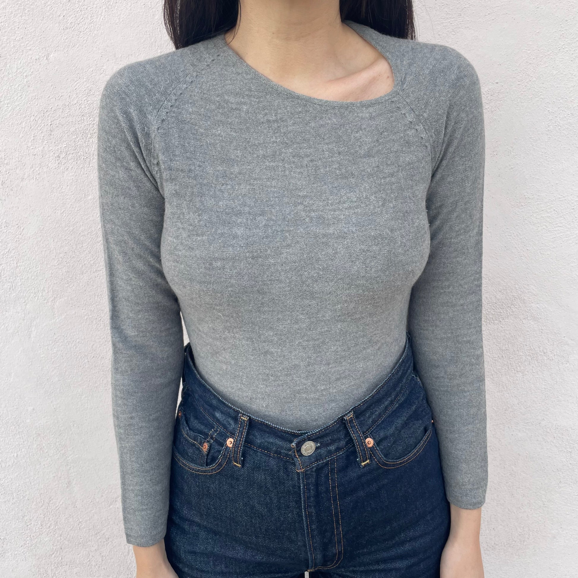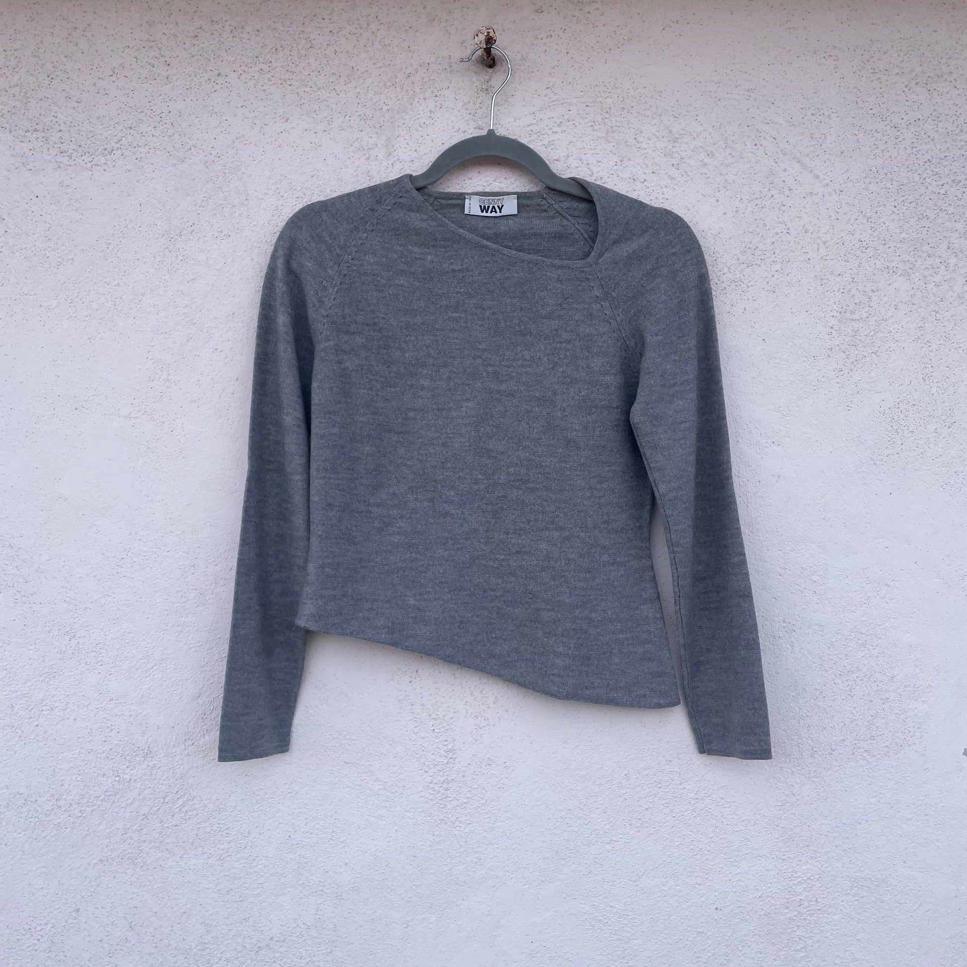 Golf grigio sottile 100% lana Genny. Taglio e scollo asimmetrico.