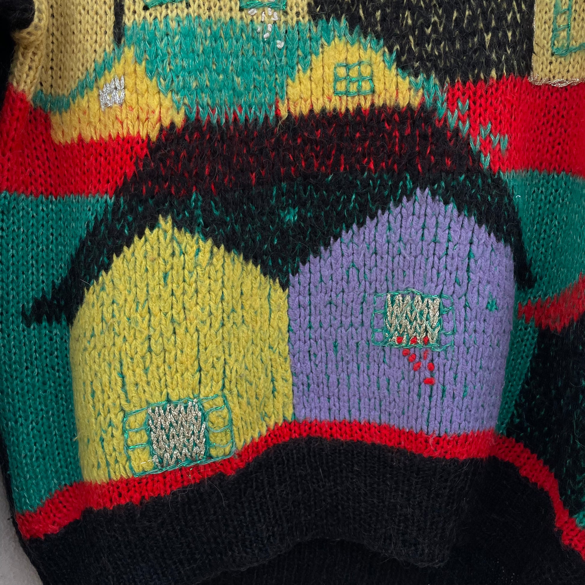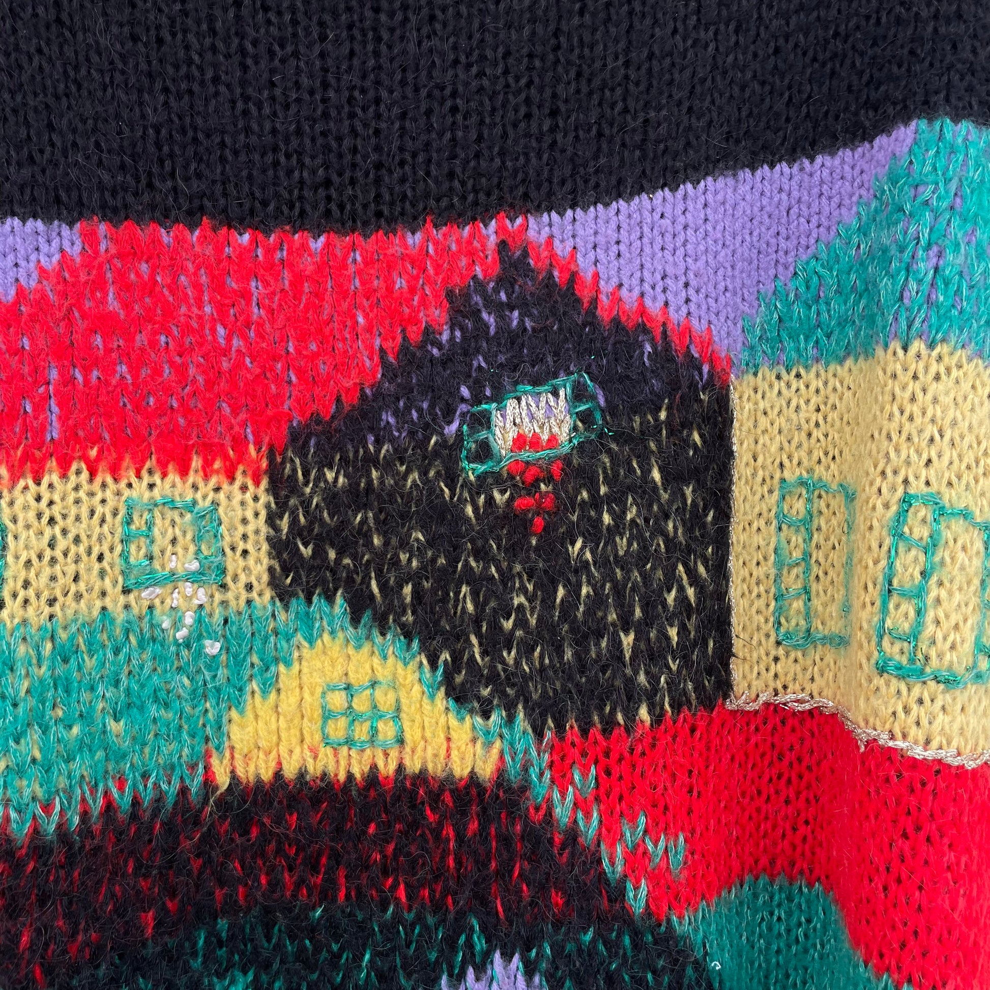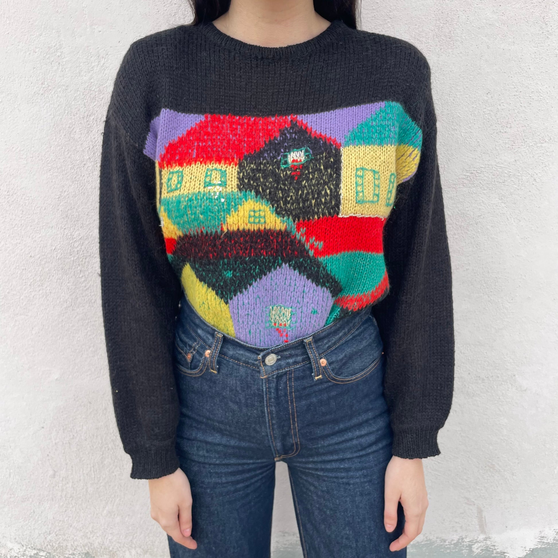 Golf base nera con casette colorate. 30% kid mohair 30% nylon 10% lana 30% acrilico. Spalline amovibili.
