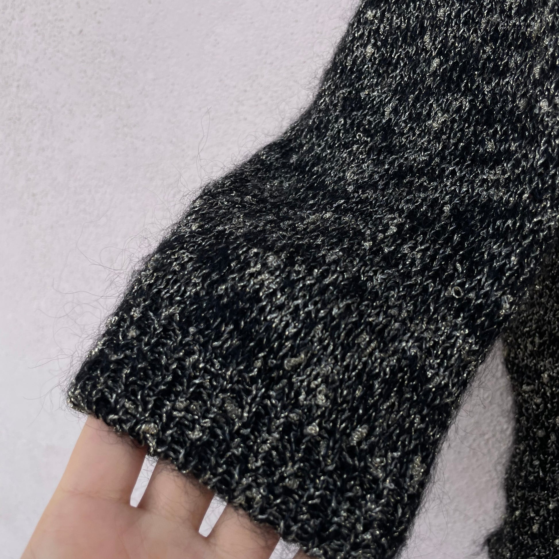 Golf mélange lamé grigio argento 70% super kid mohair 30% poli.