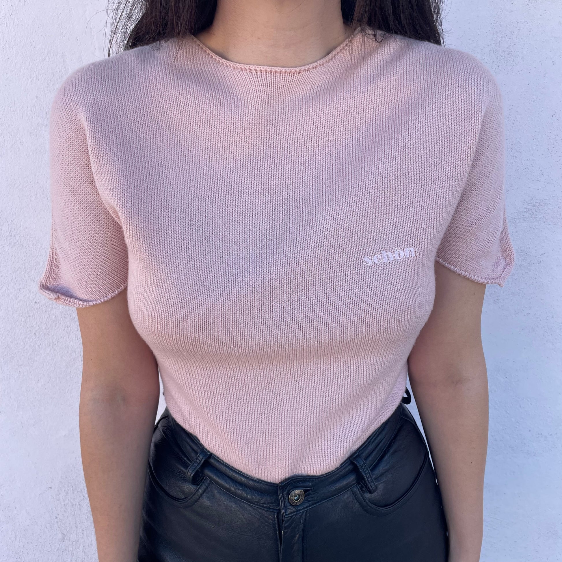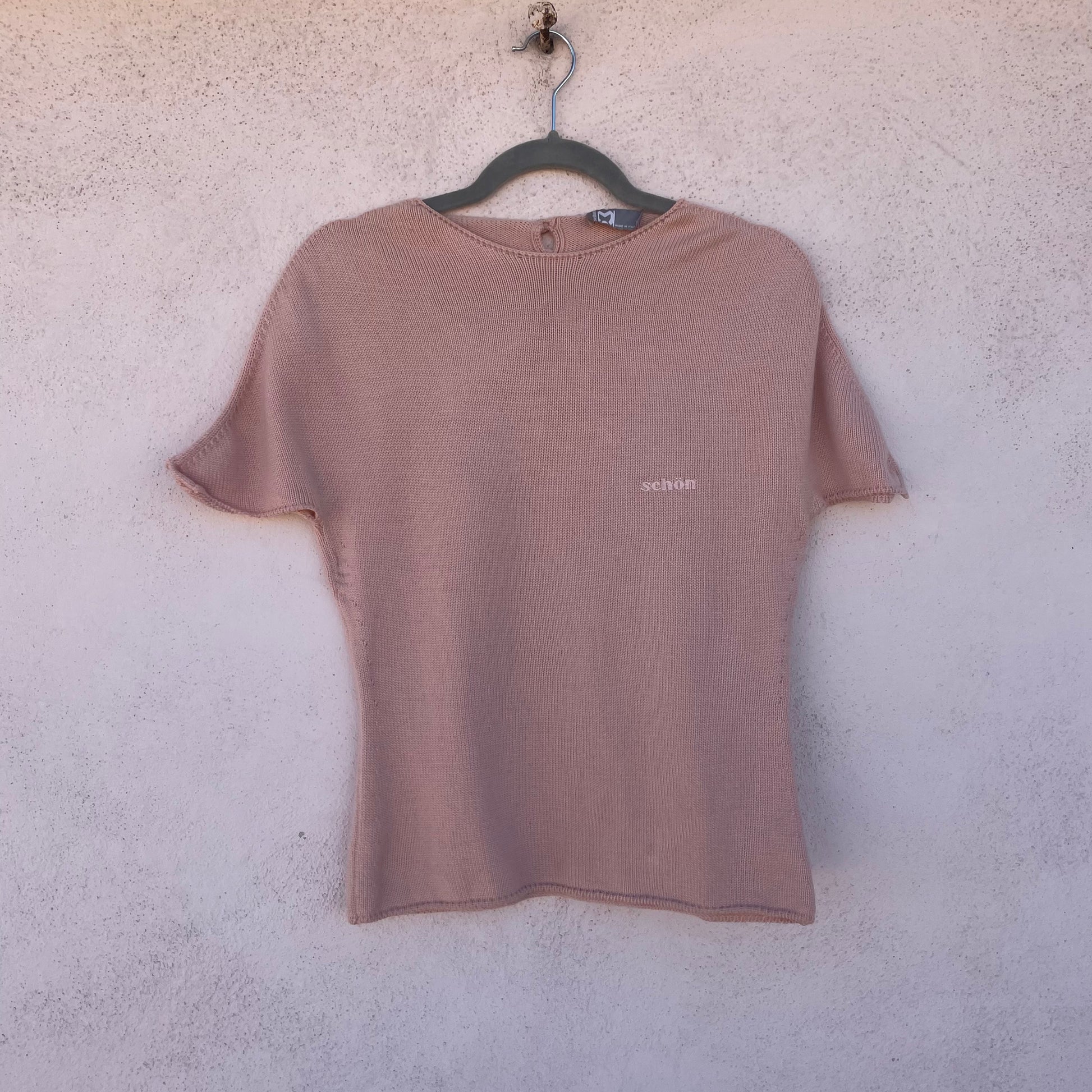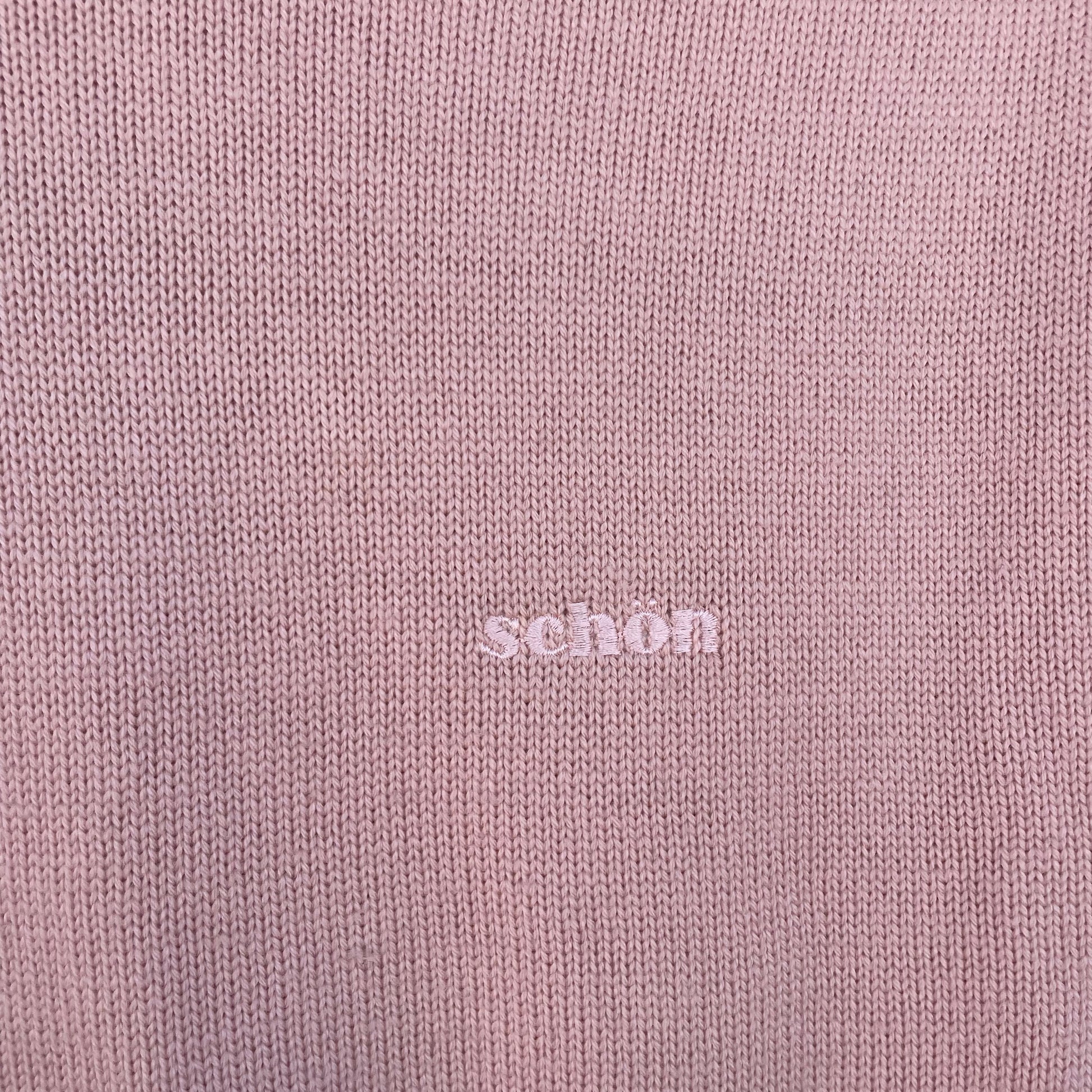 Golfino rosa Mila Schön 100% lana. Mezza manica tipo a kimono (svasata), scollo dritto accollato (tipo barchetta stretto). Bottoncino sul collo. Logo ricamato.