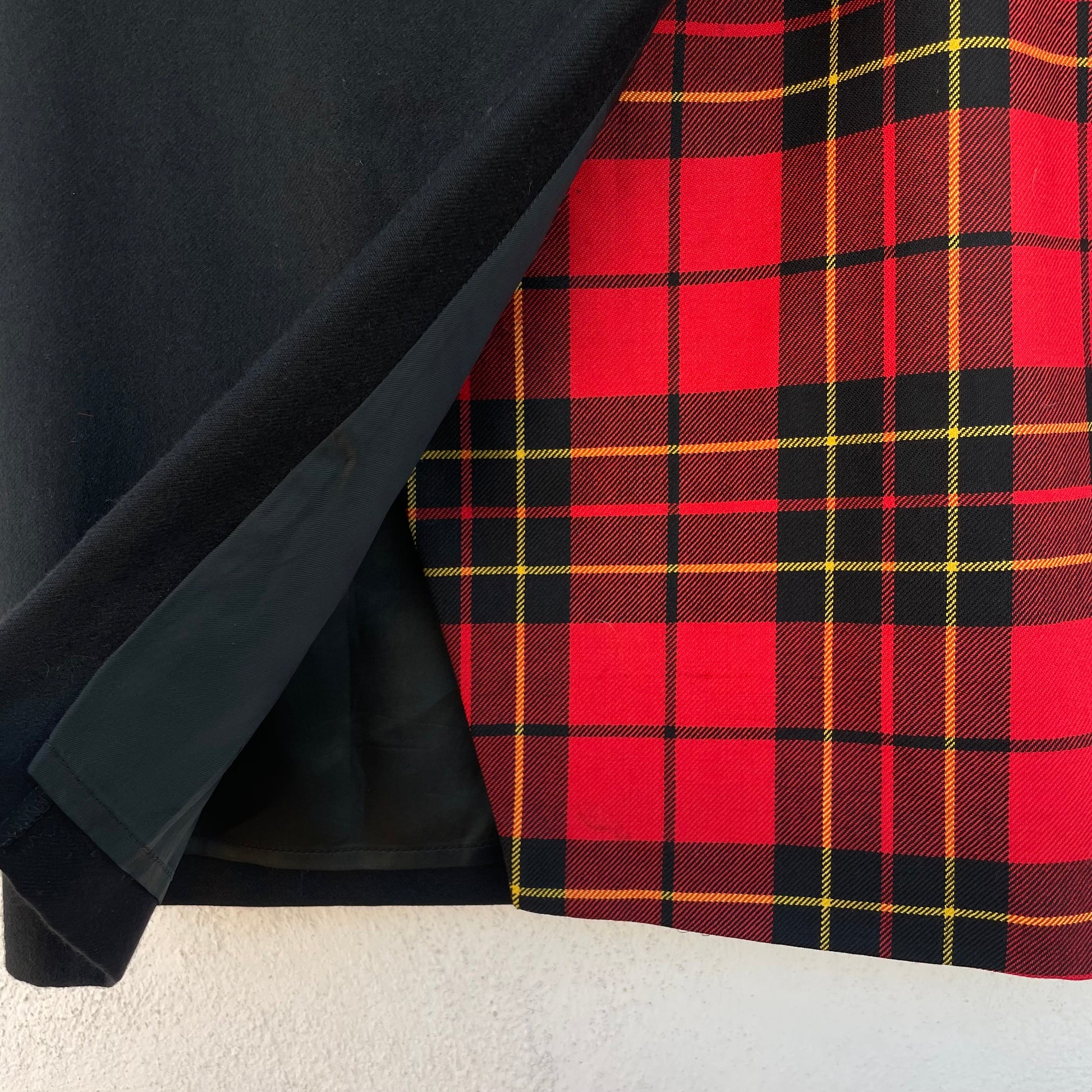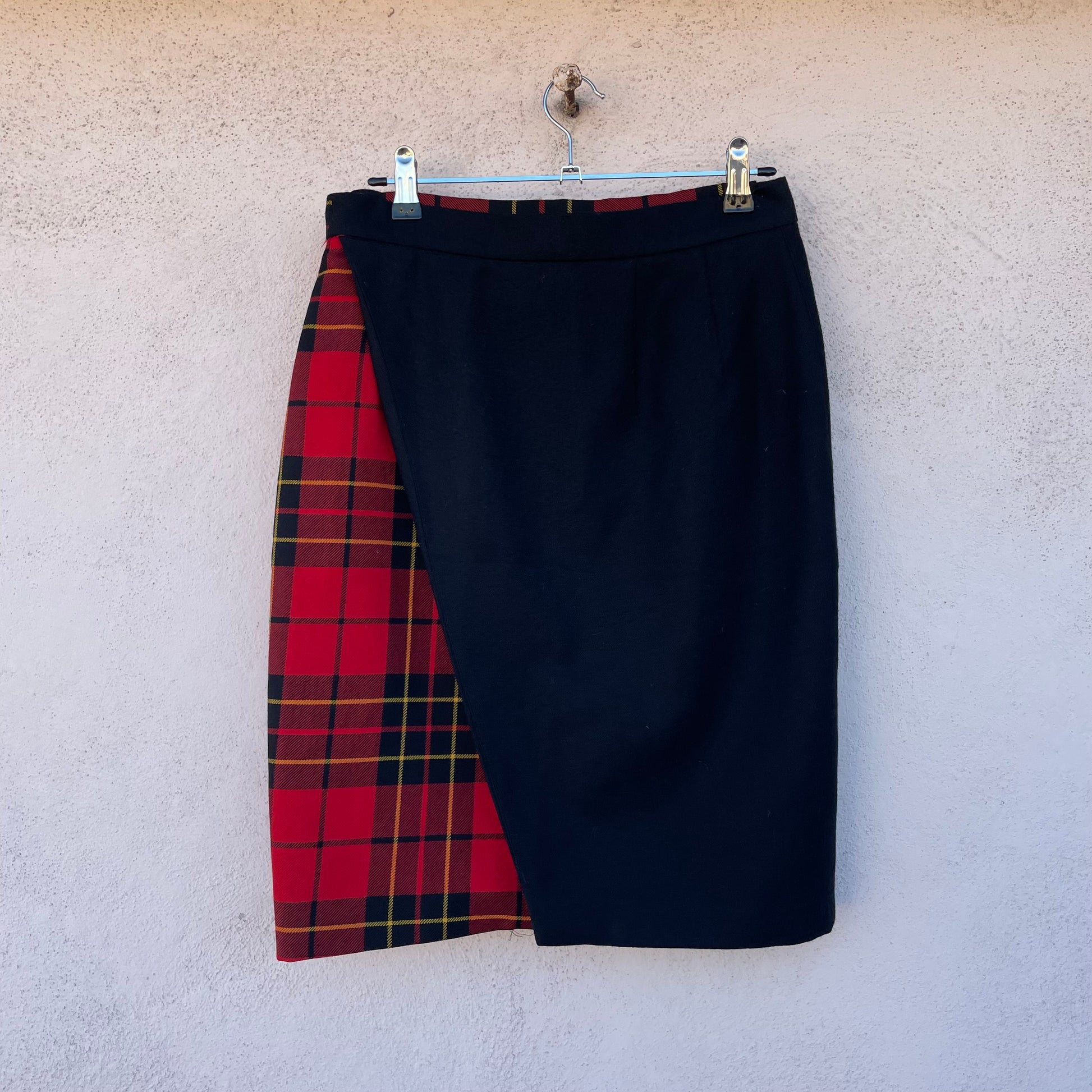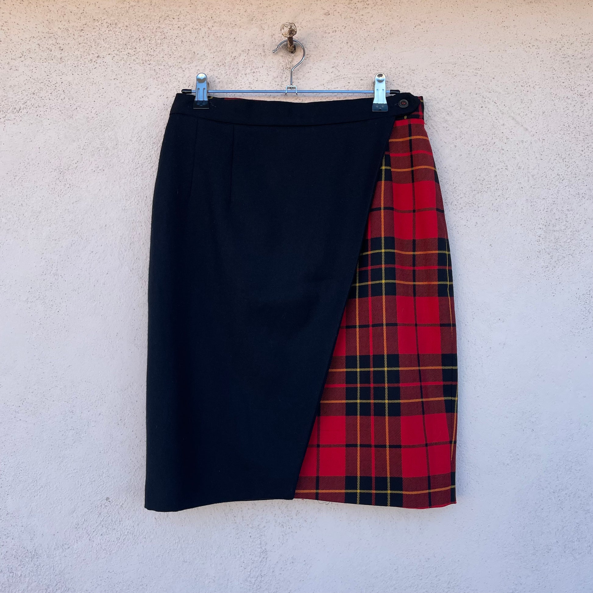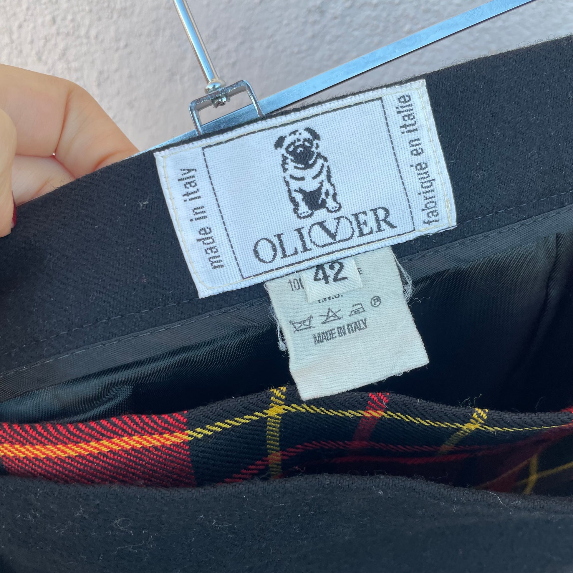 Gonna a portafoglio Oliver Valentino nera e scozzese. 100% lana vergine.