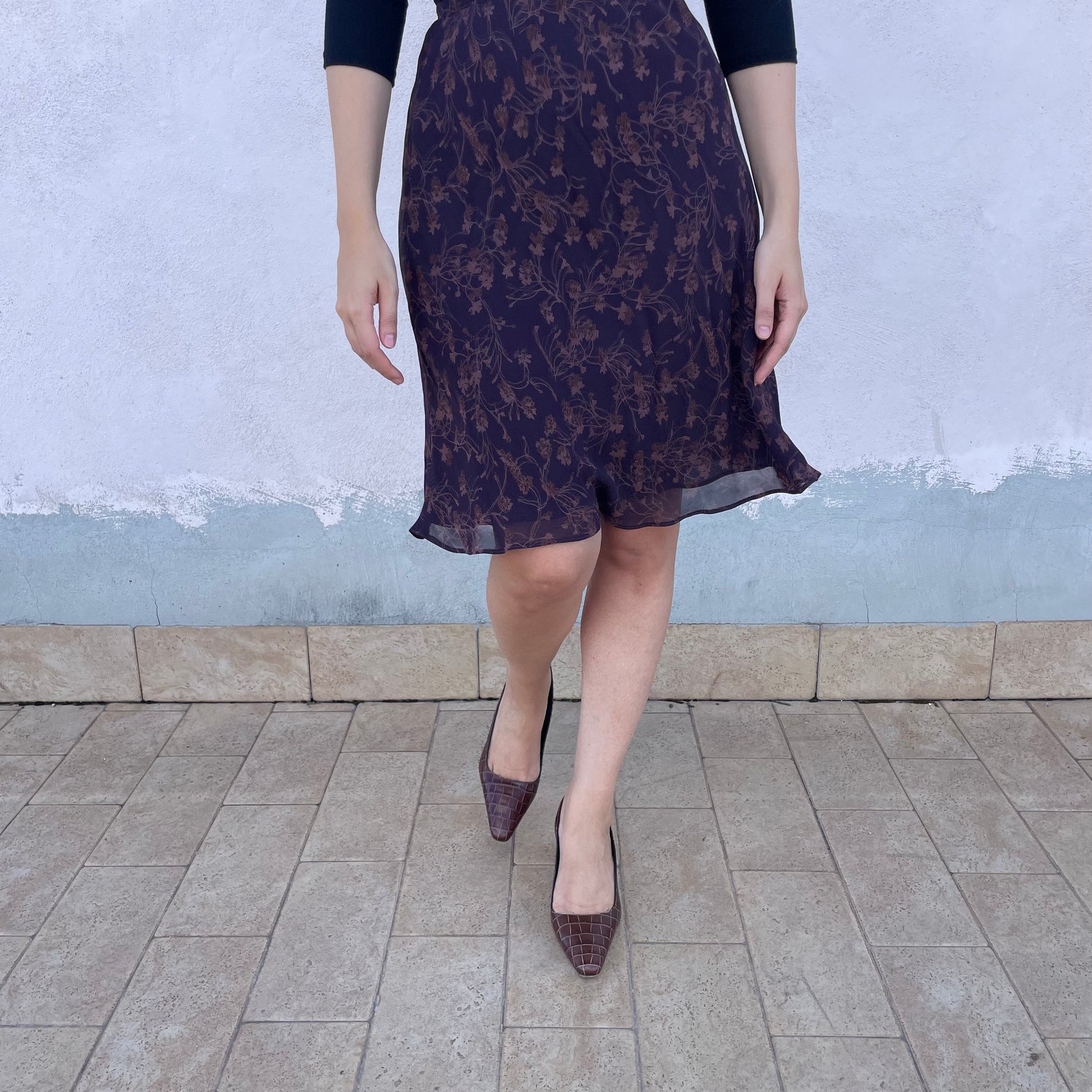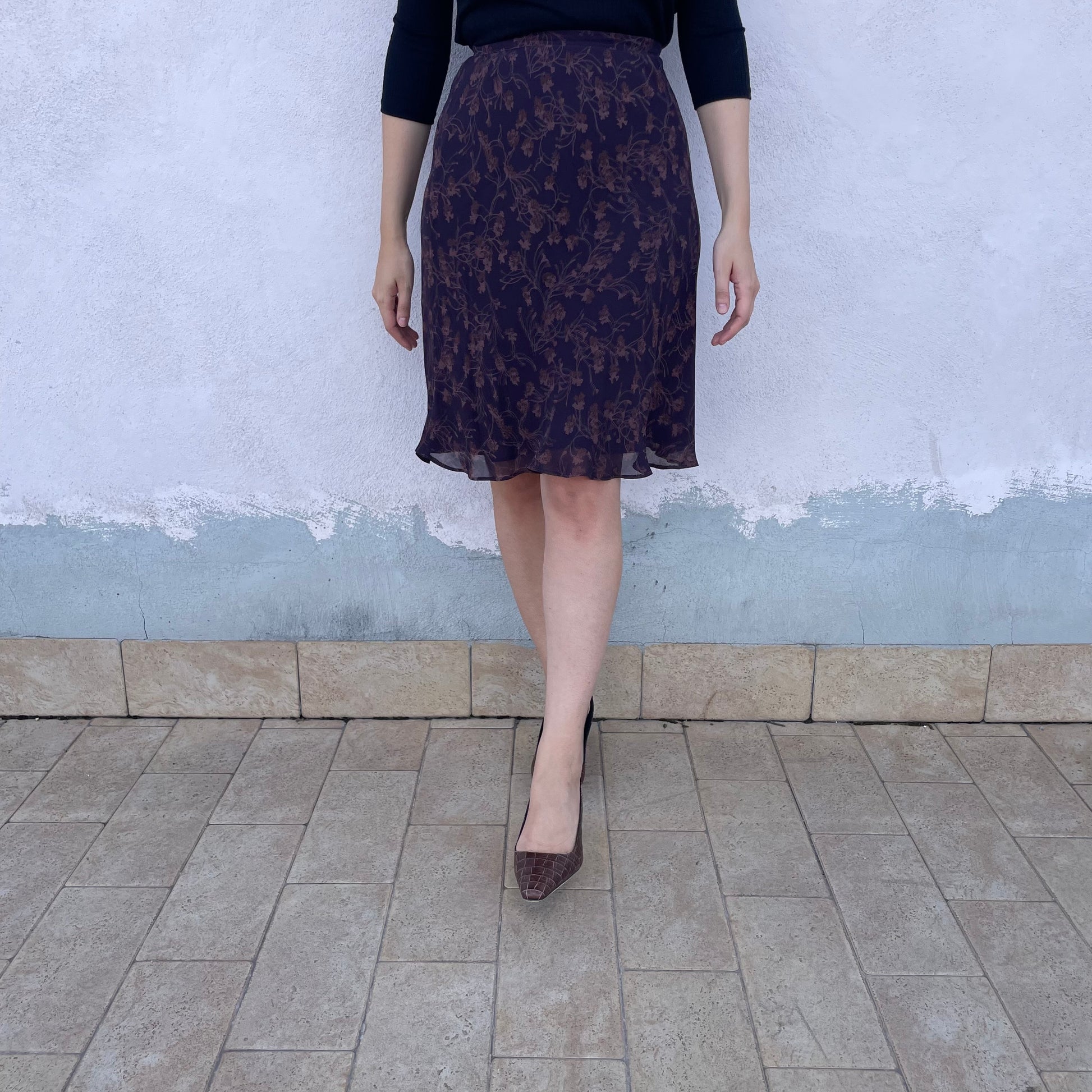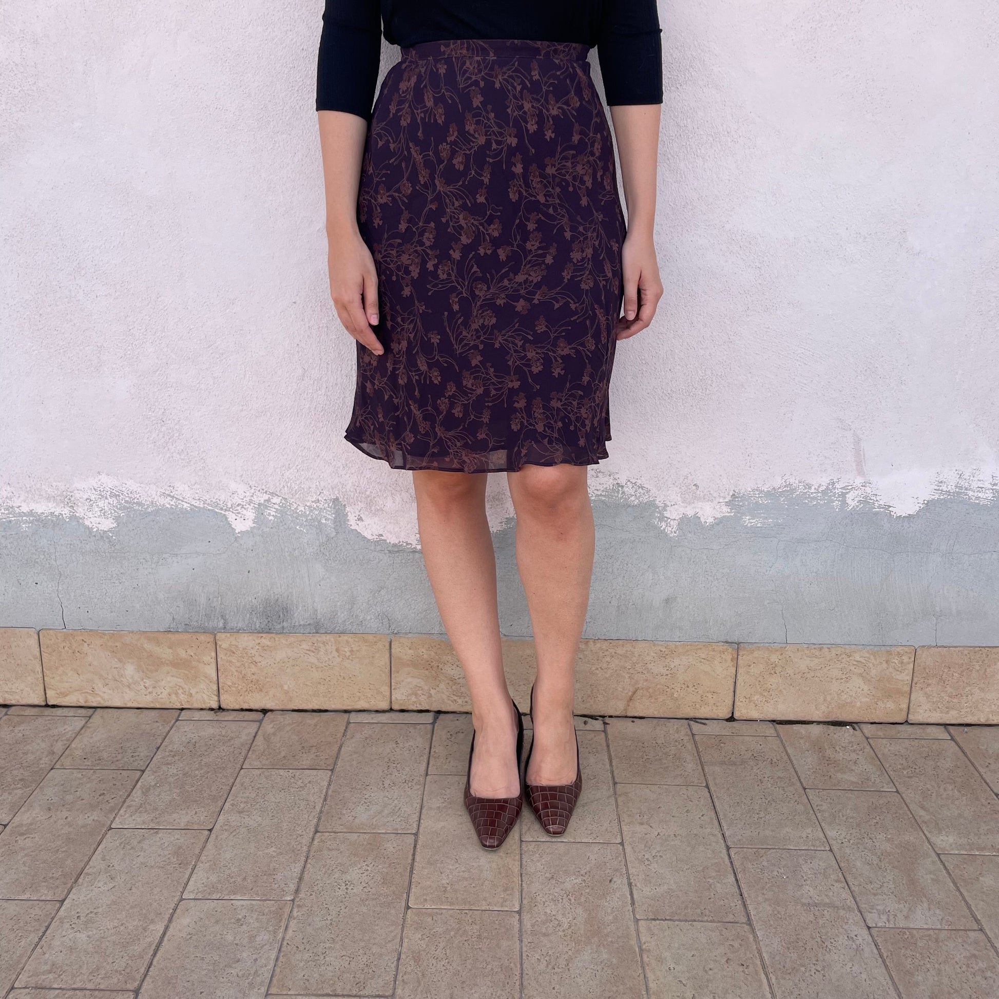 Gonna a vita alta al ginocchio Cacharel. Chiusura con bottoncini laterali. 100% viscosa.