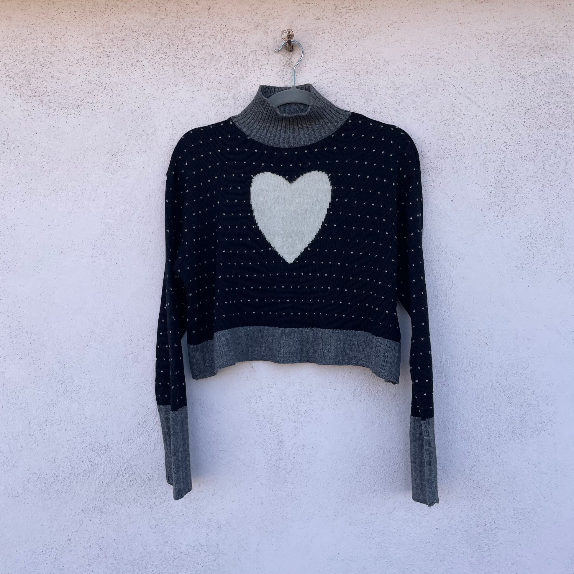 Lupetto cropped Fendissime (Fendi) con cuore panna al centro. 50% lana 50% acrilico.