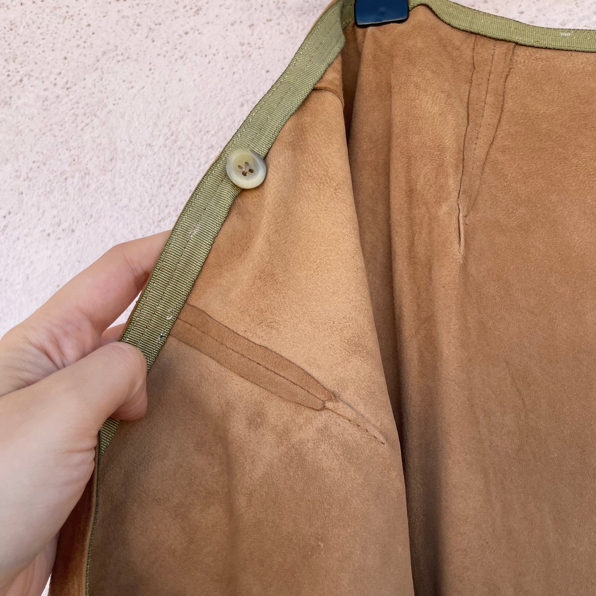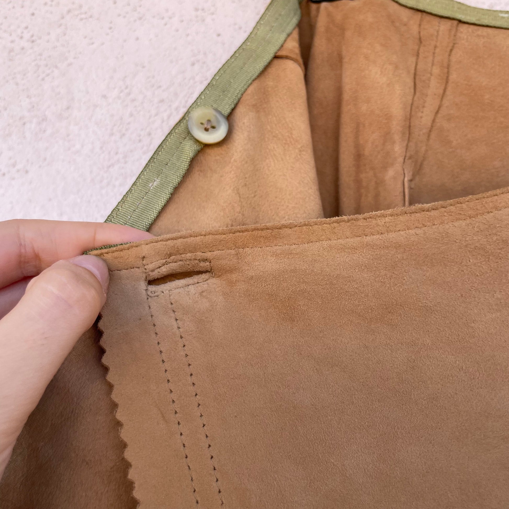 Segnalo dei puntini sul fondo (vedi foto). Piccoli difetti nei capi in suede sono normali essendo un materiale particolarmente delicato.