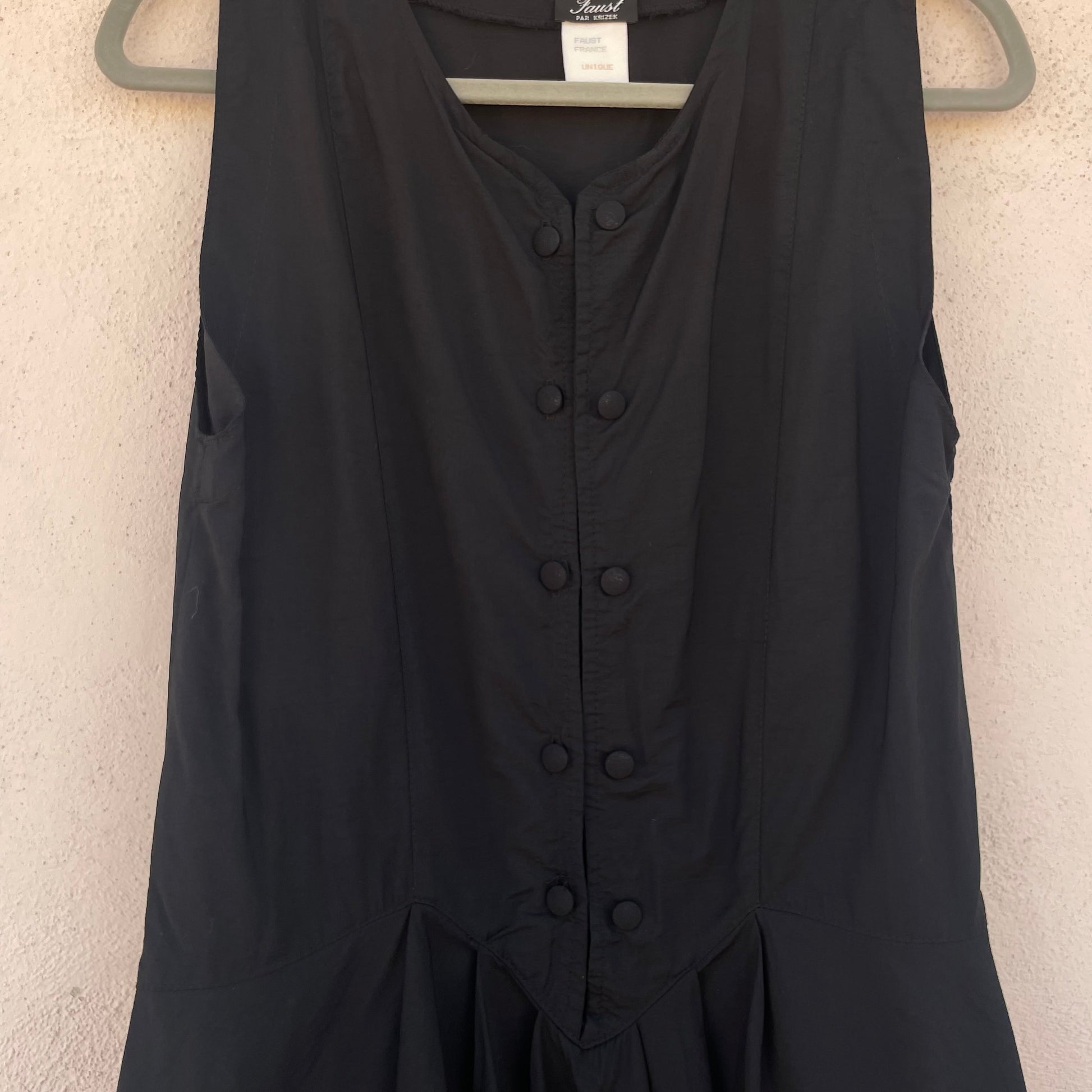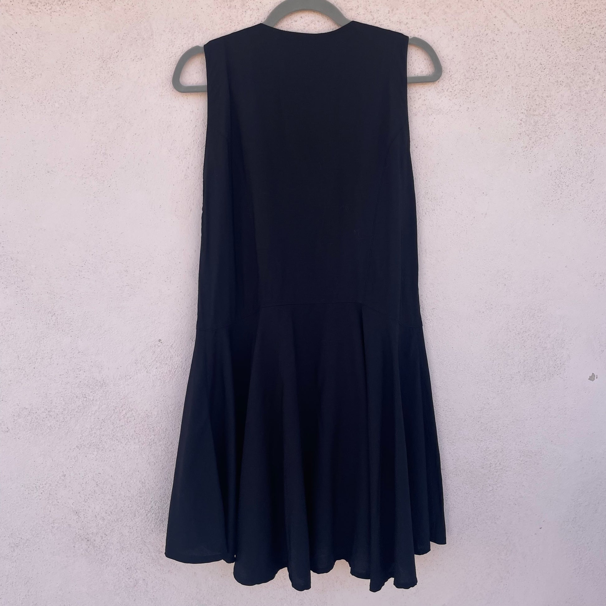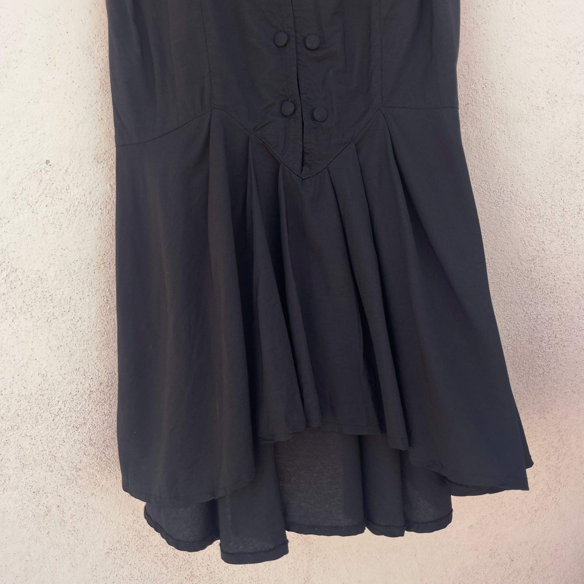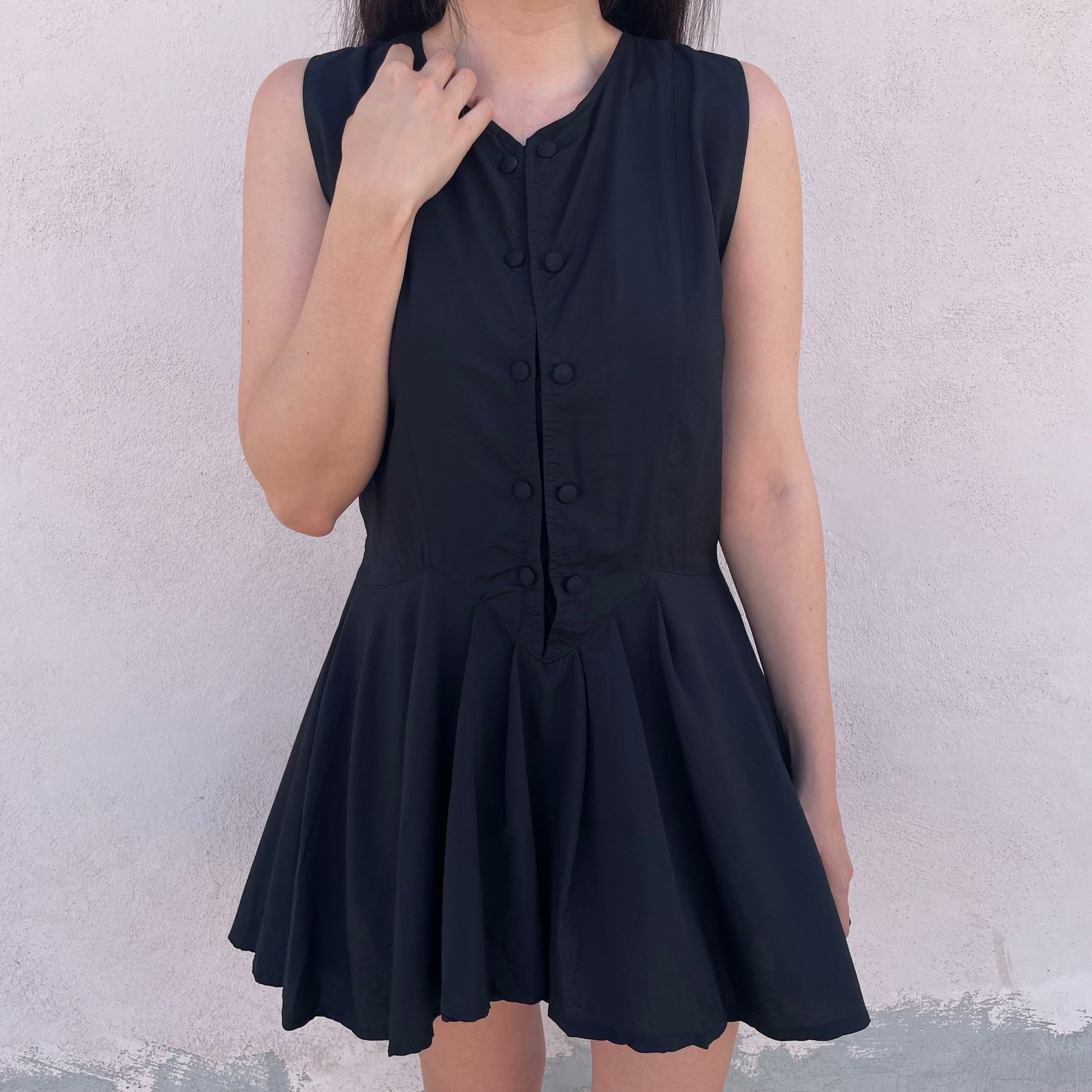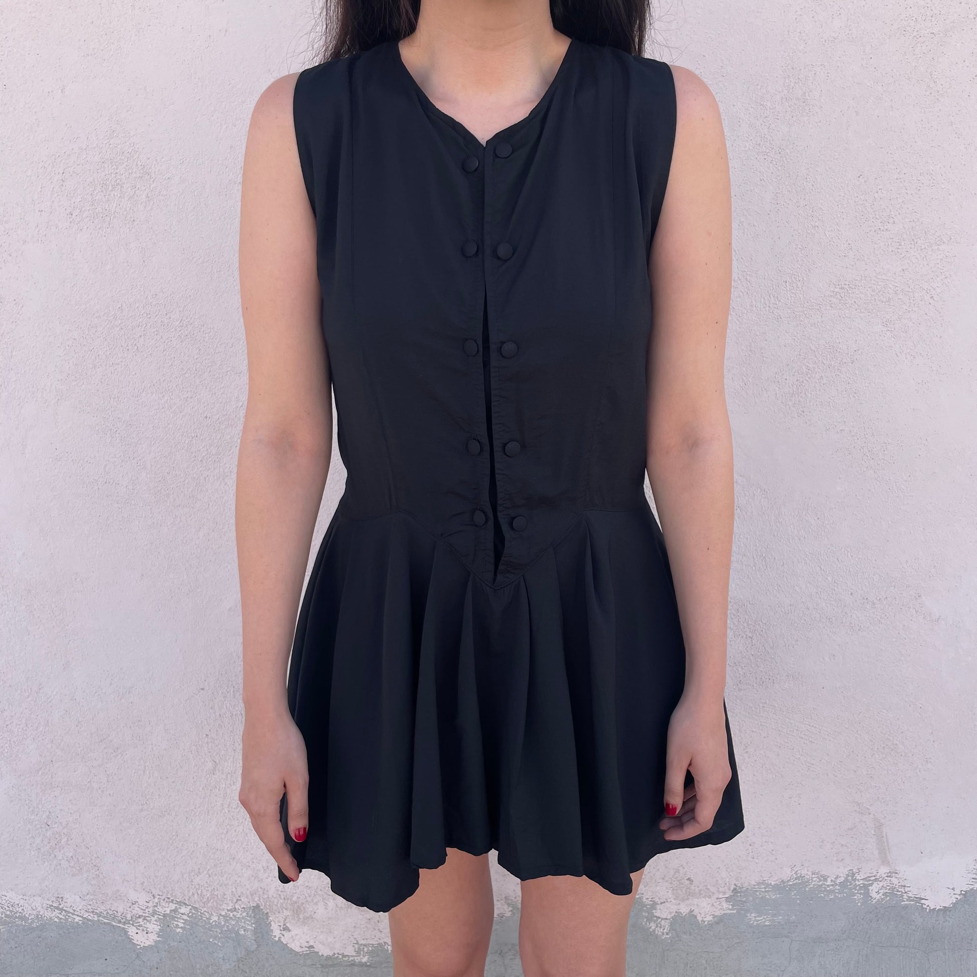 Miniabito nero 52% lino 48% viscosa. Parte alta con bottoncini, gonna a pieghe.