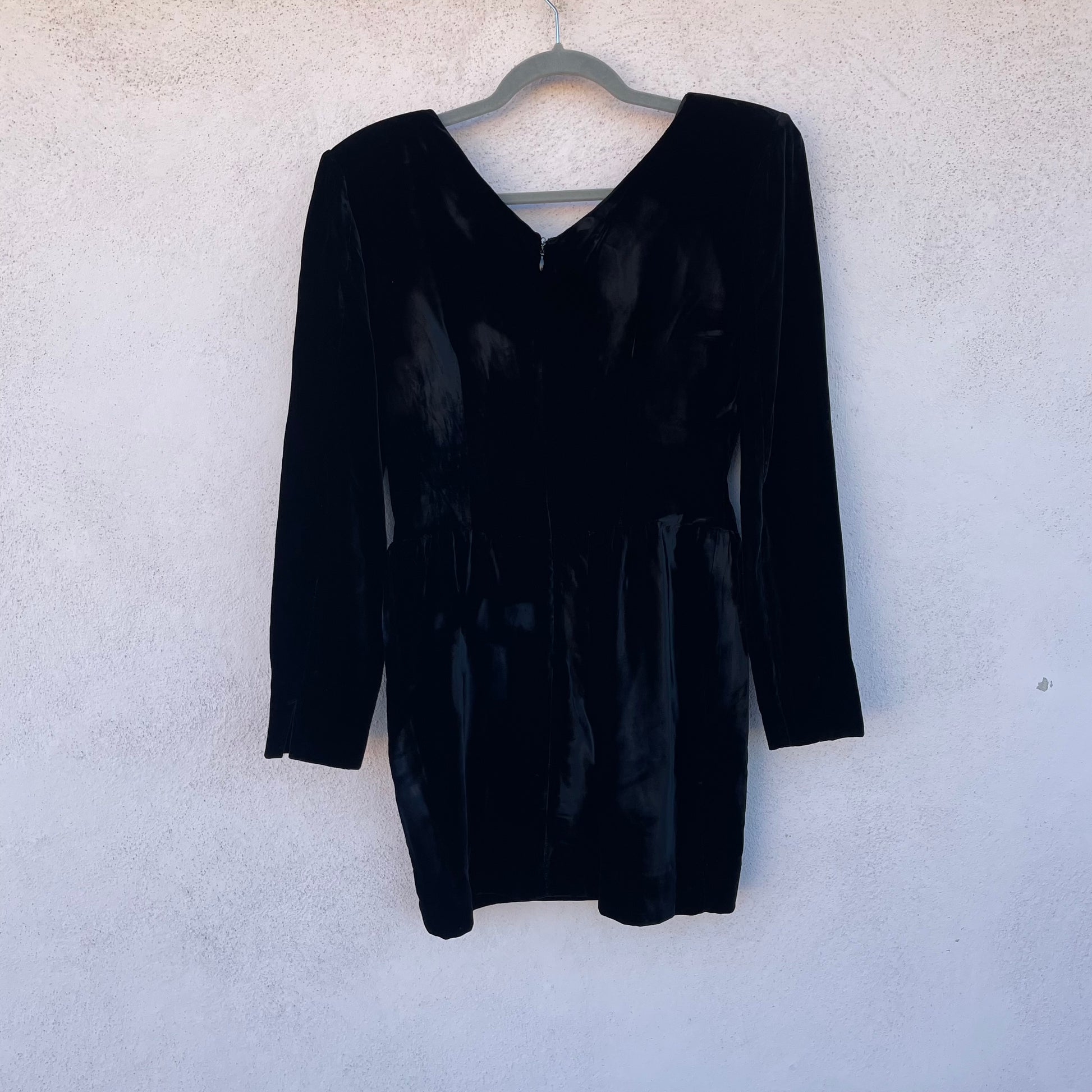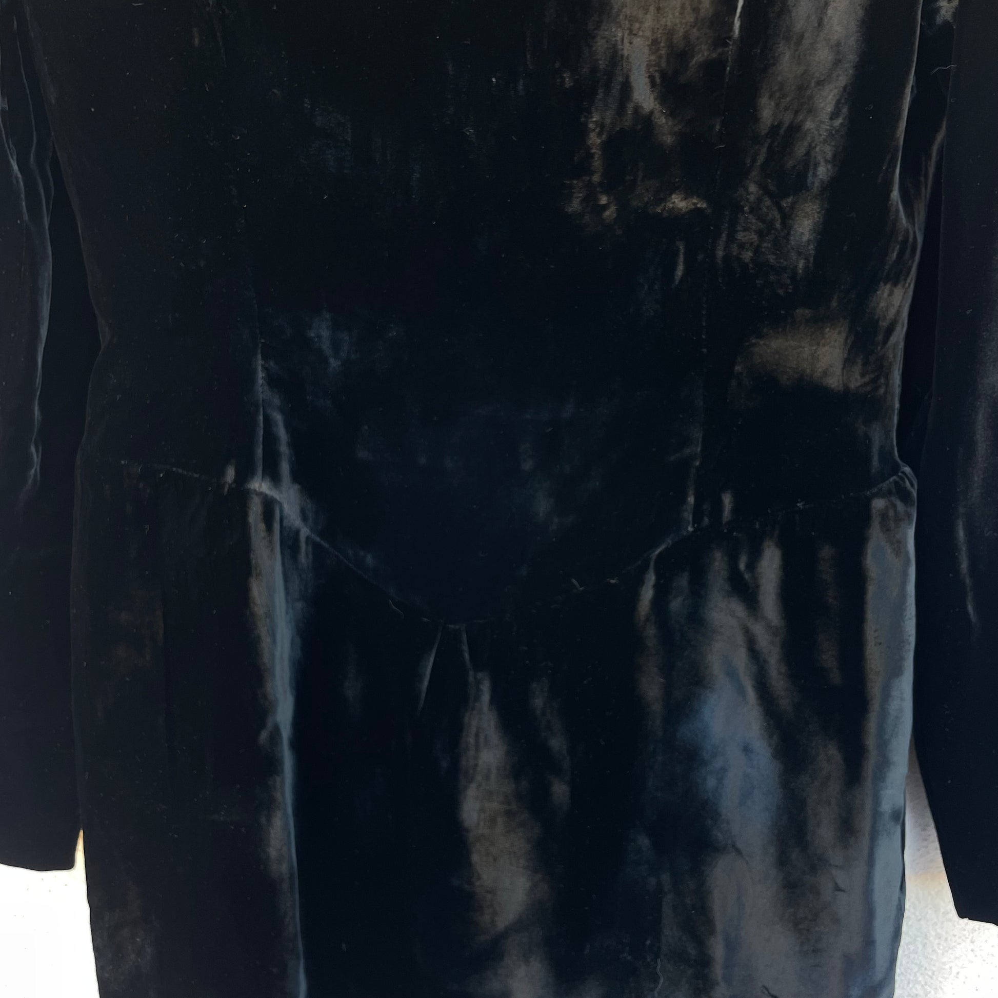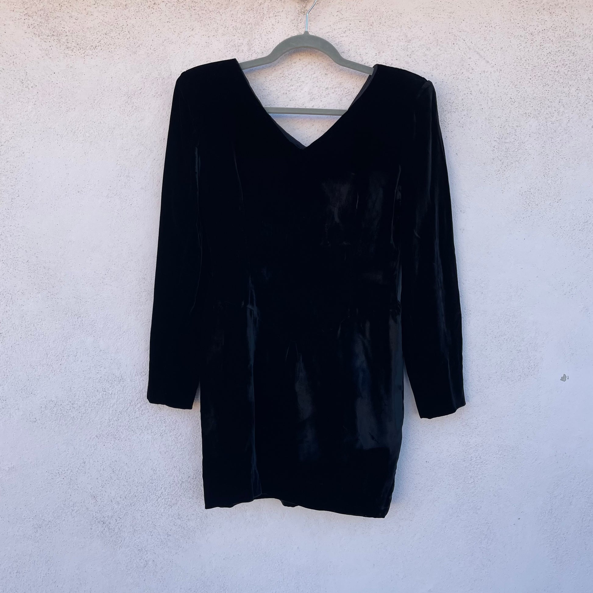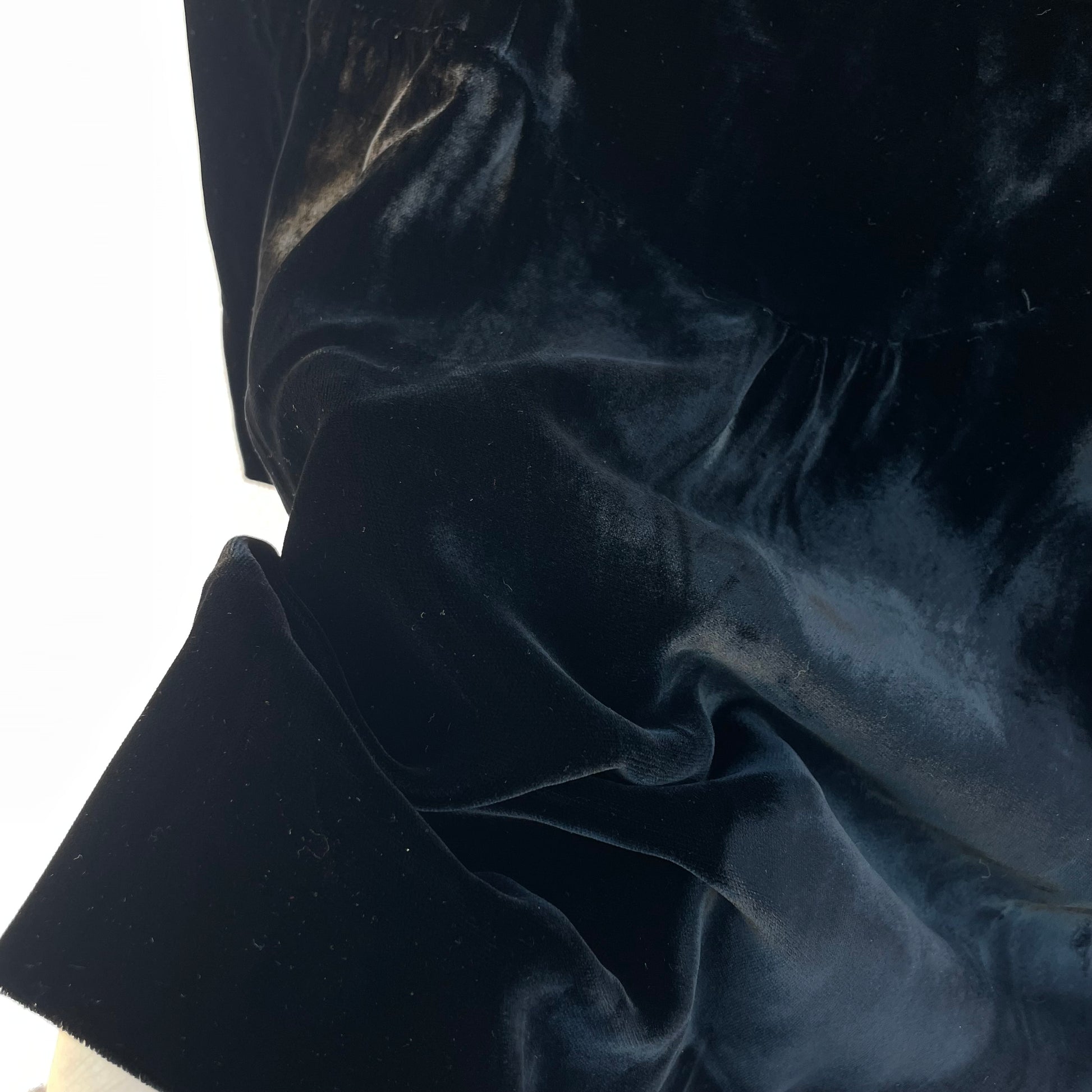 Miniabito Pianoforte by Max Mara in velluto nero liscio. Corpetto a “V”. Manca il merceologico ma suppongo sia un velluto di seta.