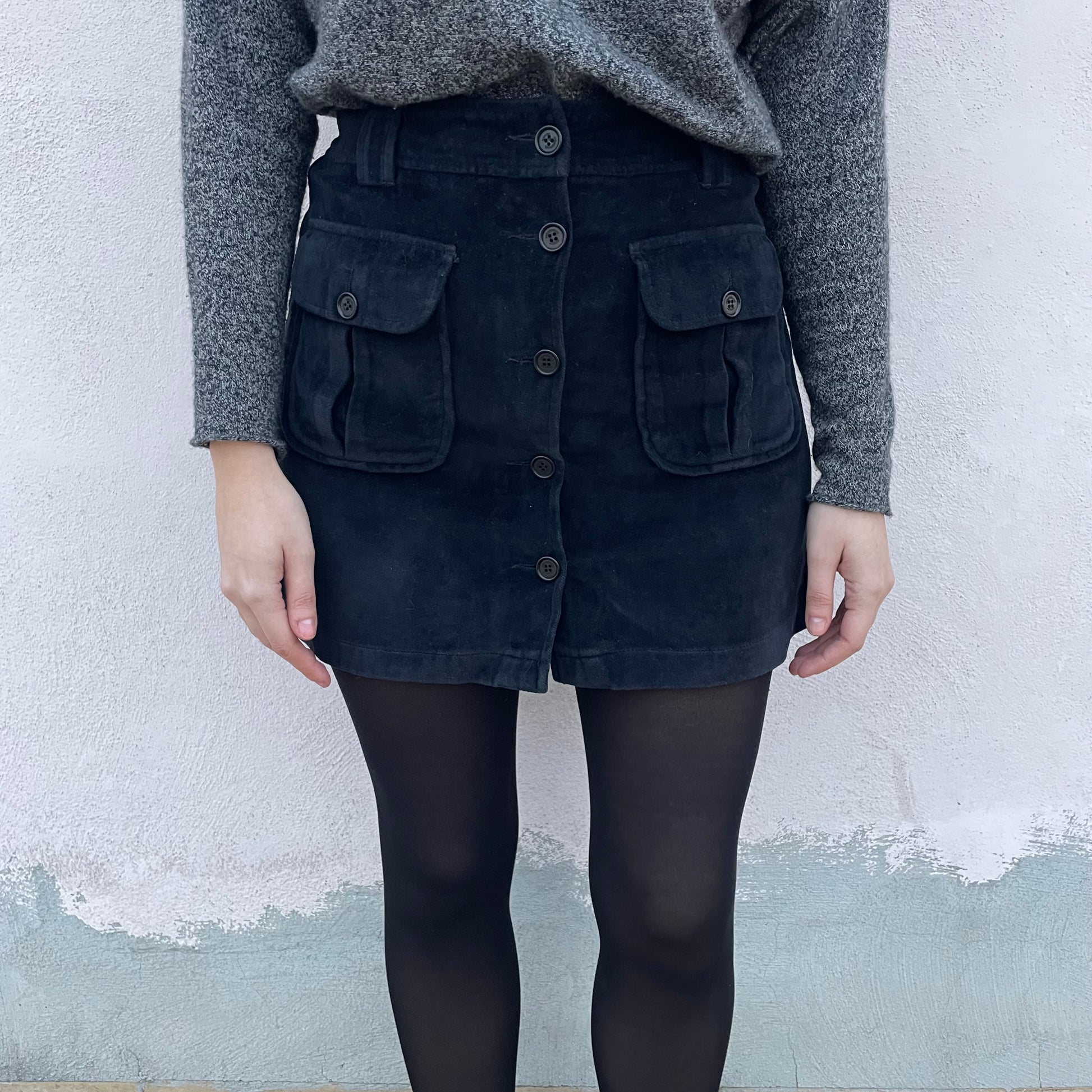Minigonna in velluto nero Moschino. 100% cotone. Bottoni logati.