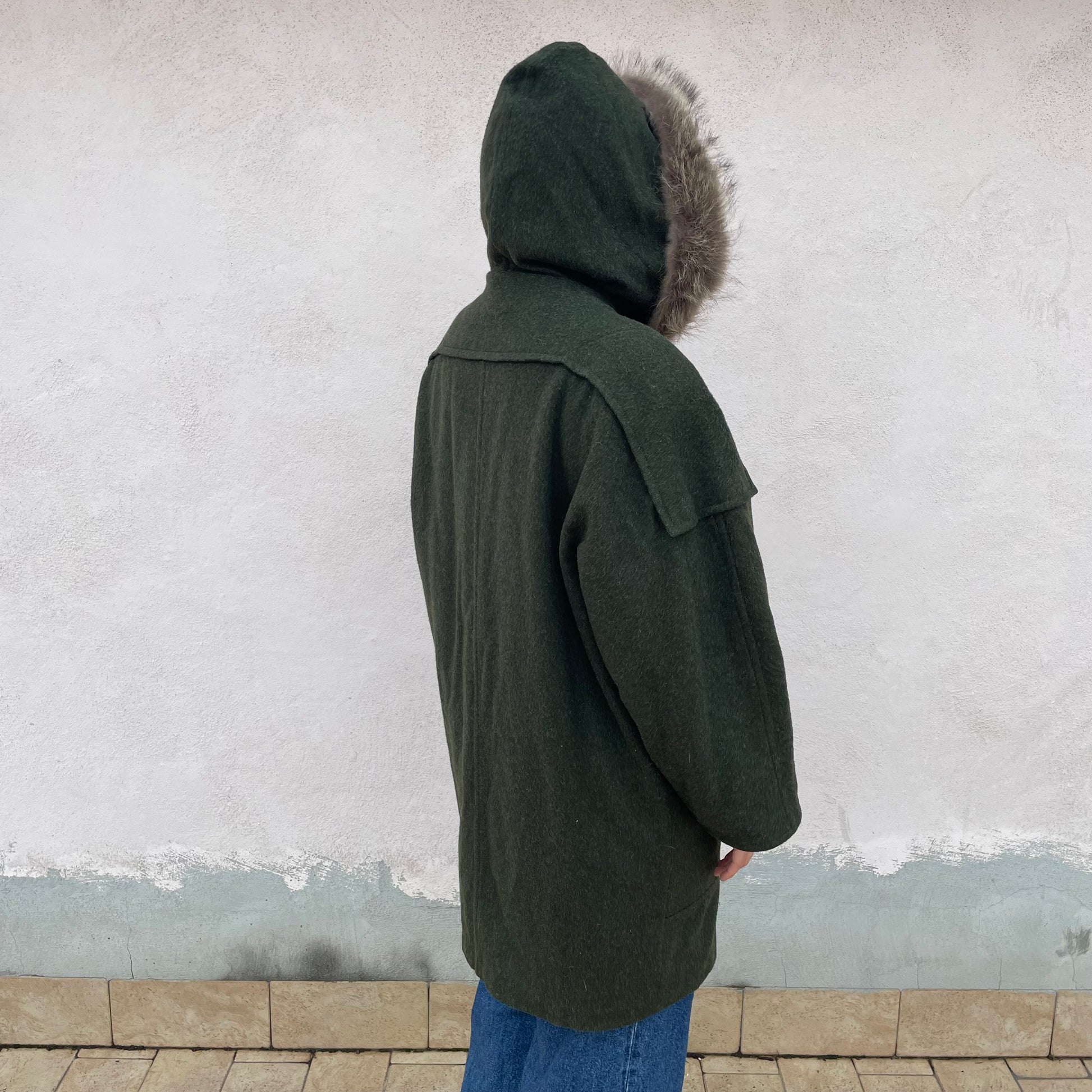 Montgomery Max Mara 100% lana vergine. Trapuntato, con cappuccio bordato di pelliccia. Chiusura con alamari e dettagli in pelle.