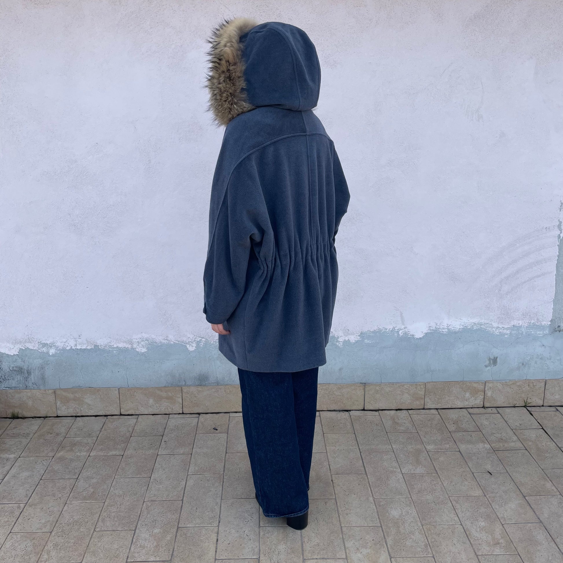 Montgomery Max Mara 80% Lana 20% cashmere. Cappuccio bordato in pelliccia. Coulisse in pelle in vita.