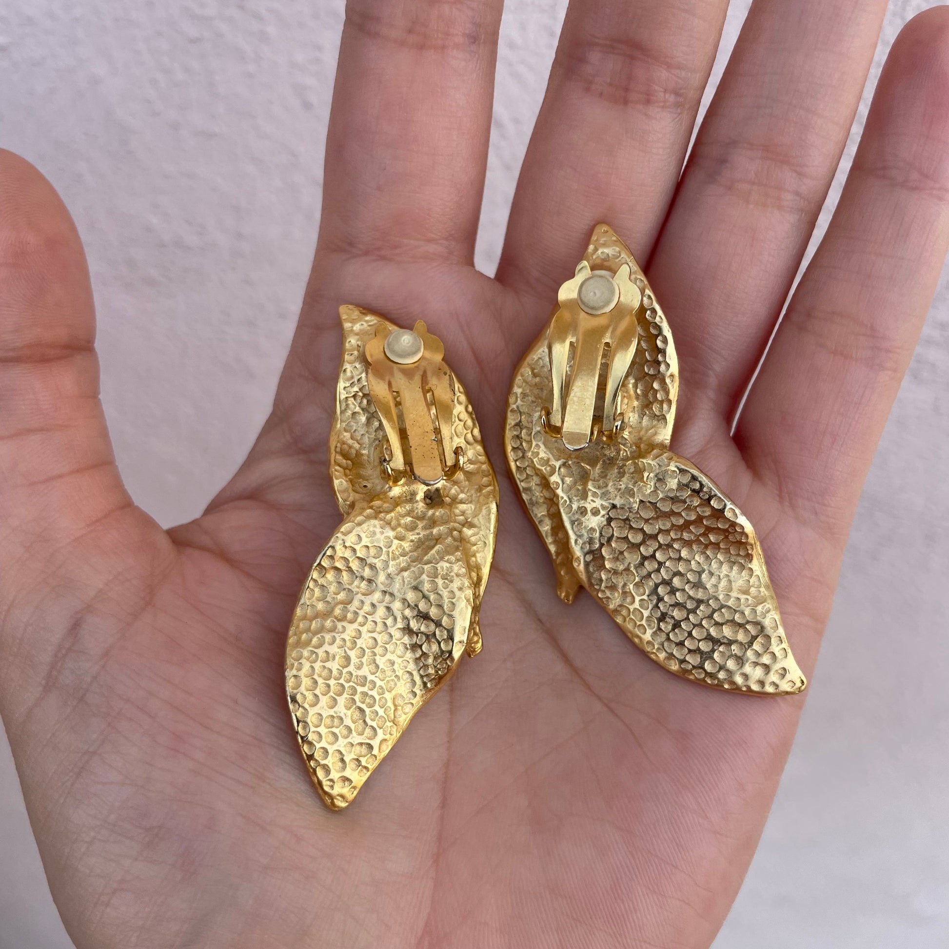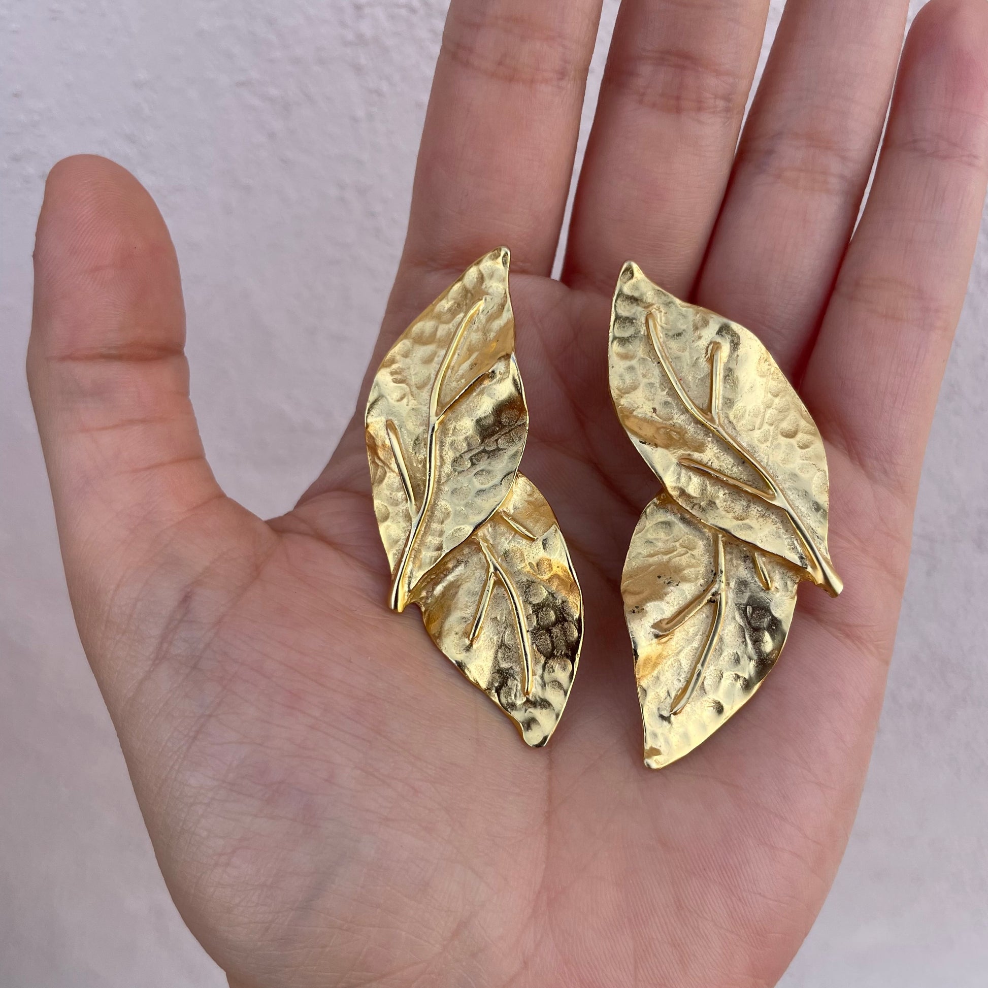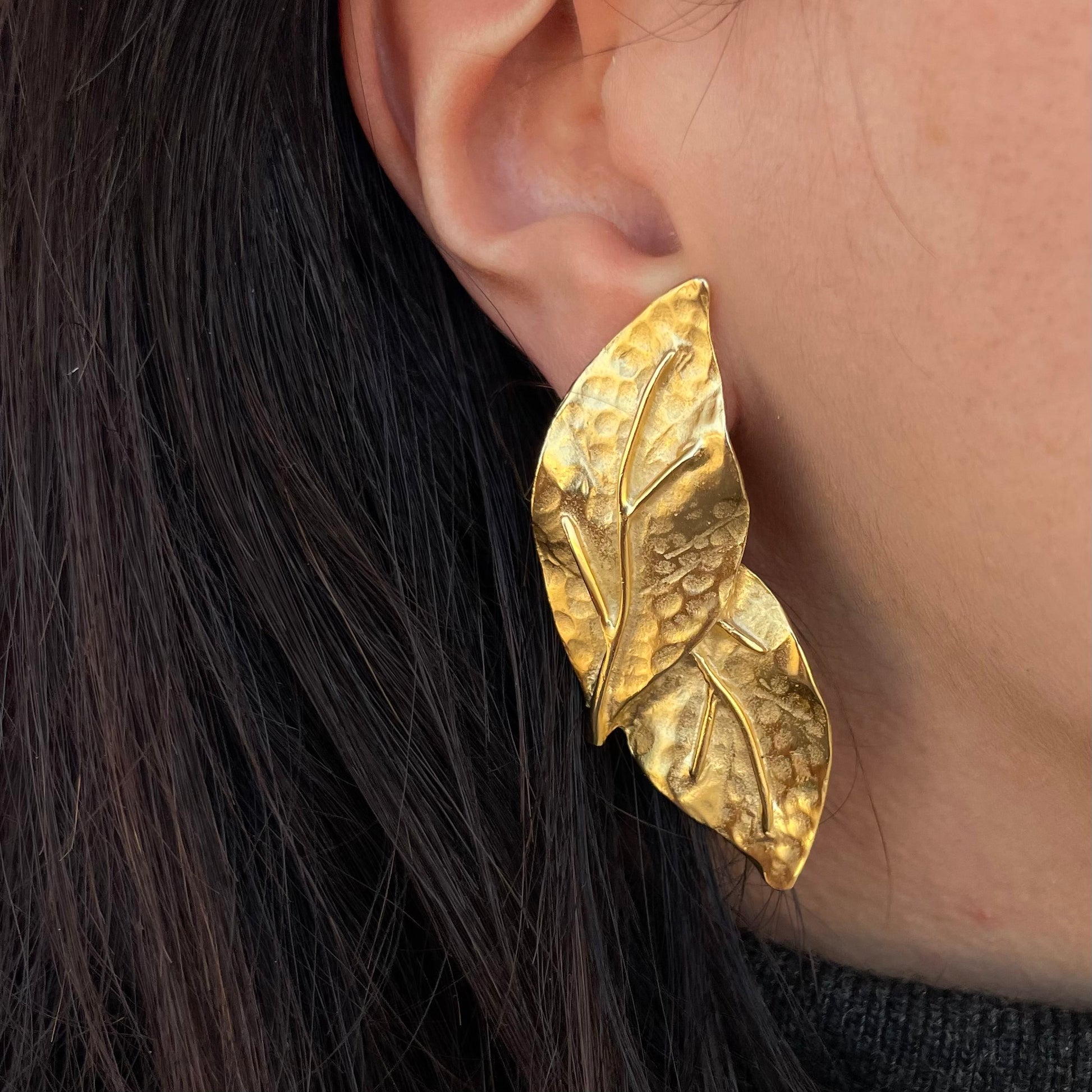 Orecchini goldtone a forma di foglie. Chiusura a clip.