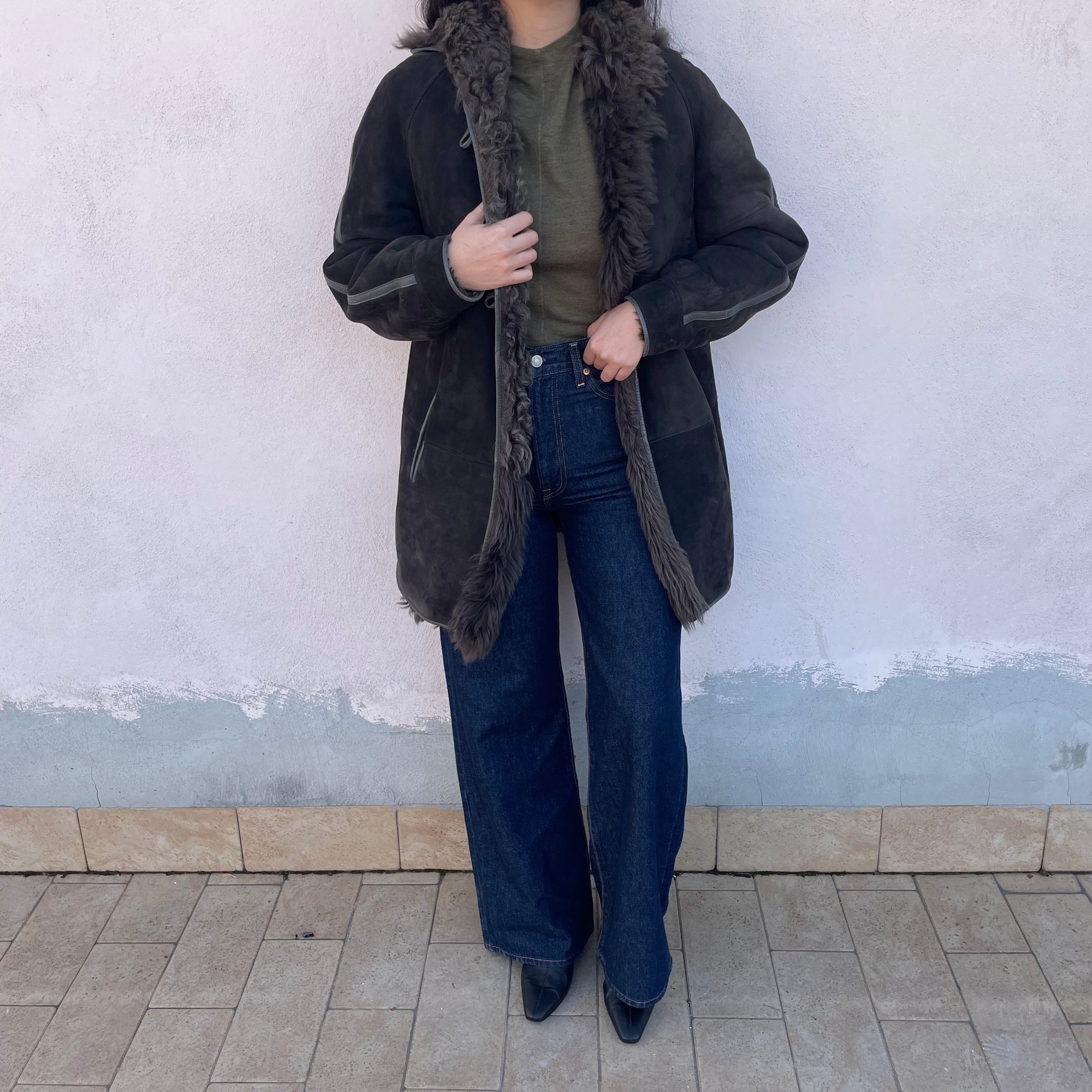 Original Shearling Grigio canna di fucile con cappuccio amovibile.