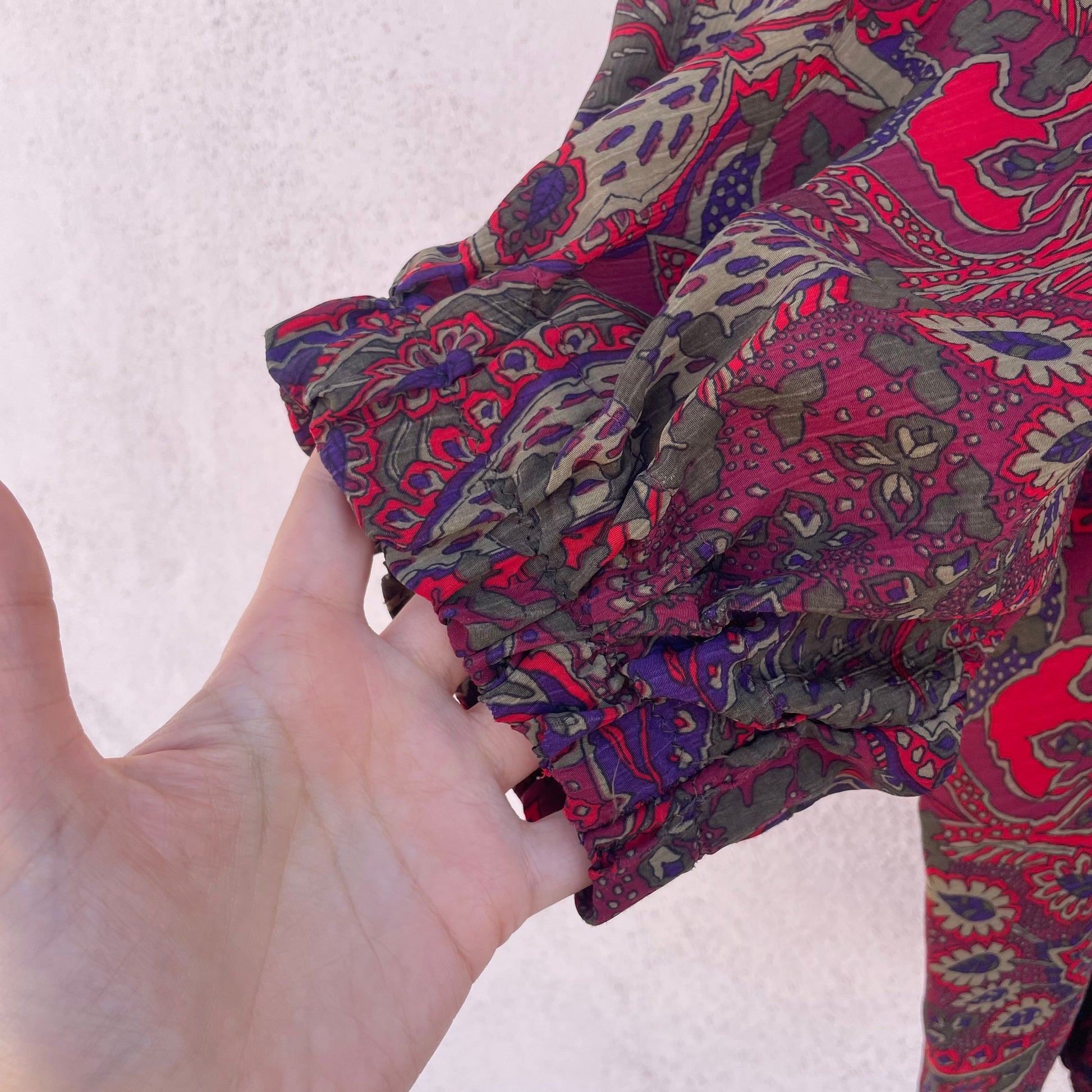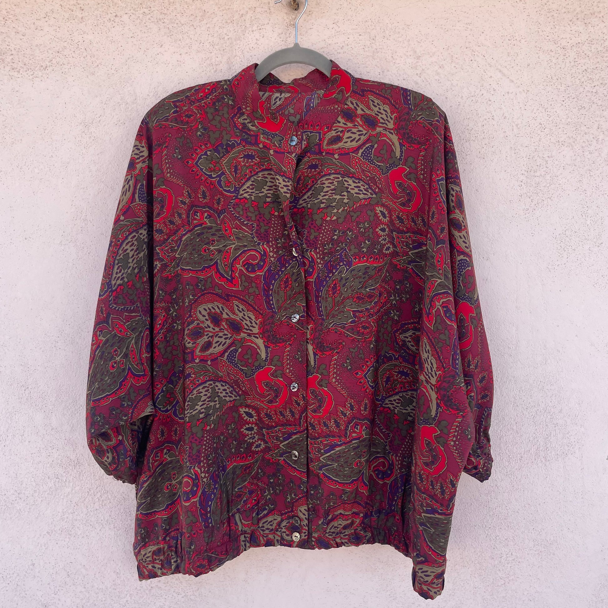 Overshirt/bomberino bordeaux fantasia paisley. Manca il merceologico ma suppongo sia un misto viscosa.
