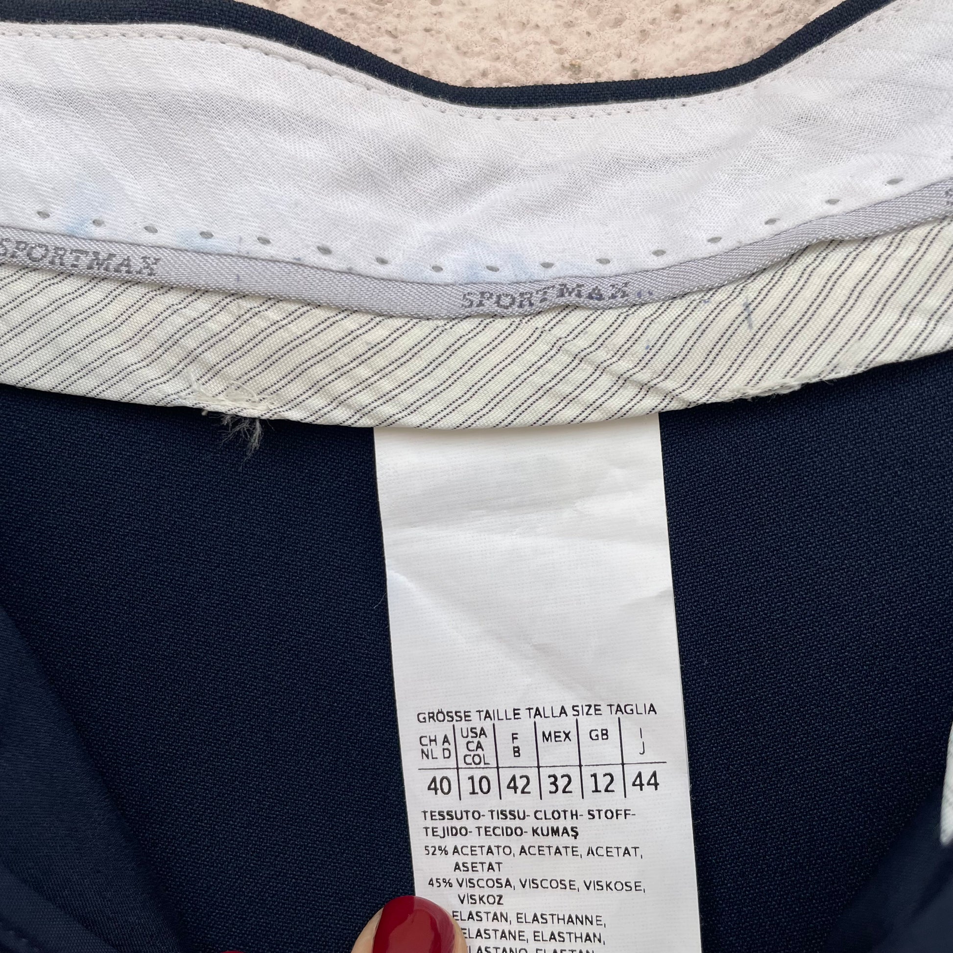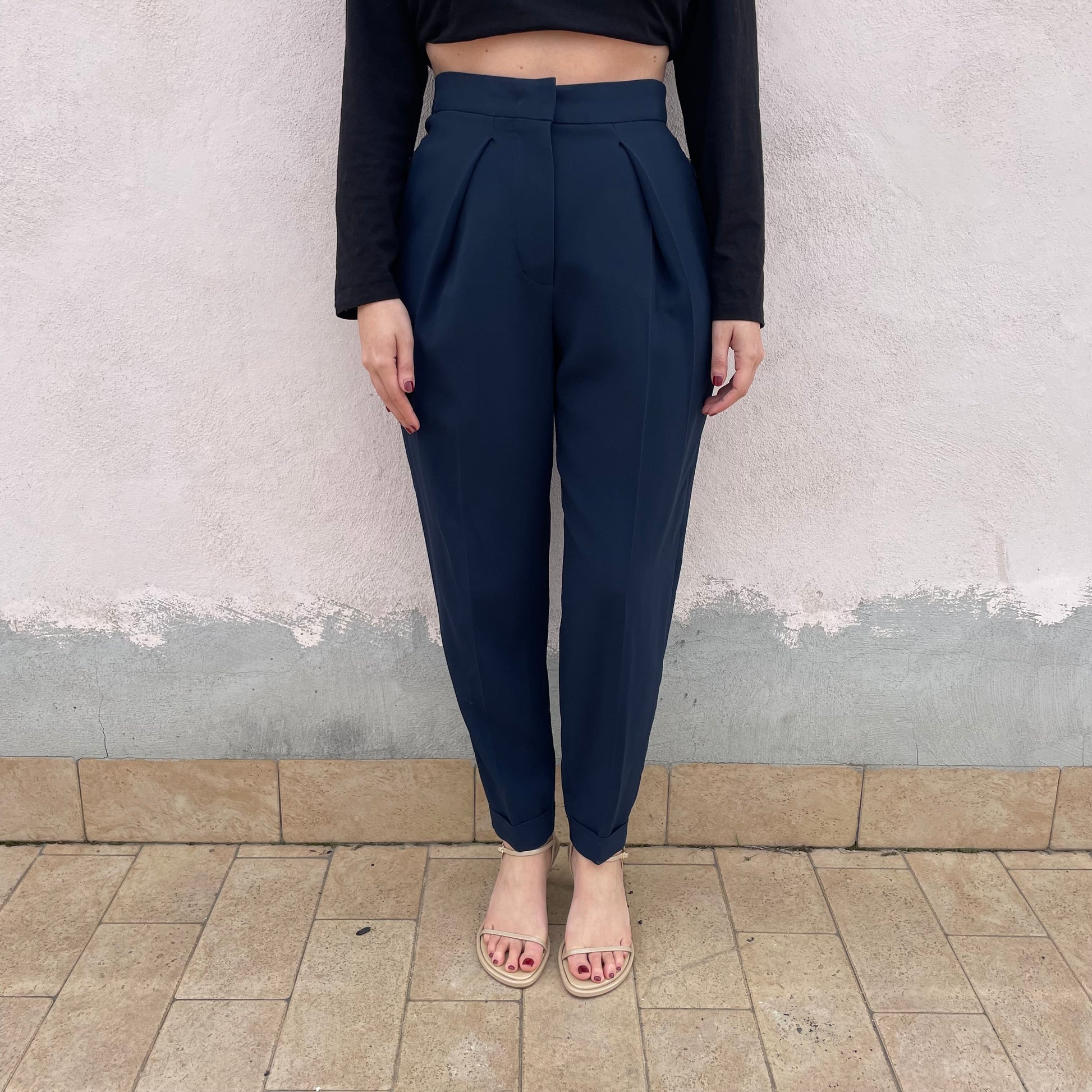 Pantaloni petrolio Sportmax. Pinces frontali, tasche a filetto. 62% acetato 45% viscosa 3% elastan (tessuto morbido e scivolato).