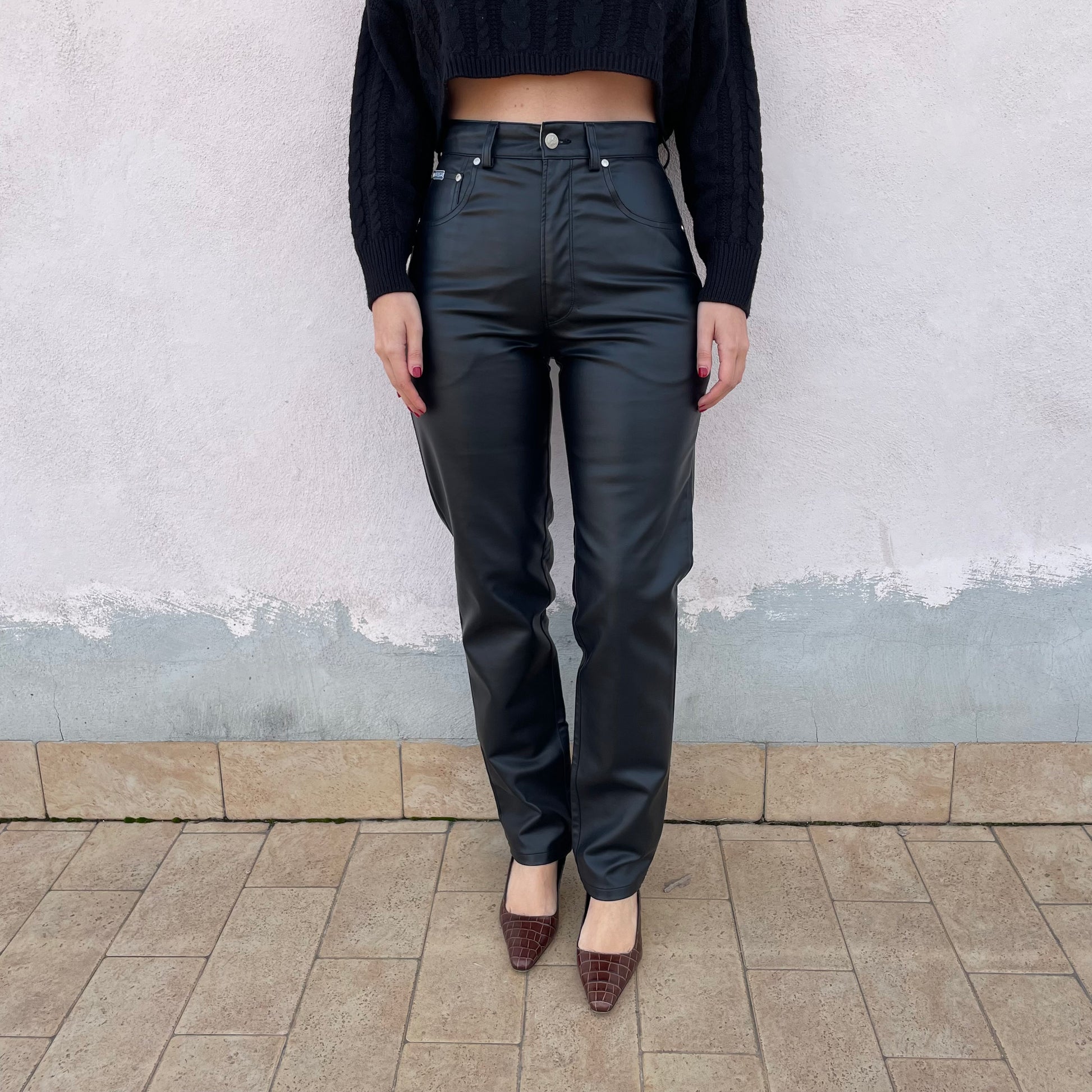 Pantaloni Fendissime (Fendi) a vita alta. 66% pvc (effetto pelle) 34% cotone.