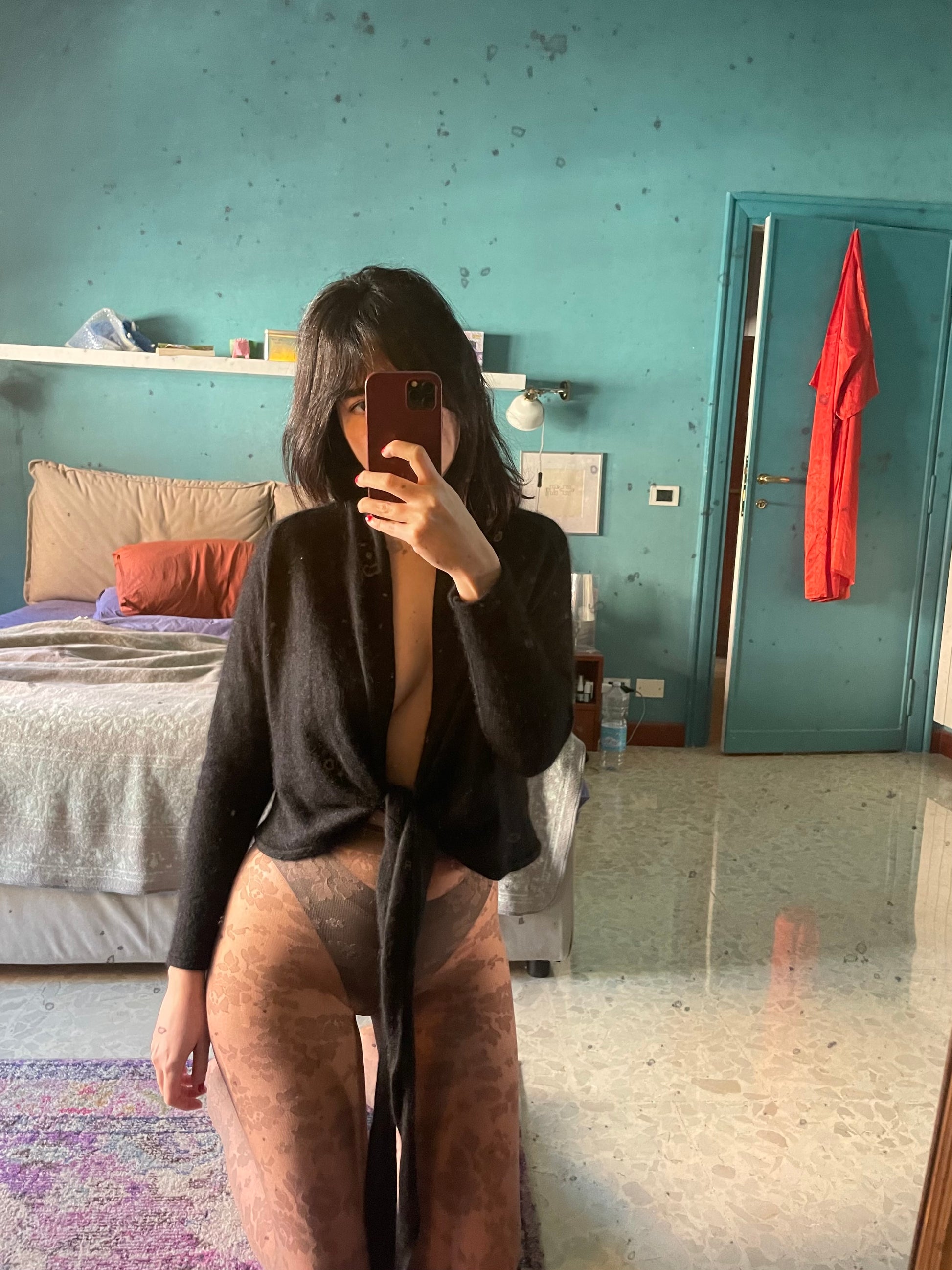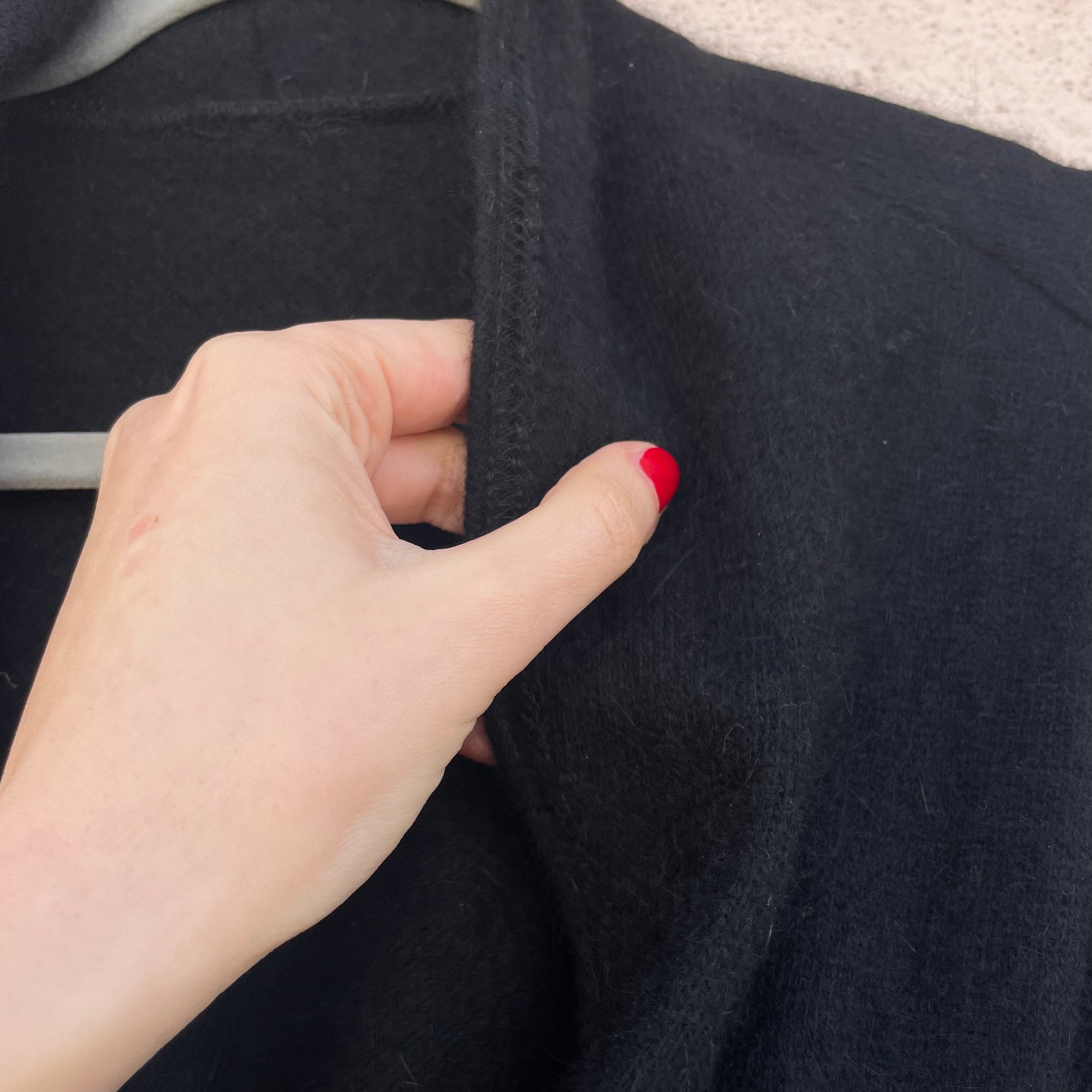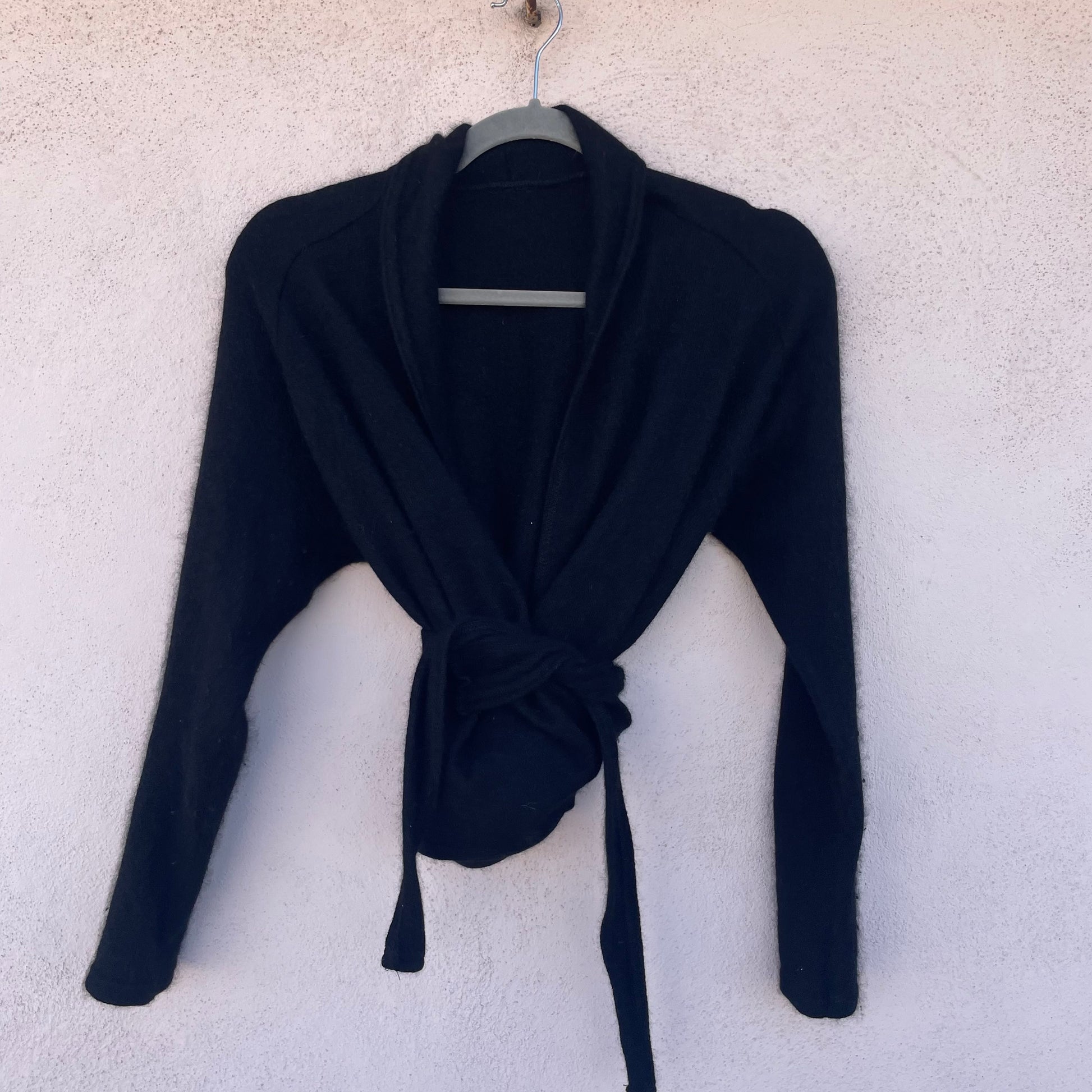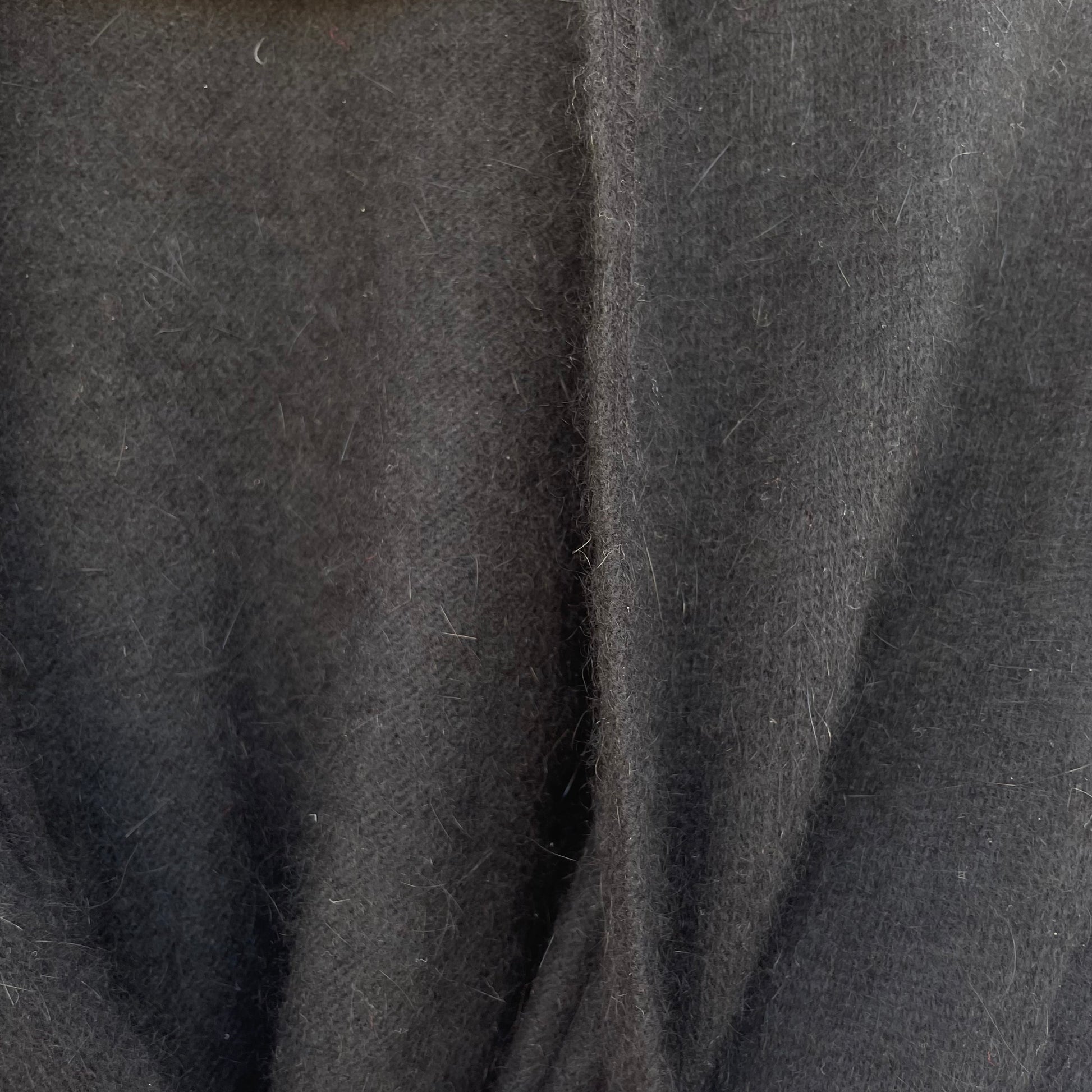 Scaldacuore nero morbidissimo in angora (manca merceologico). Si può indossare incrociato o annodato al centro.