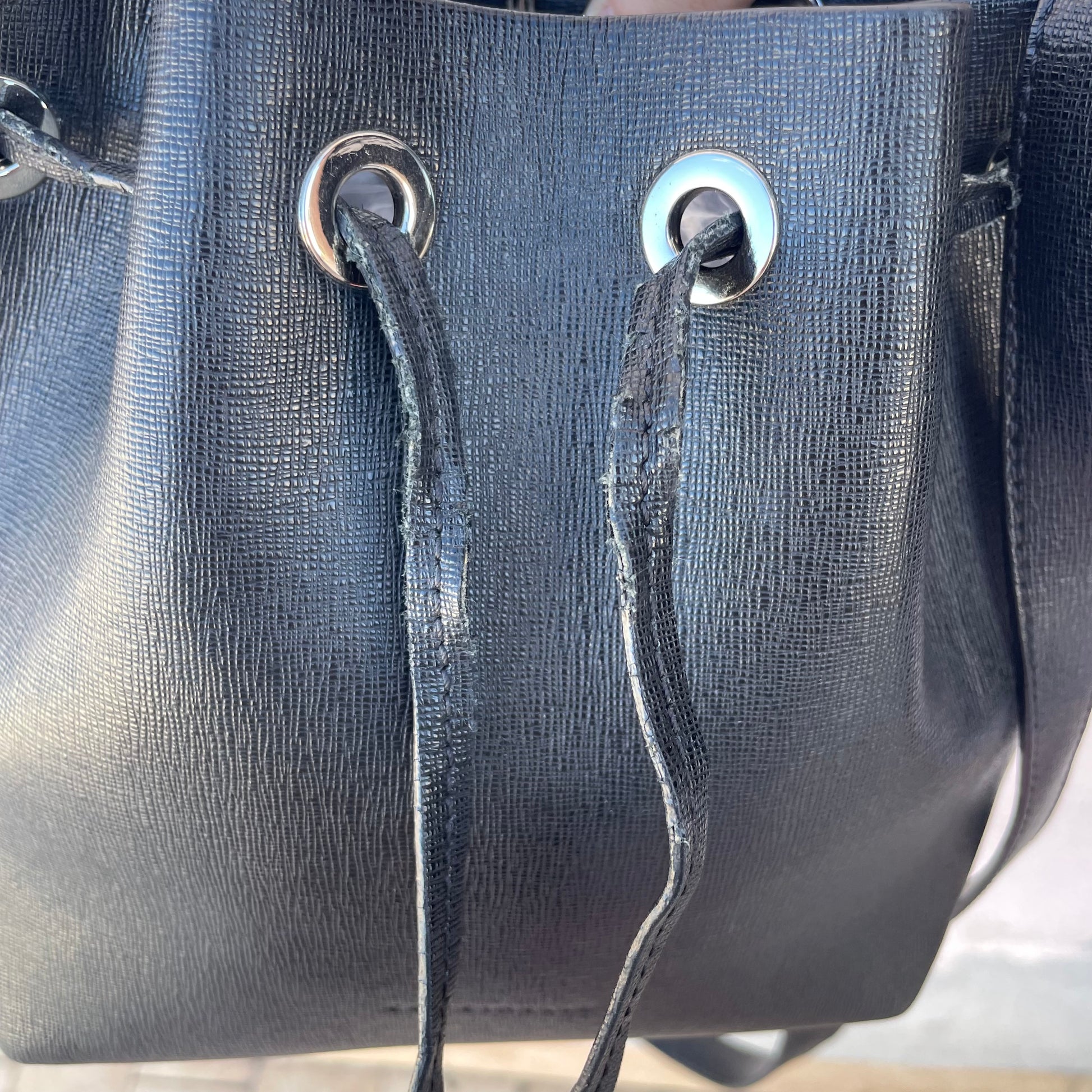 Praticamente nuova. Segnalo solo che il laccetto per chiuderla è leggermente rovinato (vedi foto). Articolo second hand, no vintage.