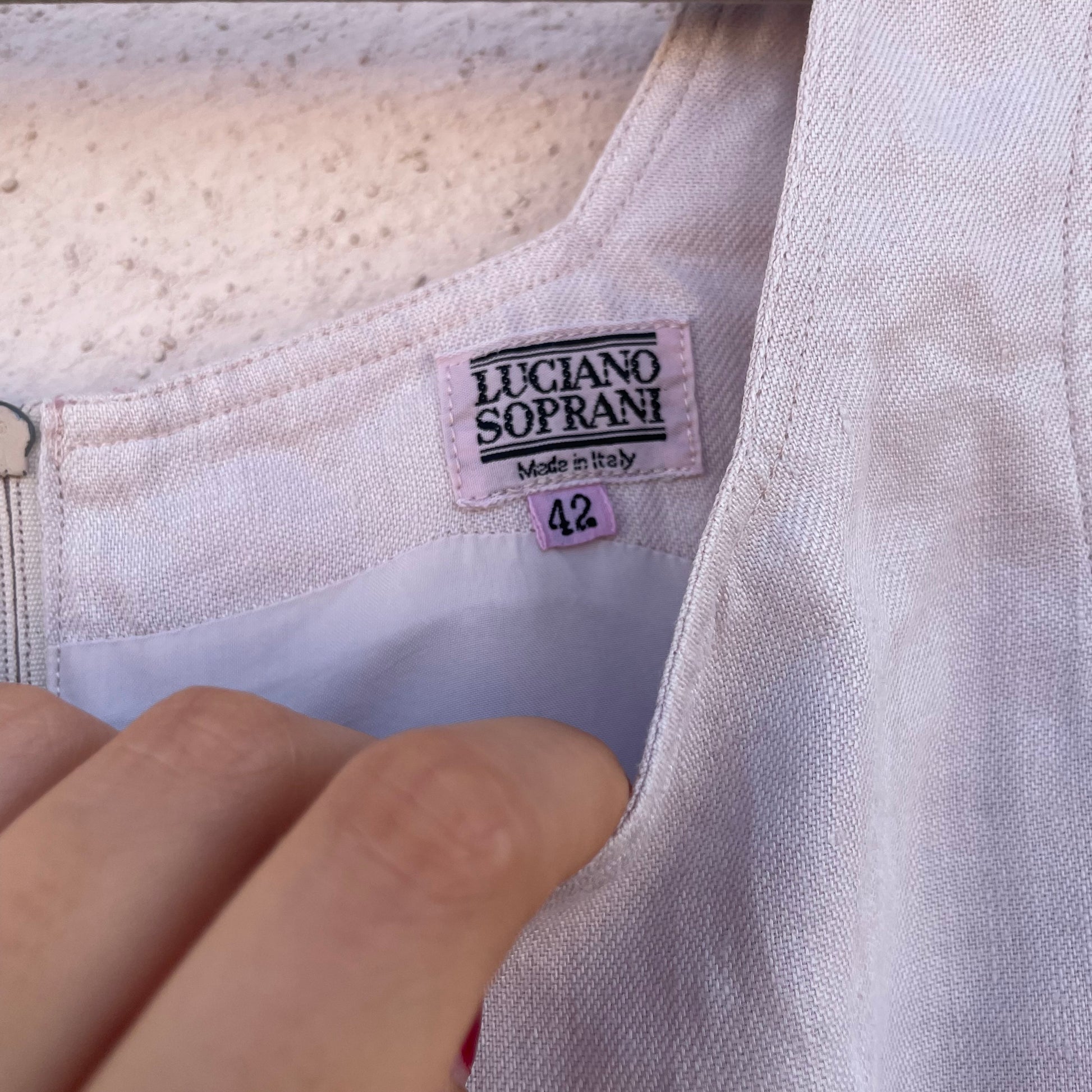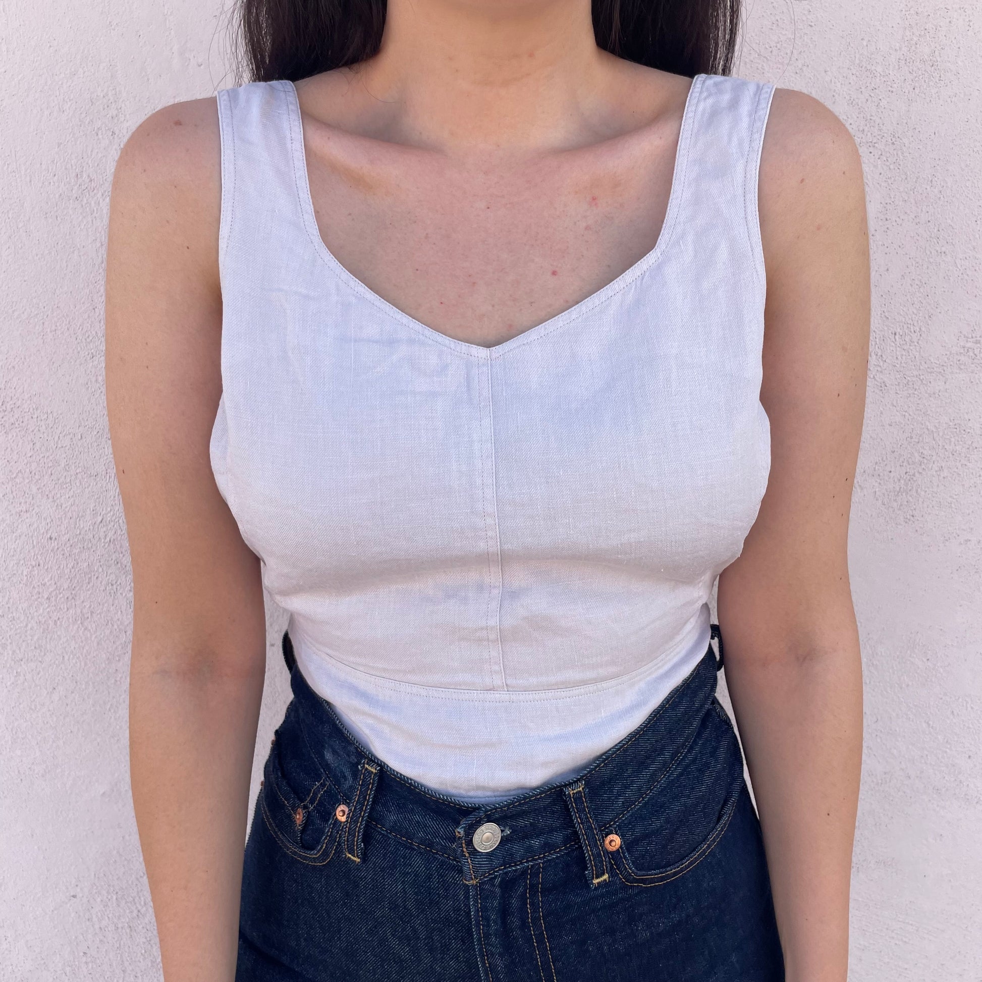 Top bustier lilla chiarissimo (quasi bianco) Luciano Soprani. 100% lino. Chiusura zip posteriore.
