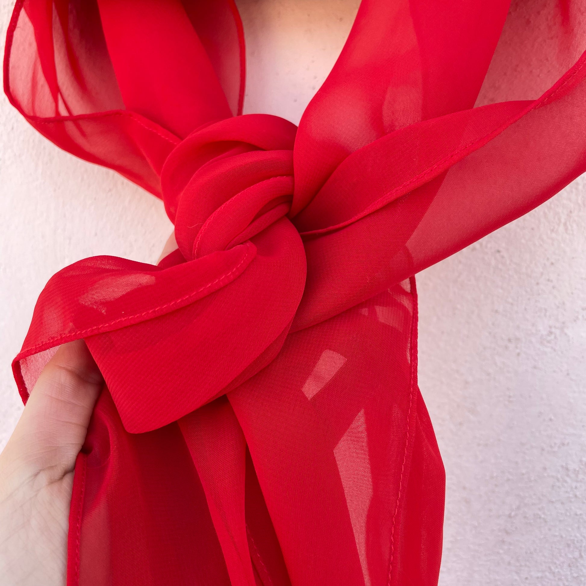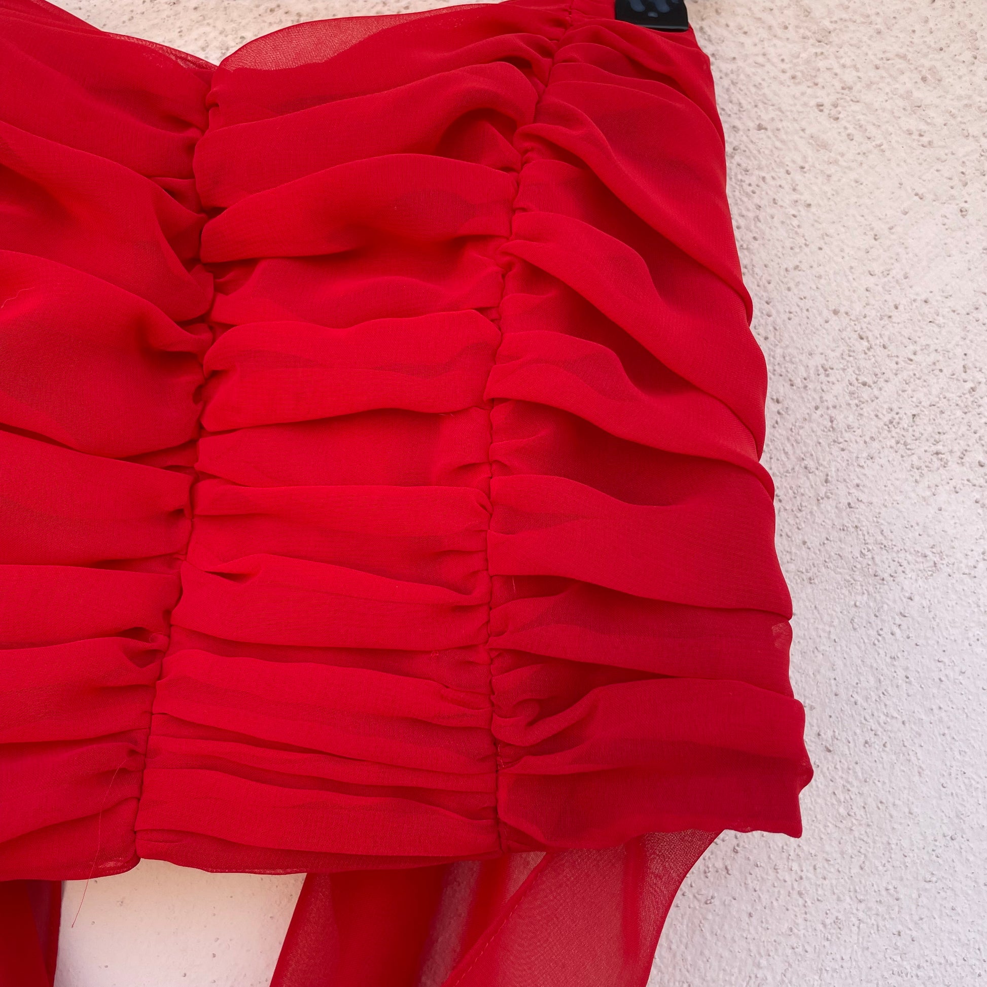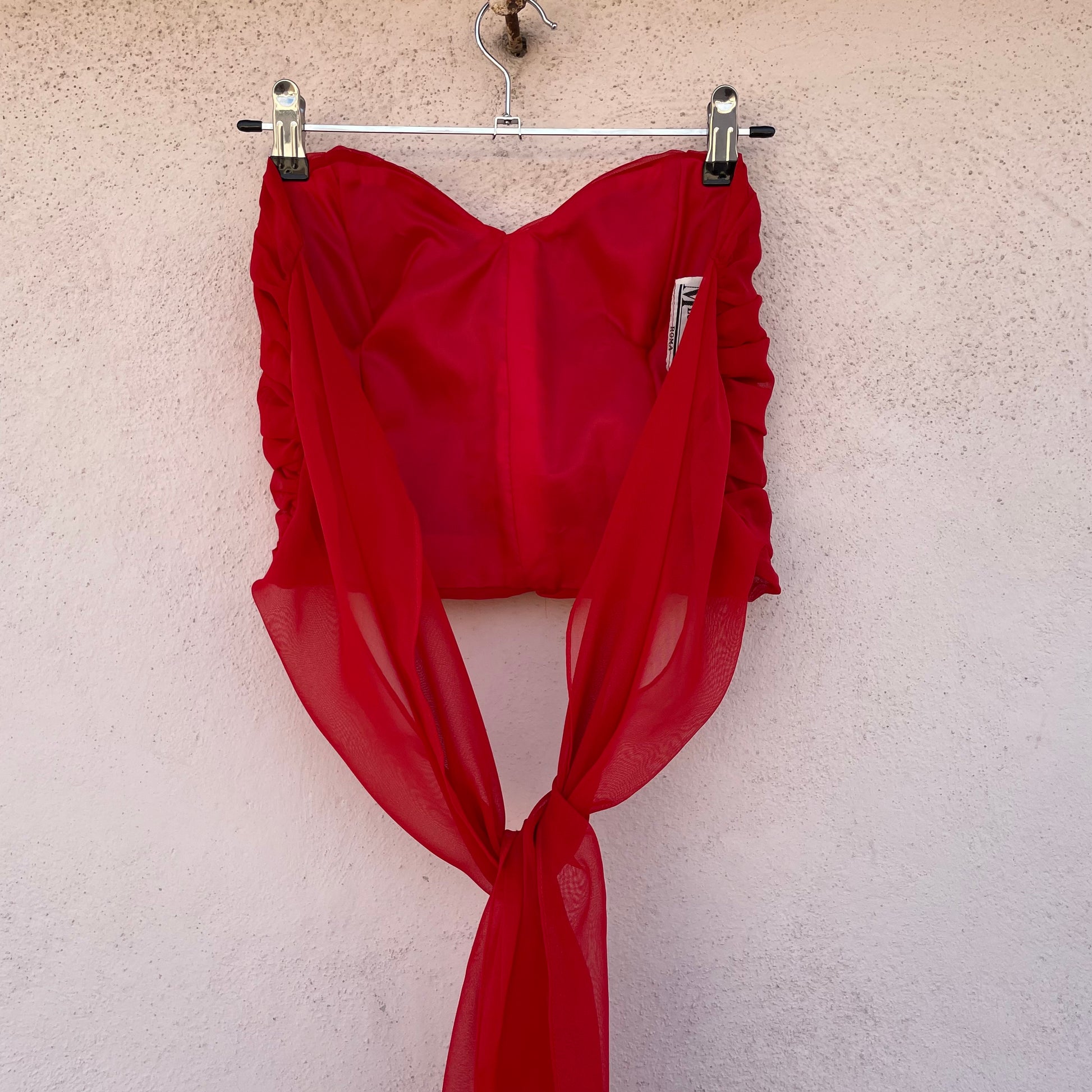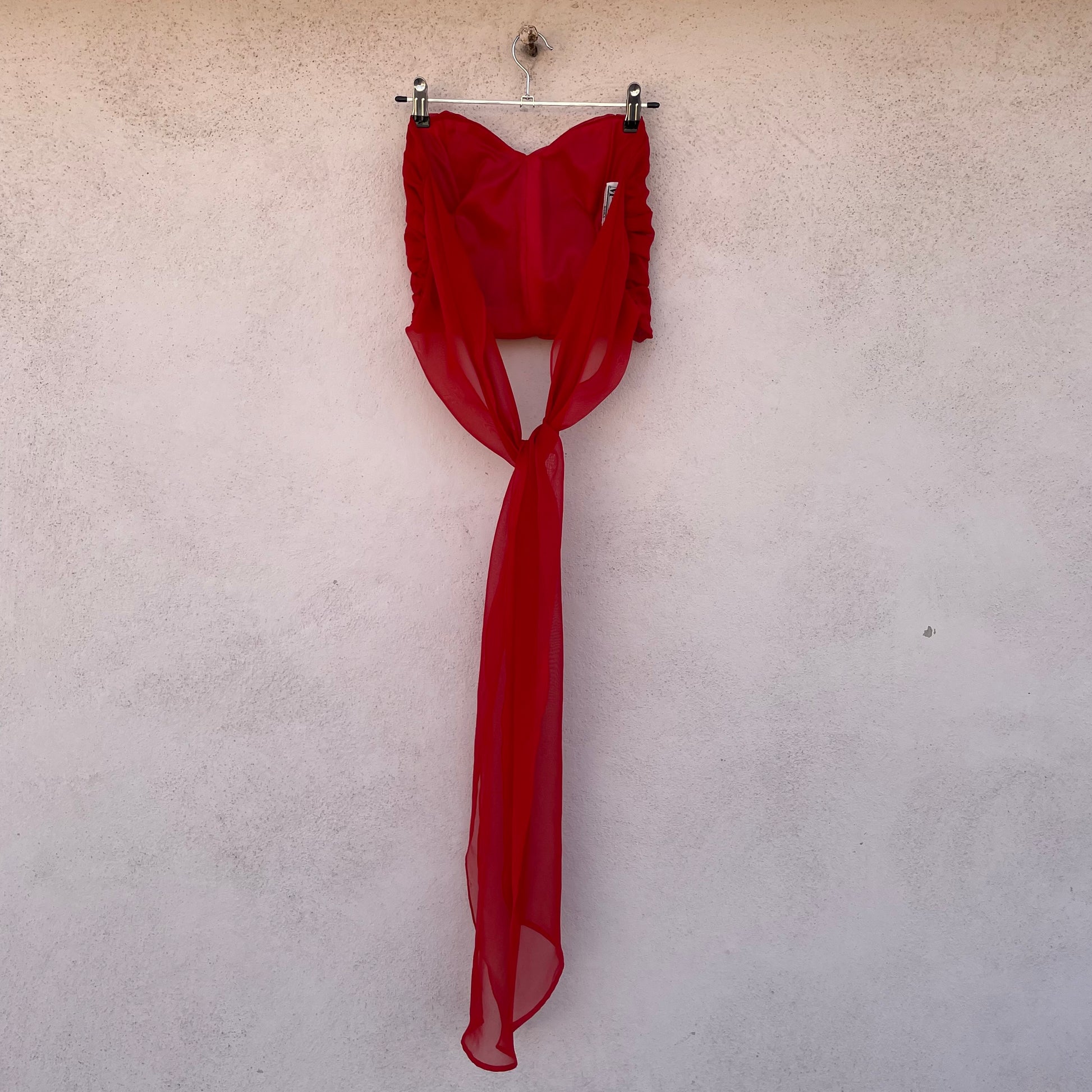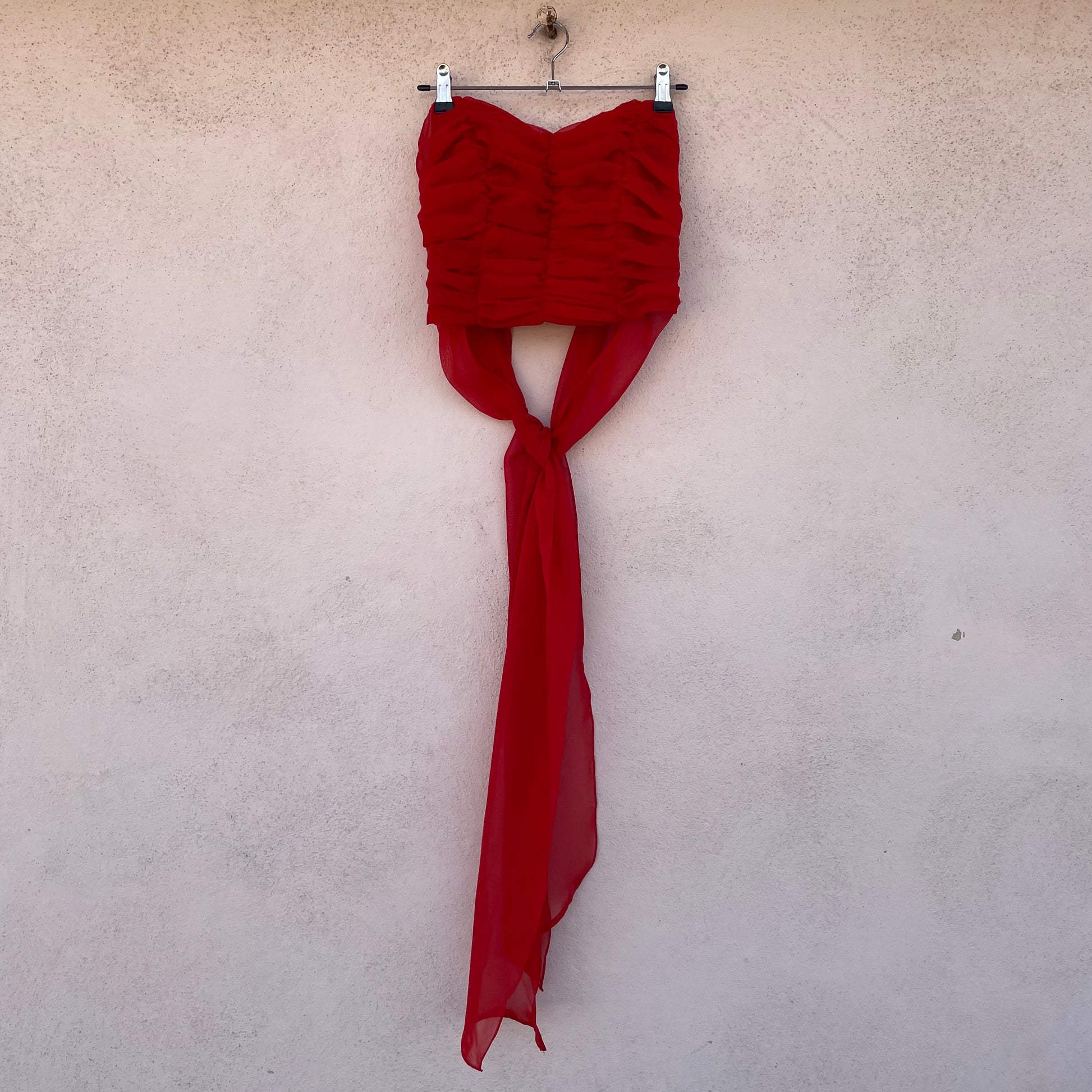 Top rosso in chiffon con nastro sul retro per allacciarlo.
