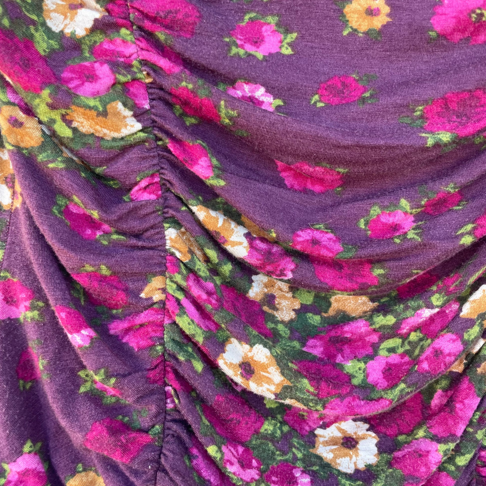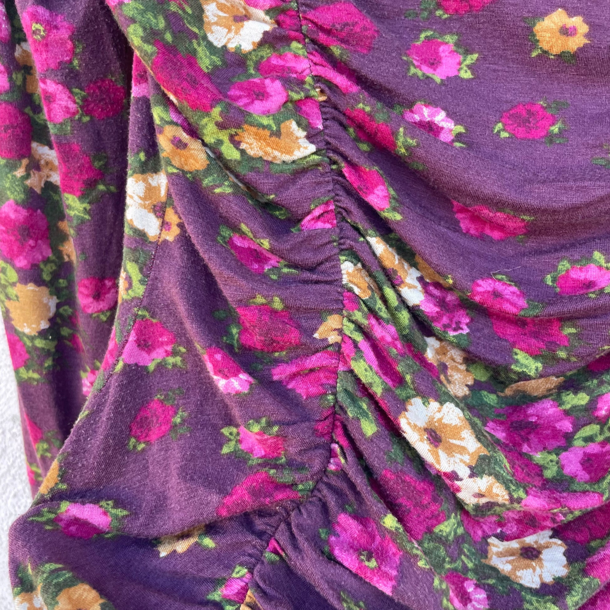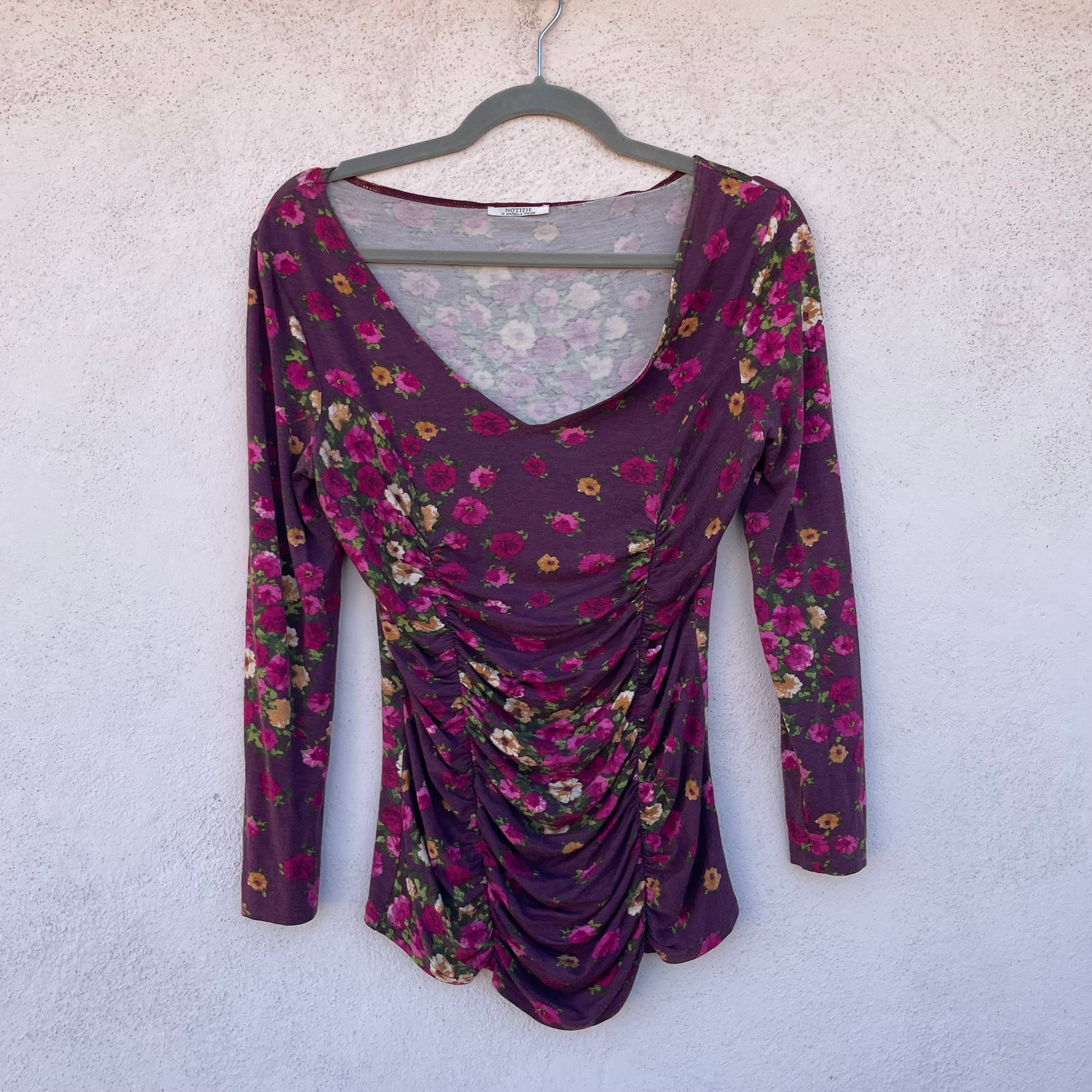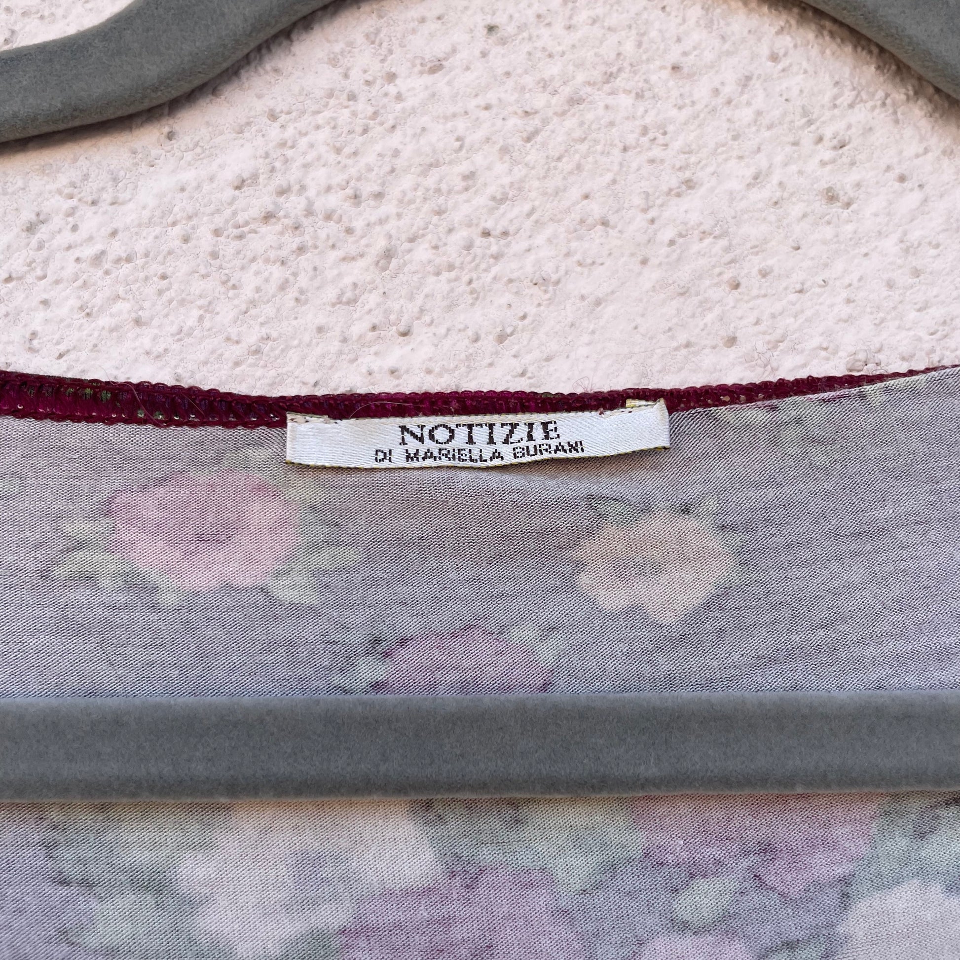 Top a maniche lunghe arricciato con stampa floreale Mariella Burani. 92% viscosa 8% elastan (molto morbido al tatto, sembra maglina di cotone).
